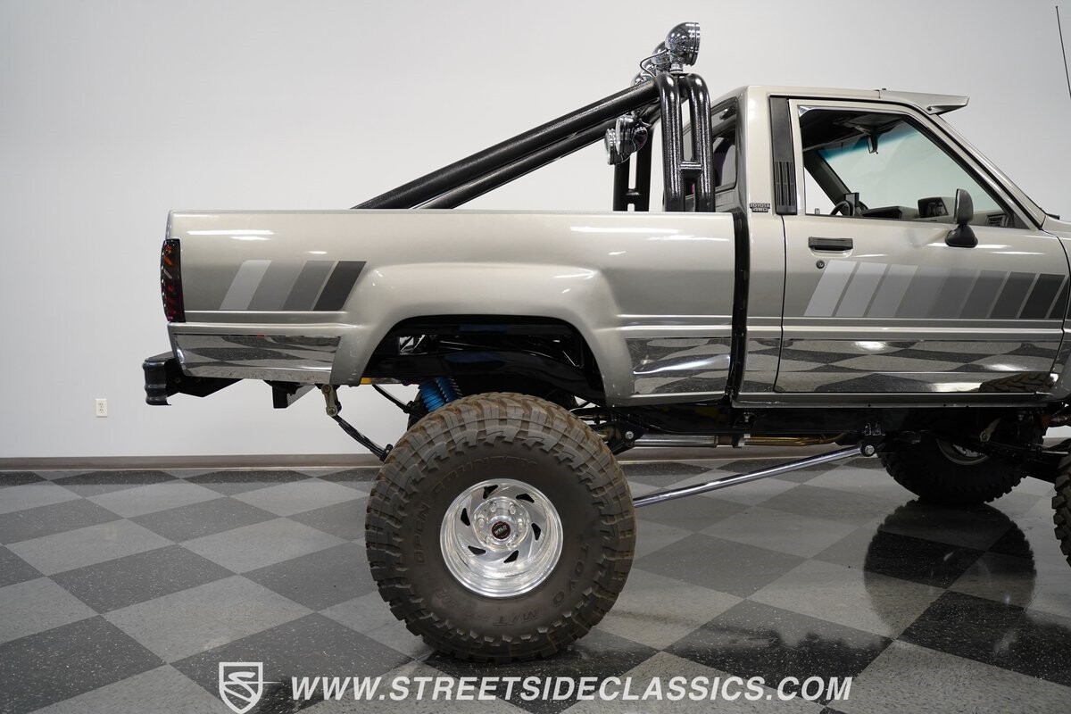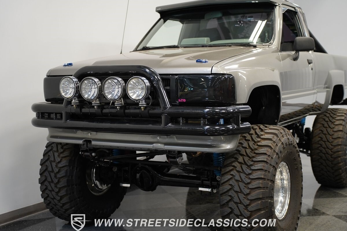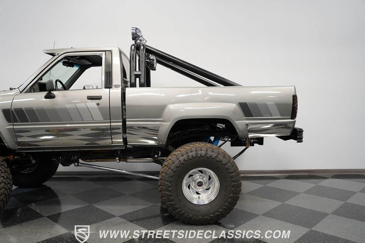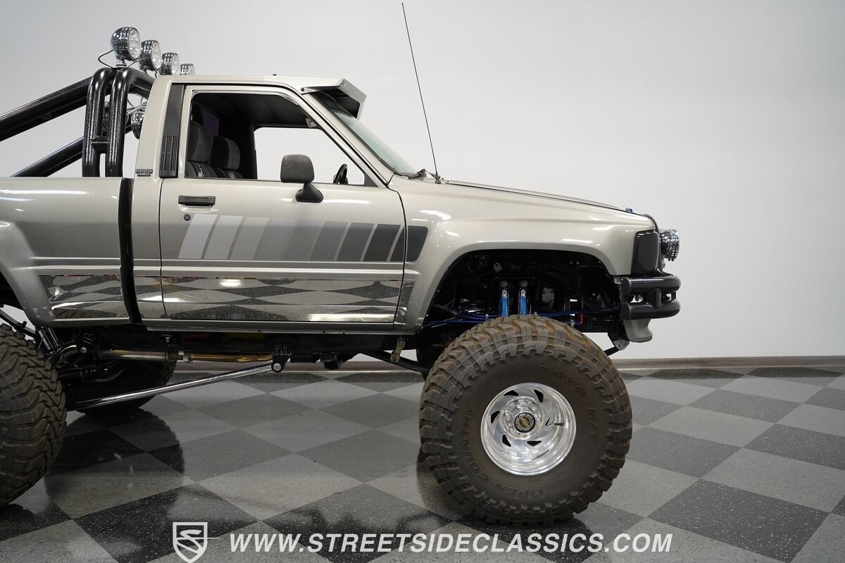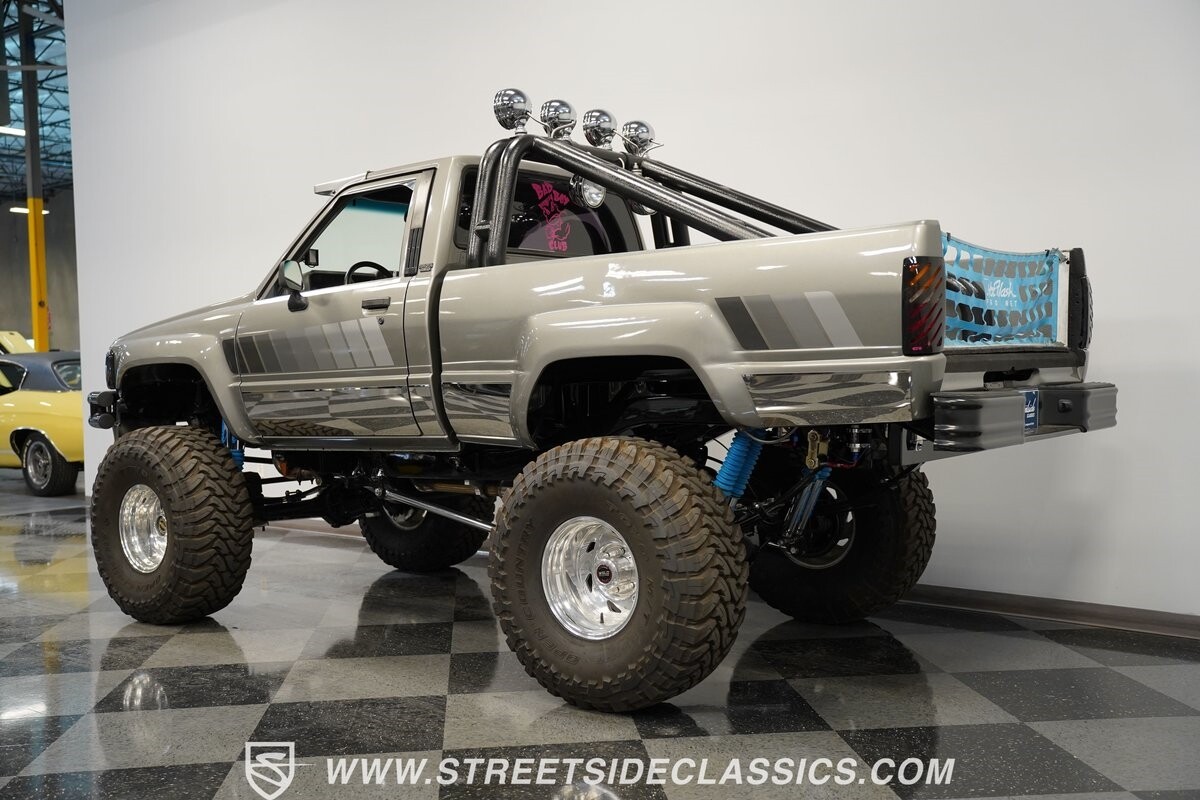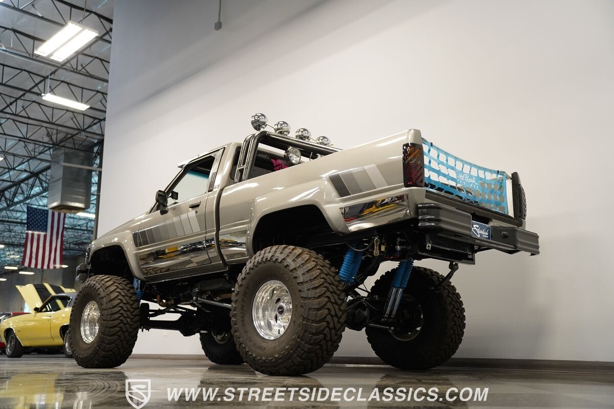There are some nicely customized Toyota trucks to be found, but nothing compares to this spectacular 1985 Toyota 4x4 Pickup Truck. This premium-quality build features a high-quality paint finish, upgraded front bumper with off-road lights, cab-mounted sun visor and blacked-out headlights and taillights. The full fiberglass bed is fully carpeted and has a rollbar with more off-road lights. Additionally, the bed is fitted with large hydraulic rams and a hydraulic compressor allowing it to tilt in different directions.