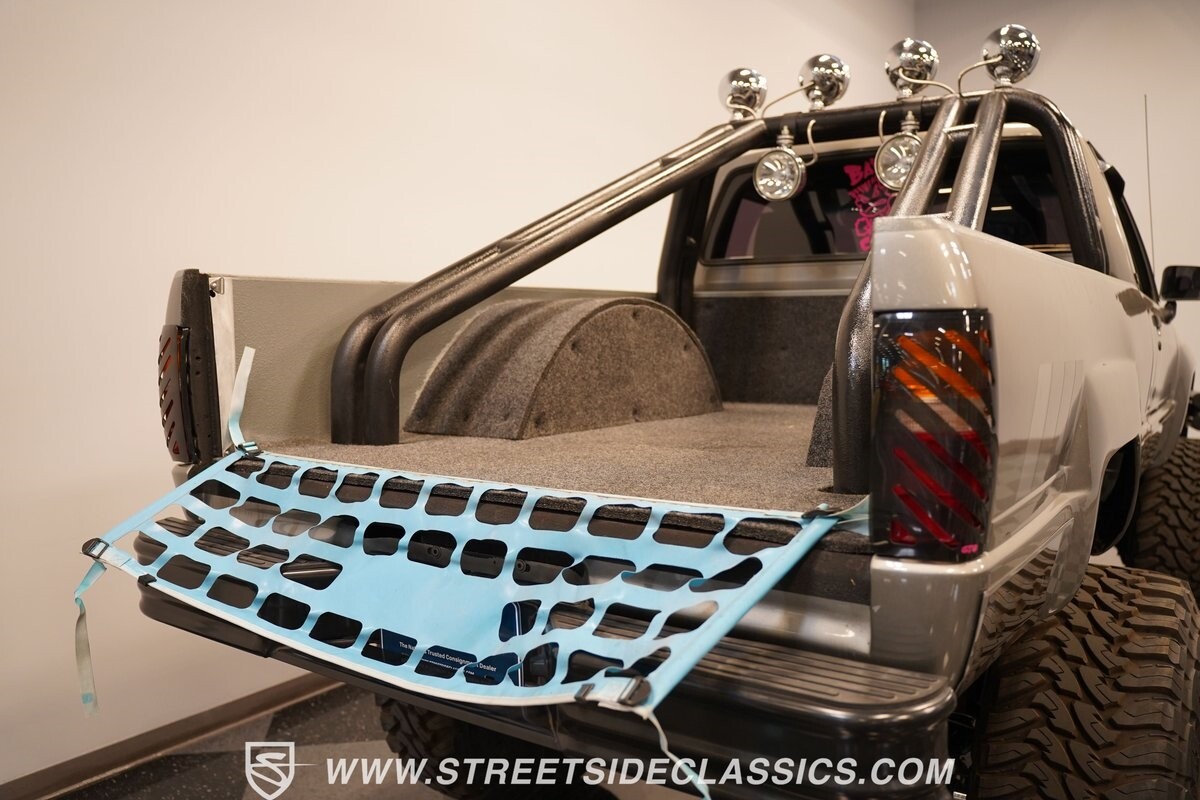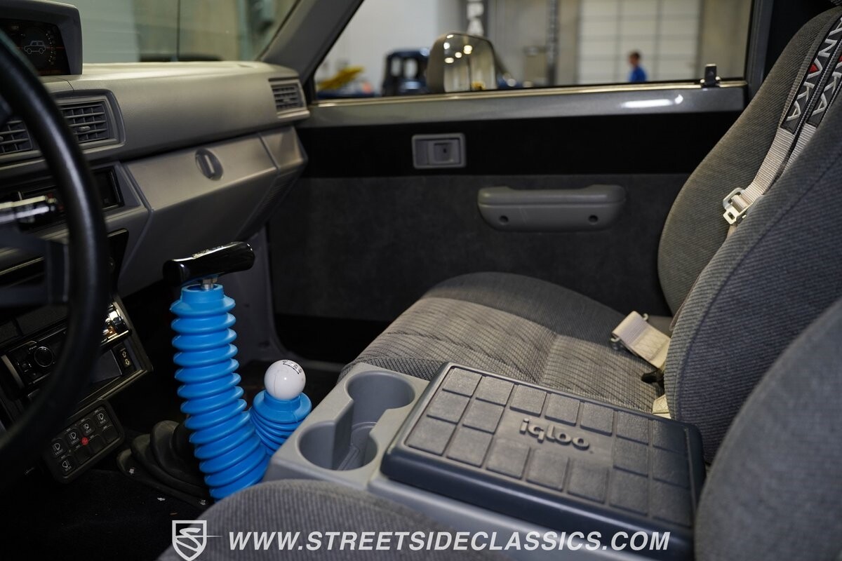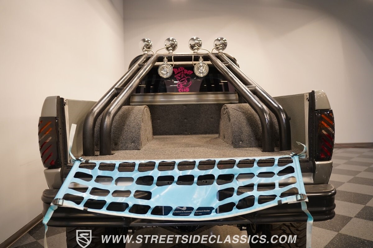The interior is tricked-out with comfortable cloth bucket seats equipped with Takata harnesses, custom door panels, a very rare igloo cooler center console, custom gauge cluster with Autometer instruments, dash mounted screen for the sniper fuel injection, Grant GT steering wheel, B&M shifter, Kenwood stereo and solid-state push button set up for all of the lights on the truck.