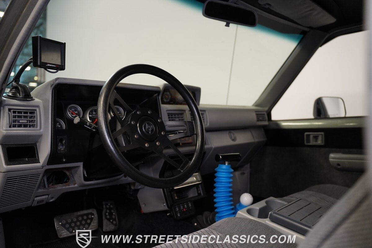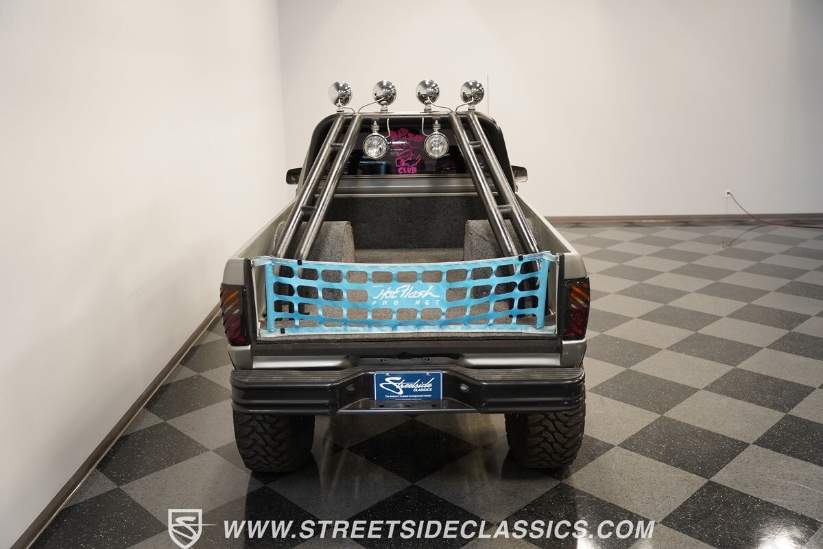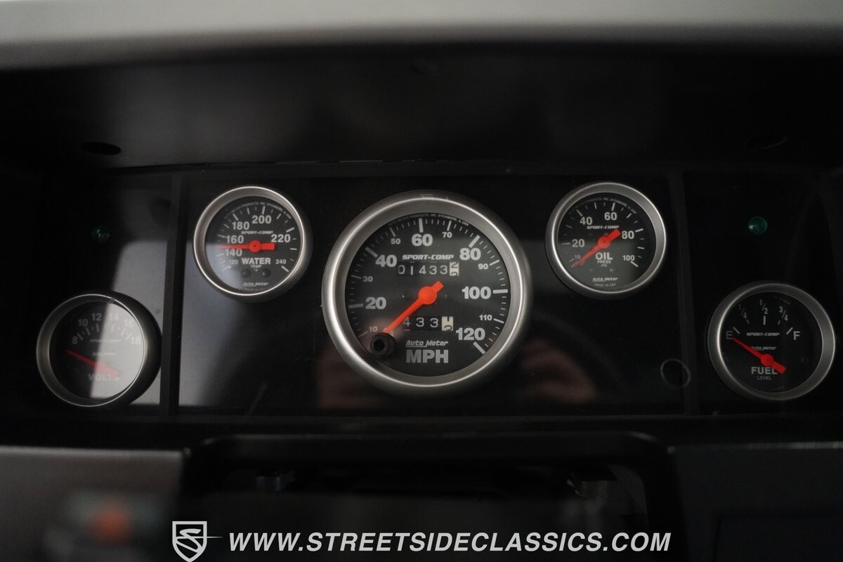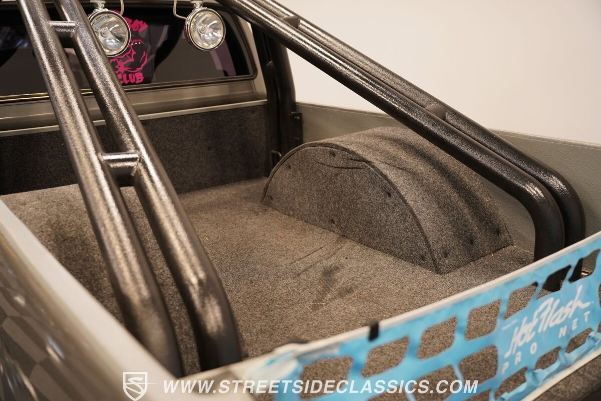 The interior is tricked-out with comfortable cloth bucket seats equipped with Takata harnesses, custom door panels, a very rare igloo cooler center console, custom gauge cluster with Autometer instruments, dash mounted screen for the sniper fuel injection, Grant GT steering wheel, B&M shifter, Kenwood stereo and solid-state push button set up for all of the lights on the truck.