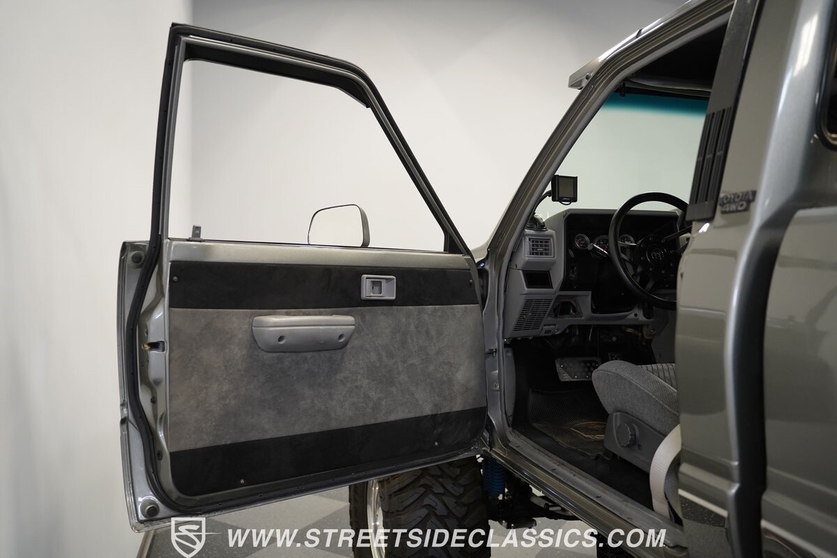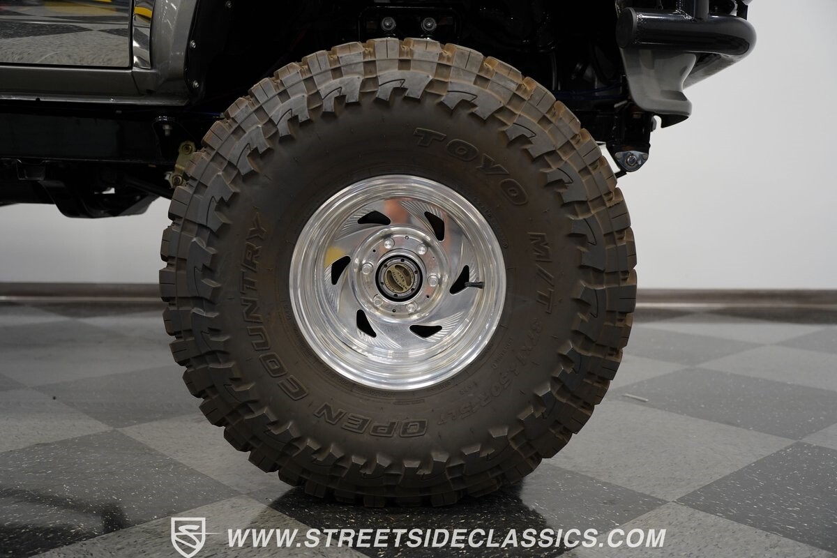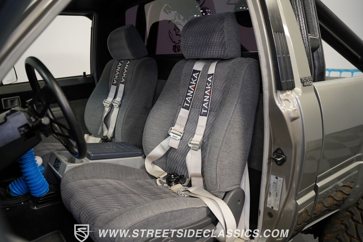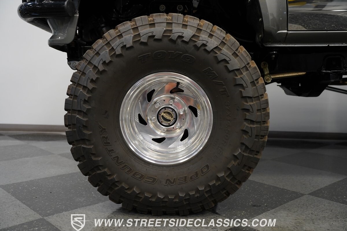 This Toyota sits high atop a suspension lift that features dual Rancho shocks on all four corners with aggressive leaf springs and trailing arm set up both front and rear. A set of 15-inch Weld Racing forged alloy wheels wrapped with huge 37-inch Toyo M/T Open Country tires complete the look.