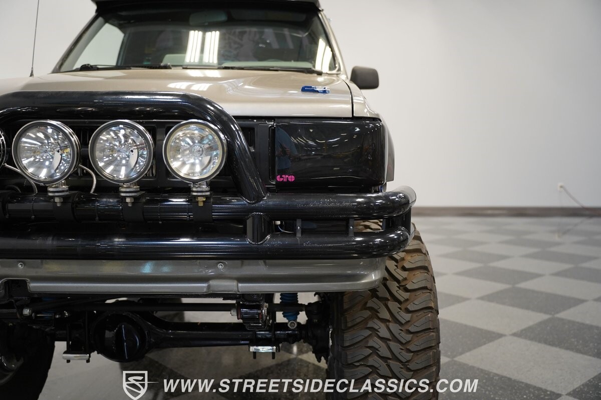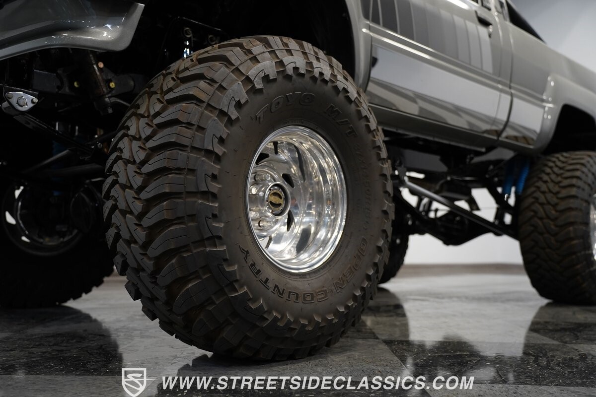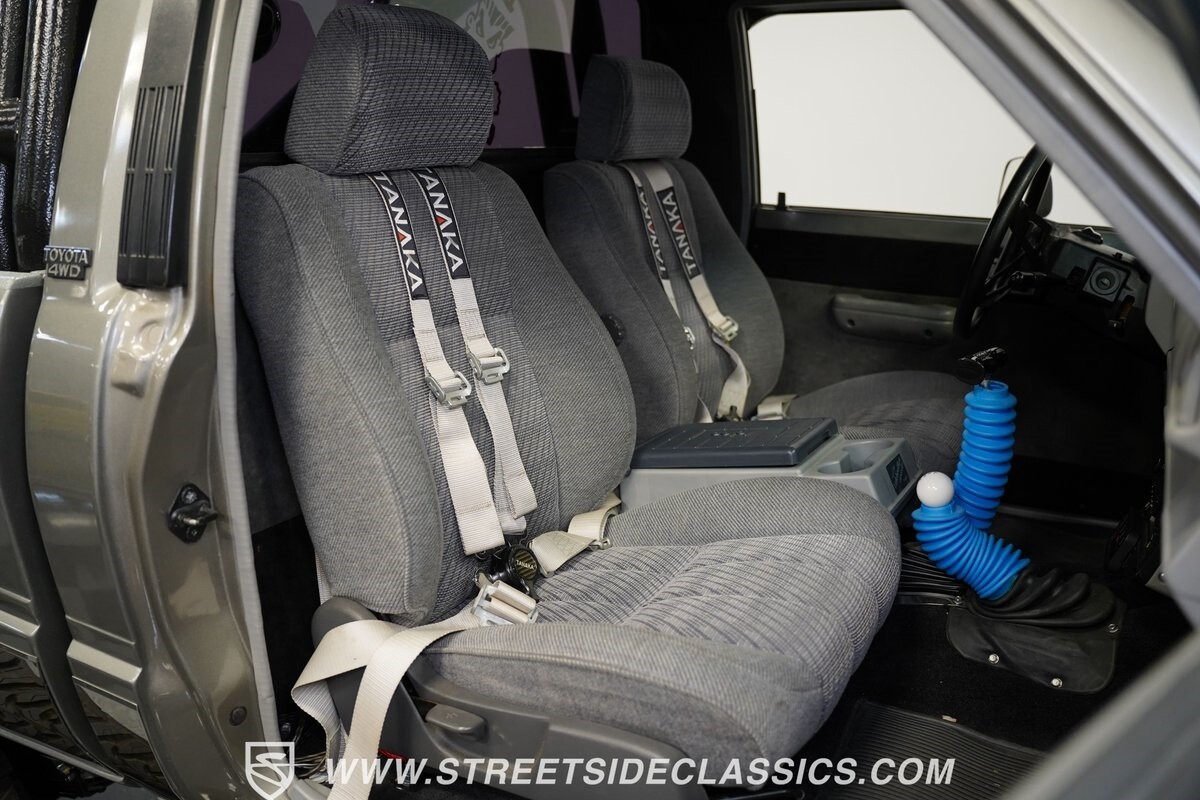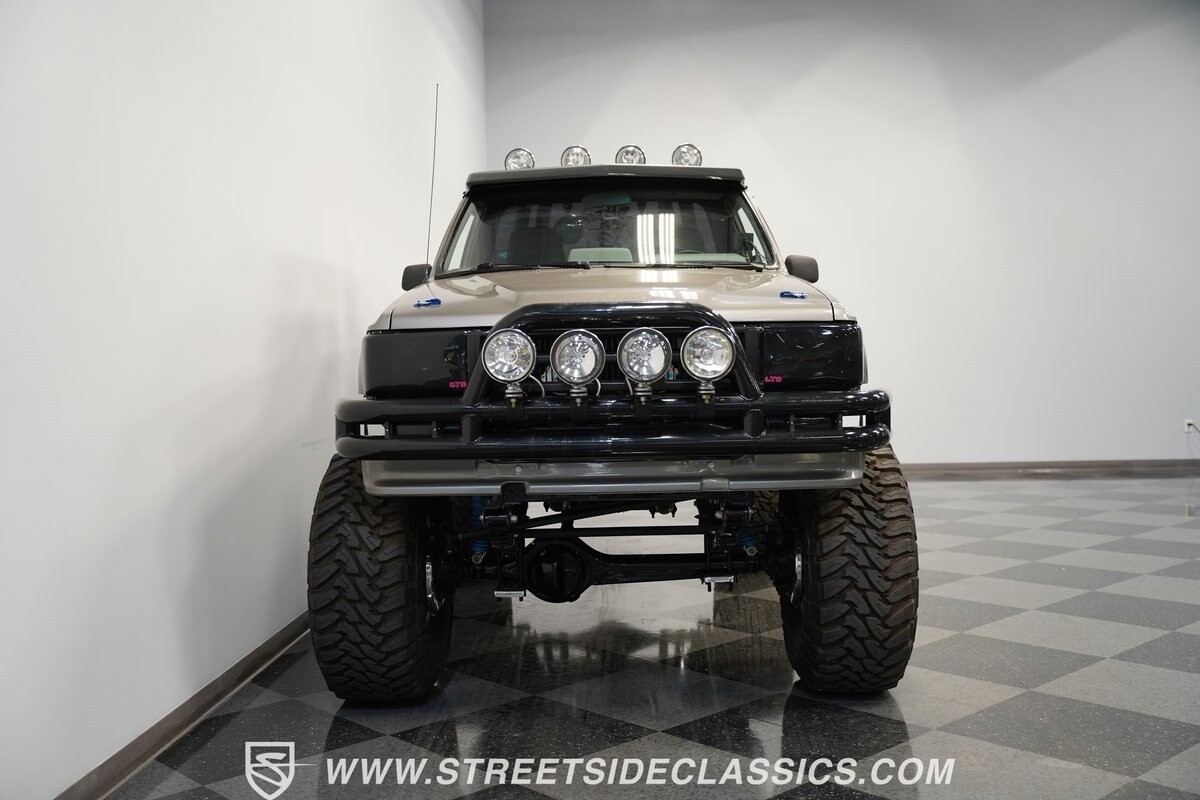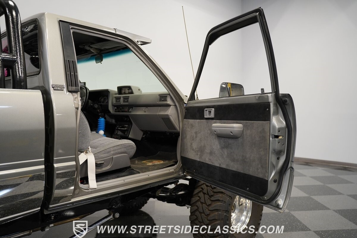 This Toyota sits high atop a suspension lift that features dual Rancho shocks on all four corners with aggressive leaf springs and trailing arm set up both front and rear. A set of 15-inch Weld Racing forged alloy wheels wrapped with huge 37-inch Toyo M/T Open Country tires complete the look.