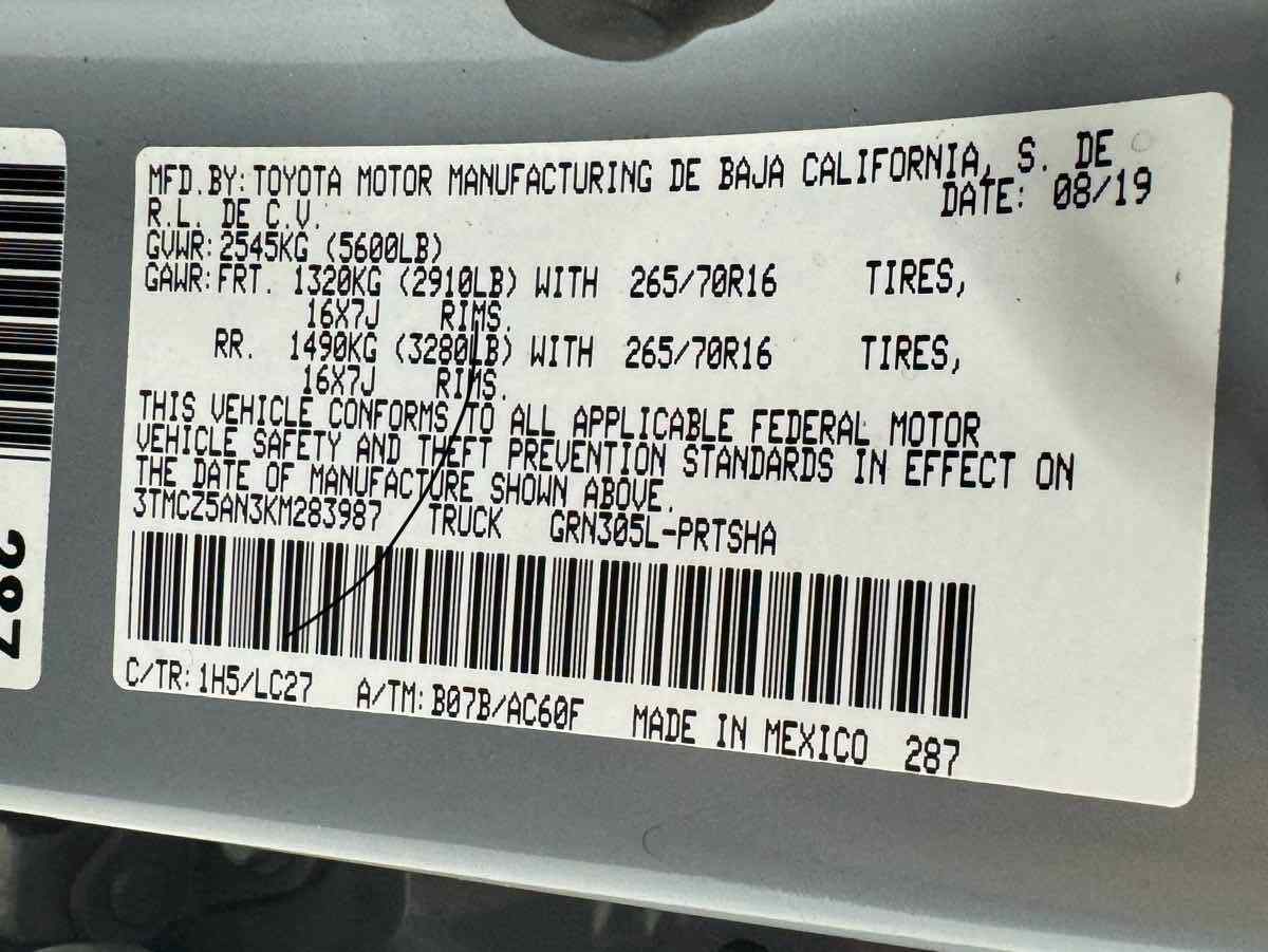 Drive our bold 2019 Toyota Tacoma TRD Off-Road Double Cab 4X4 in Cement and let your sense of adventure run free! Powered by a 3.5 Liter V6 providing 278hp matched to a 6 Speed Automatic transmission for robust performance. Also equipped with multi-terrain select - crawl control - and an electronically locking rear differential - our Four Wheel Drive Tacoma helps you tame the toughest conditions while still achieving nearly 22mpg on the highway. Conquer your day in our Tacoma that grabs attention with its muscular fenders - a distinctive grille - bedliner - a tonneau cover - LED light bars - roof rack - a sunroof - and alloy wheels. The TRD Off-Road cabin is built for action and helps you stay comfortable and relaxed with supportive fabric heated front seats - 10-way power for the driver - air conditioning - pushbutton start - a multi-information display - and easy connectivity with a 7-inch touchscreen - full-color navigation - Bluetooth - access to mobile apps - and even wireless charging. For a trail-friendly soundtrack - just turn on the six-speaker audio system with HD Radio and available satellite radio! Do it all with peace of mind thanks to a backup camera and Toyota Safety Sense technologies such as automatic braking - adaptive cruise control - and lane-departure warning. Our Tacoma TRD Off-Road is ready whenever and wherever you are! Save this Page and Call for Availability. We Know You Will Enjoy Your Test Drive Towards Ownership!