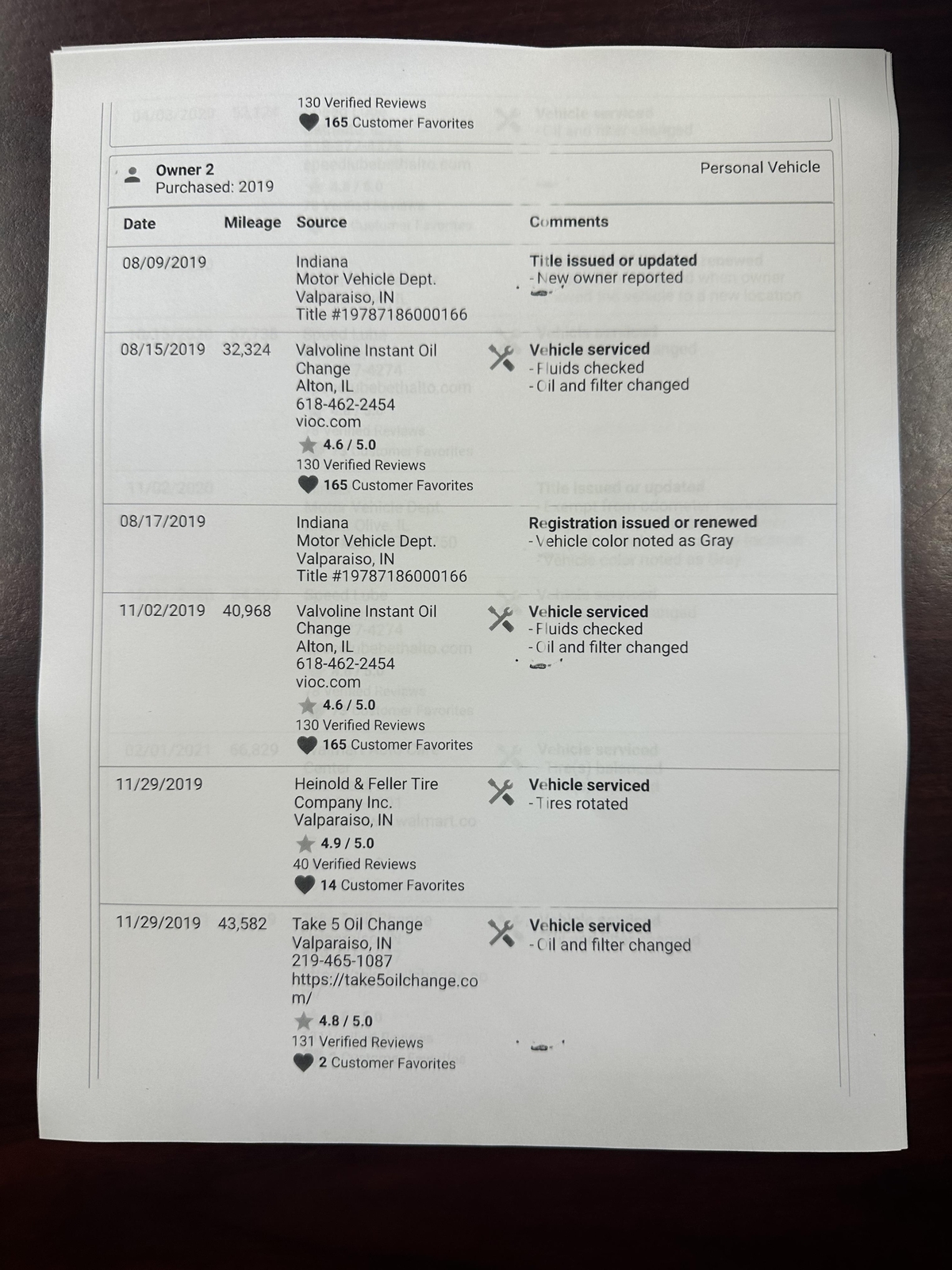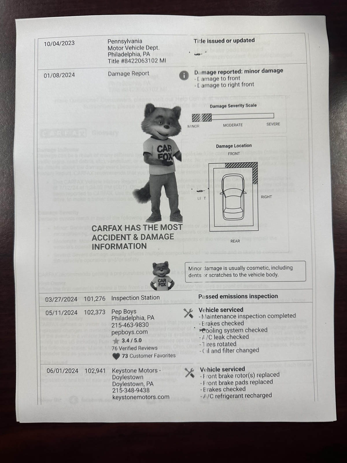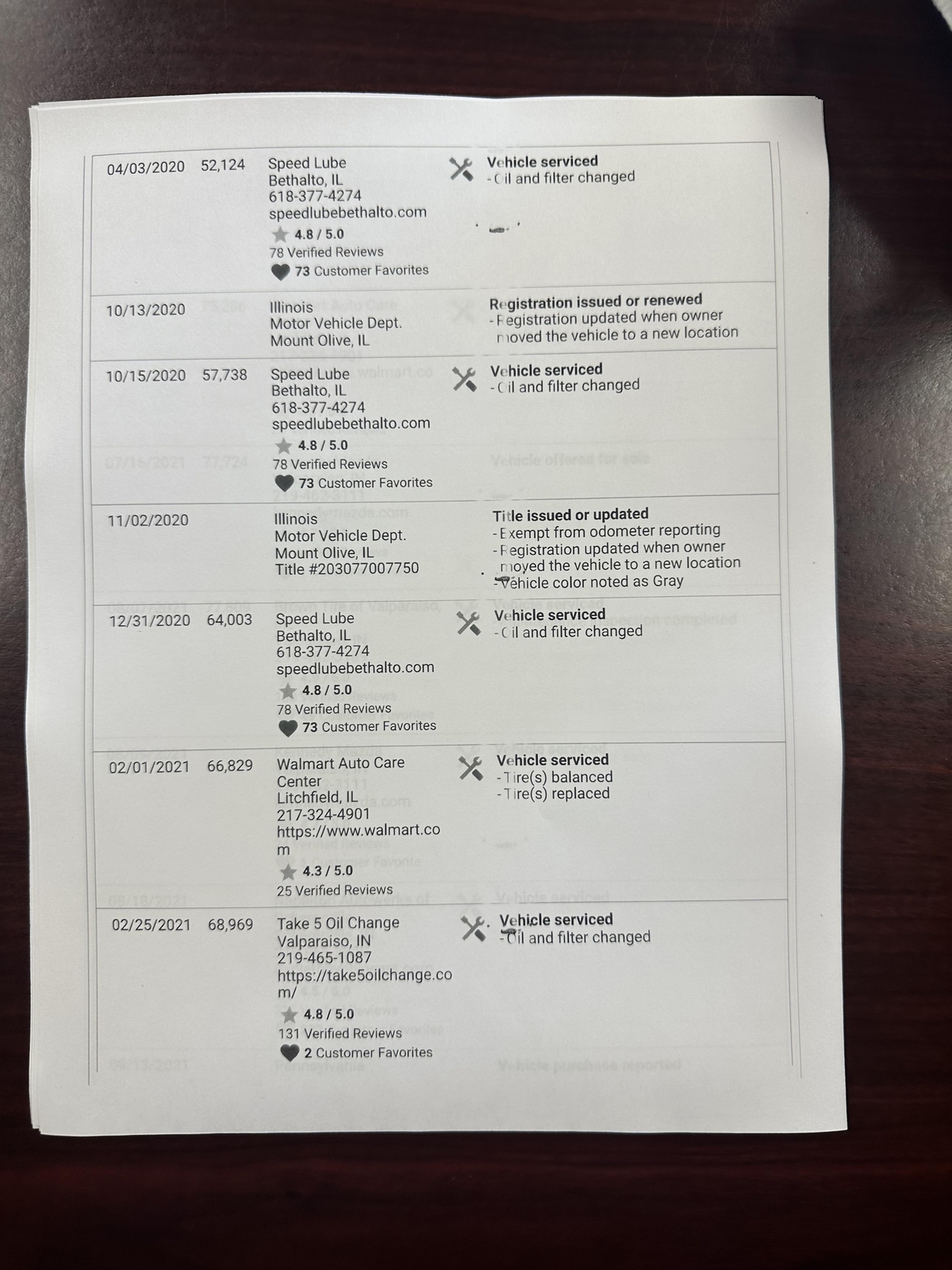 VEHICLE WITH HIGH MILES. WE RECOMMEND