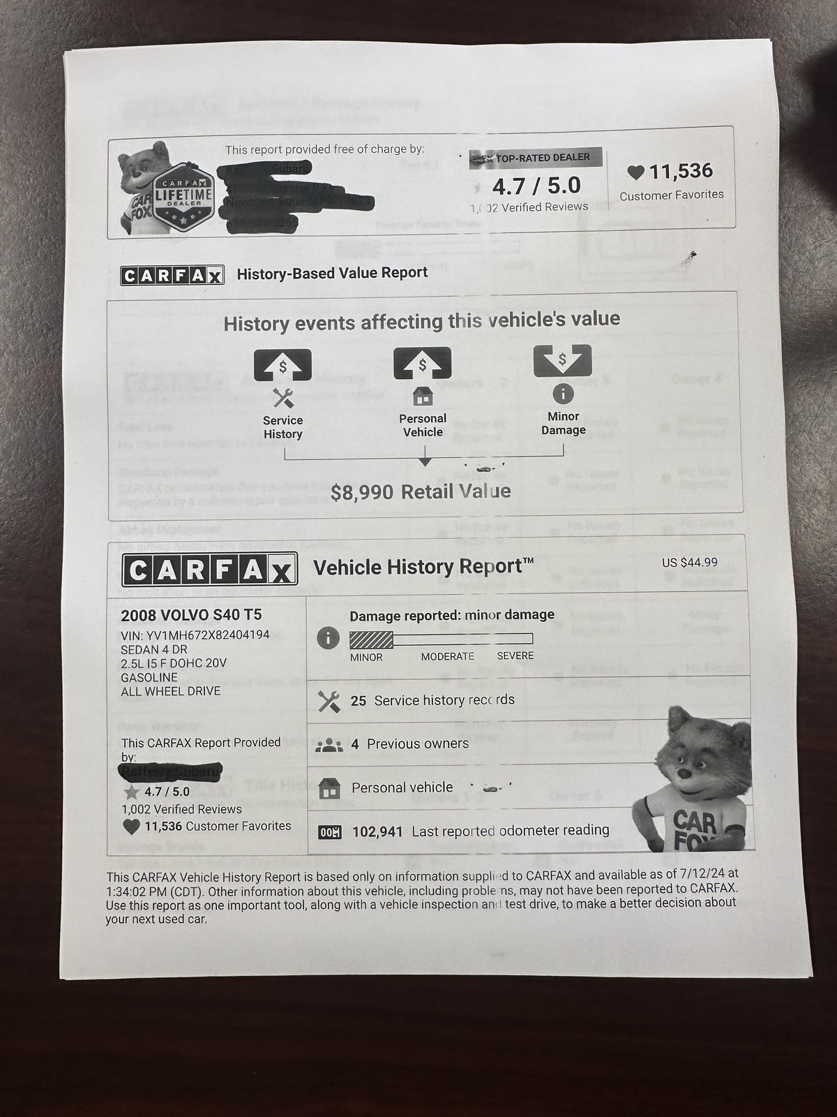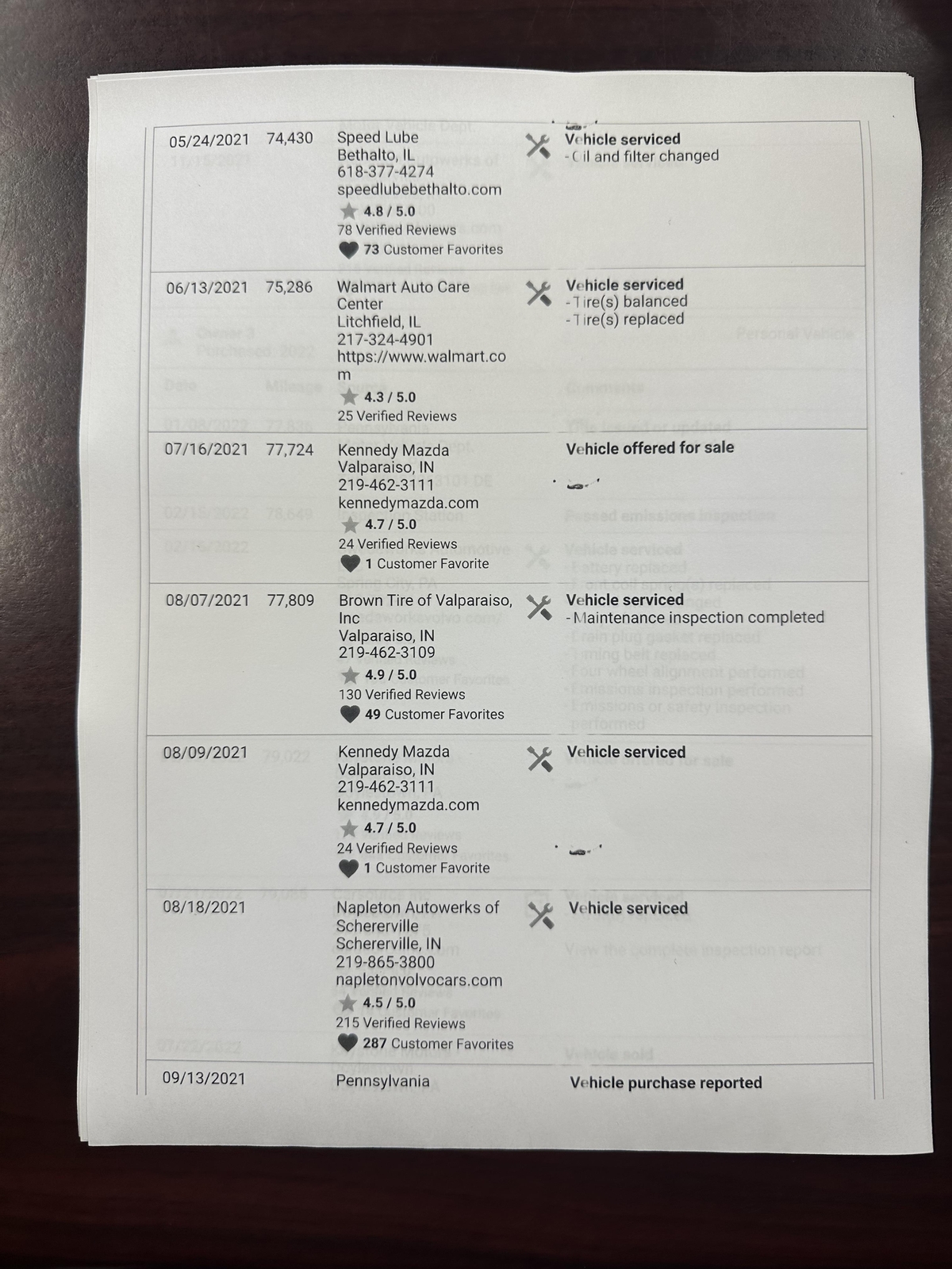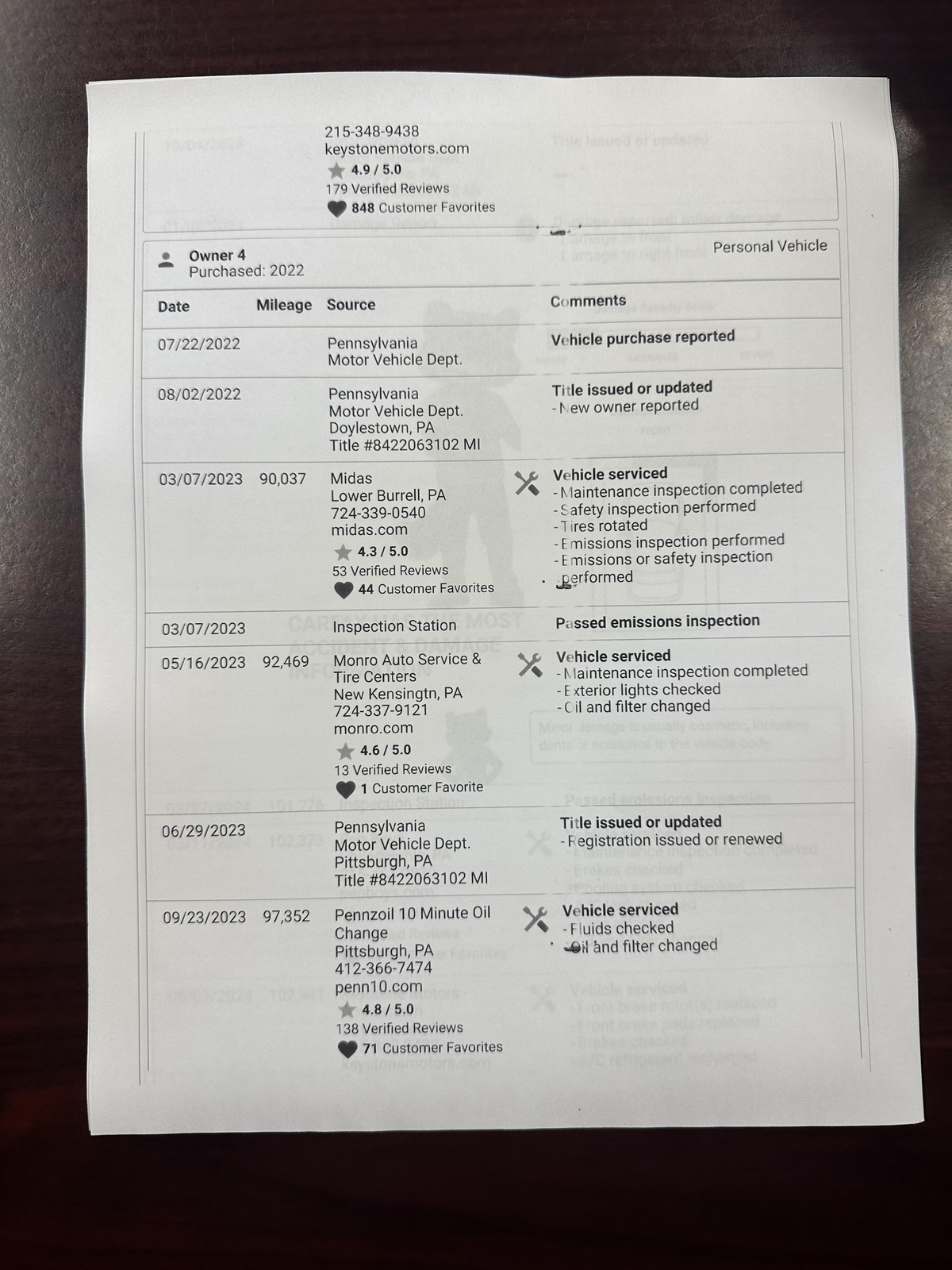 VEHICLE WITH HIGH MILES. WE RECOMMEND
