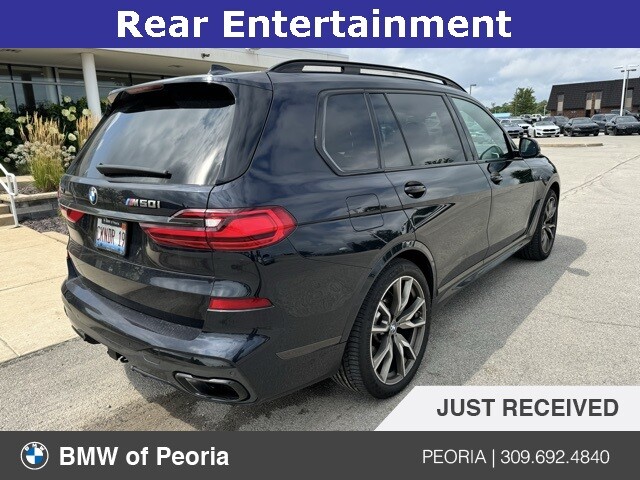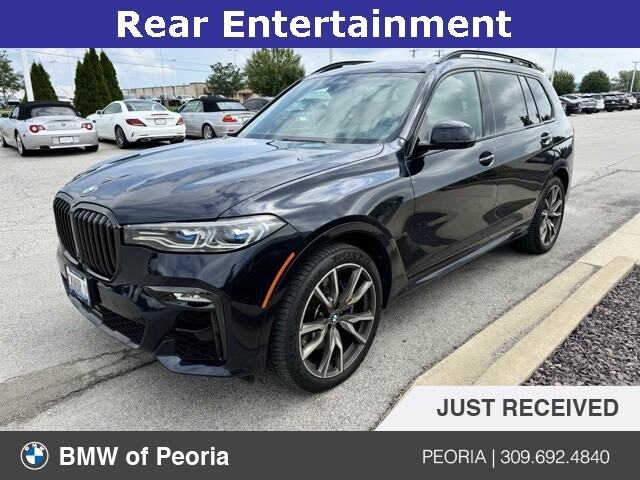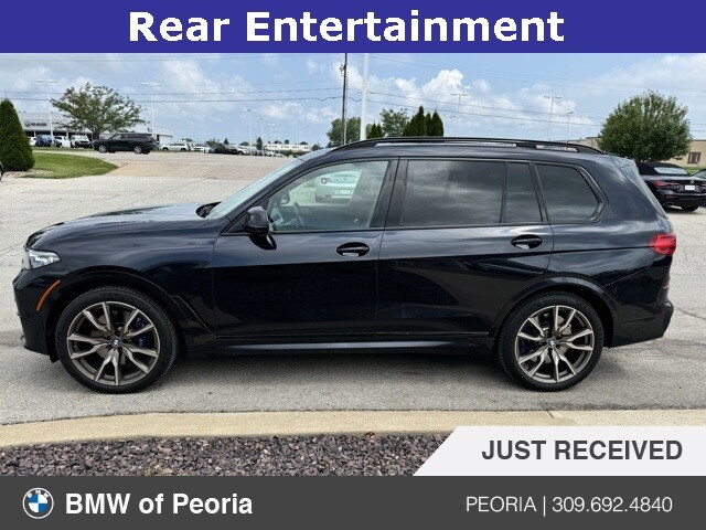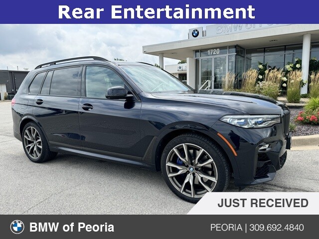 This Will Not be Available Long! With REAR SEAT ENTERTAINMENT This Recent Arrival! Drenched in Carbon Black Metallic 2020 BMW X7 M50i is a 1-Owner, Local Trade-In, Accident-Free CARFAX, Non-Smoker, All-Wheel Drive / AWD, Executive Package, Cold Weather Package, Driver Assistance Package, Luxury Seating Package, Shadowline Package, Bowers Wilkins sound system, Panoramic Sky Lounge LED Roof, Heated Front / Rear Seats, Cooled / Ventilated Seats, 22 Rims, Apple CarPlay Compatibility, Front Massaging Seats, Heads-Up Display, Heated Front Seats Armrests & Steering Wheel. and much more!!