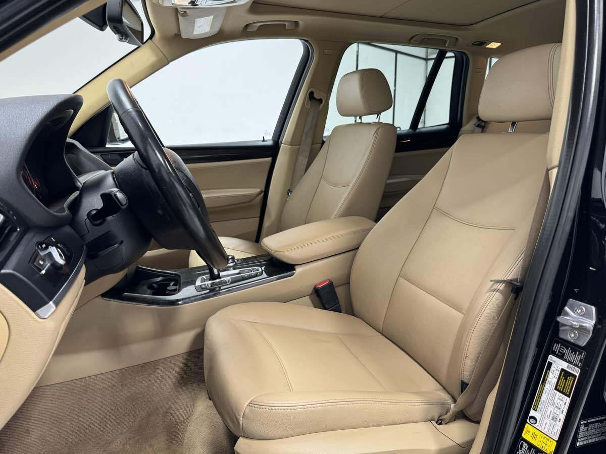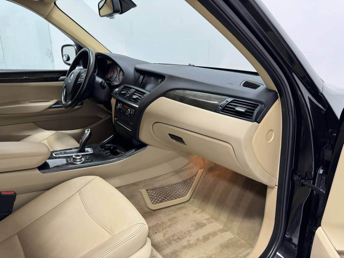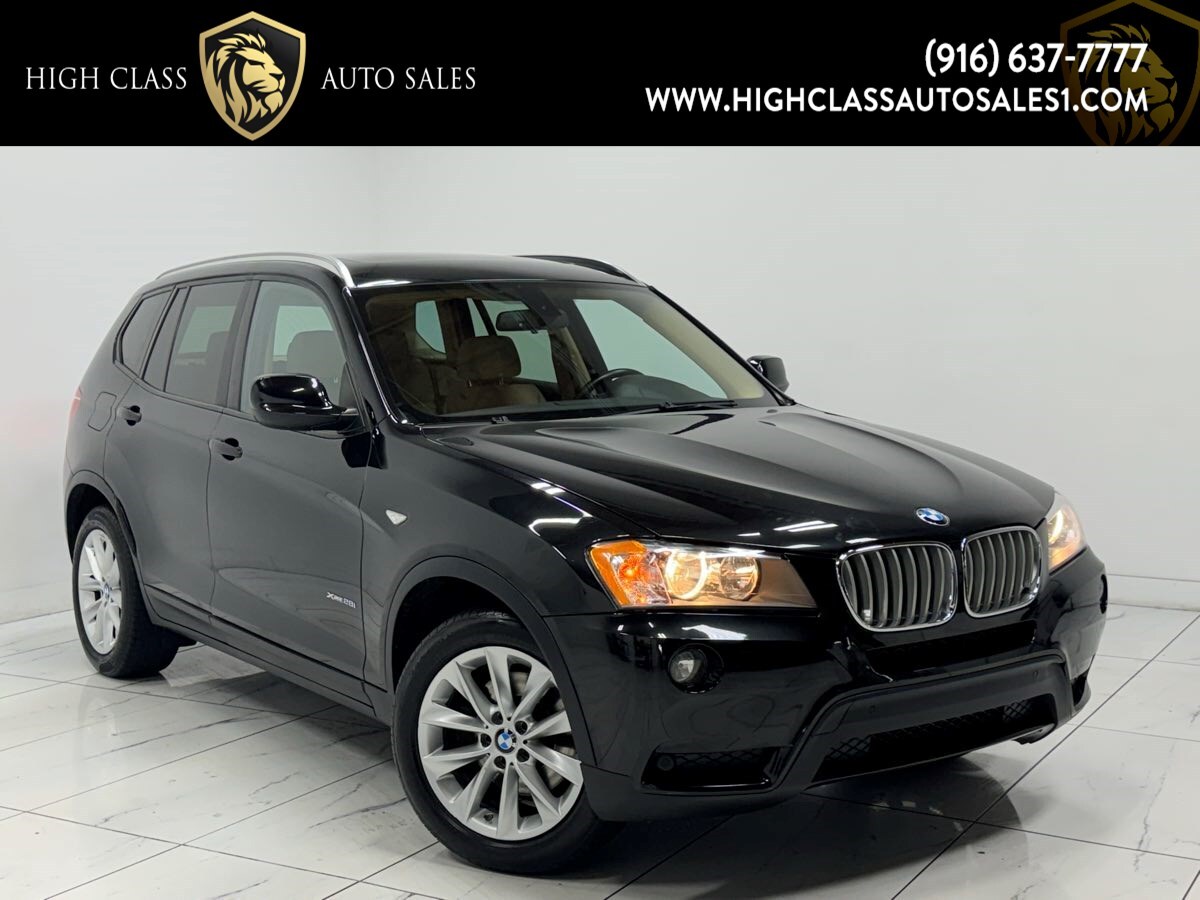 Our 2013 BMW X3 xDrive28i SUV pictured in Black Sapphire Metallic injects more fun into every day. Powered by an efficient TurboCharged 2.0 Liter 4 Cylinder that generates 240hp on demand while connected to a responsive 8 Speed Automatic transmission with sport and Manual modes for instant acceleration as well as a smooth ride with exceptional handling. This All Wheel Drive combination offers nearly 28mpg on the highway plus offers the power to tow 3 -500 pounds with this sure-footed stance of X3. The athletic stance and unmistakable profile of our xDrive28i is enhanced by 18-inch alloy wheels and a panoramic sunroof. There's ample room in the X3's intuitively-designed interior that surrounds you with upscale materials and cutting-edge technology. Imagine yourself sliding into the heated 8-way power front seats with premium seating. You'll be pampered by automatic climate control - automatic wipers - full-color navigation - and other amenities as you stay connected via the iDrive electronics interface - Bluetooth - or a 12 speaker sound system you've got to hear to believe! With BMW - you will be safe and secure with ABS - automatic brake drying - stability control - and hill descent control. This X3 is another perfect formula from BMW. Save this Page and Call for Availability. We Know You Will Enjoy Your Test Drive Towards Ownership!