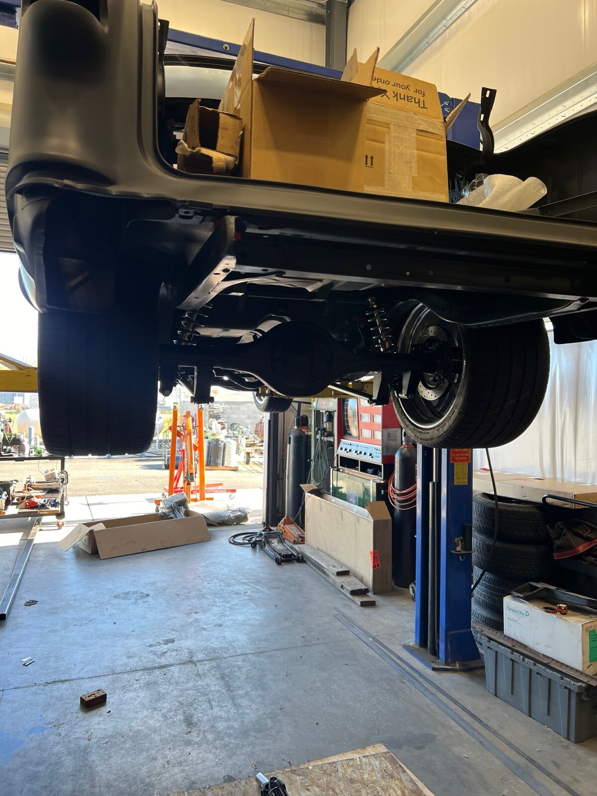 Narrowed Ford 9” w/ nodular iron pumpkin with posi trac 31 spline custom axles, 3:73 gears, 1350 yoke