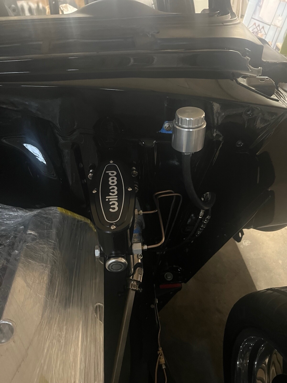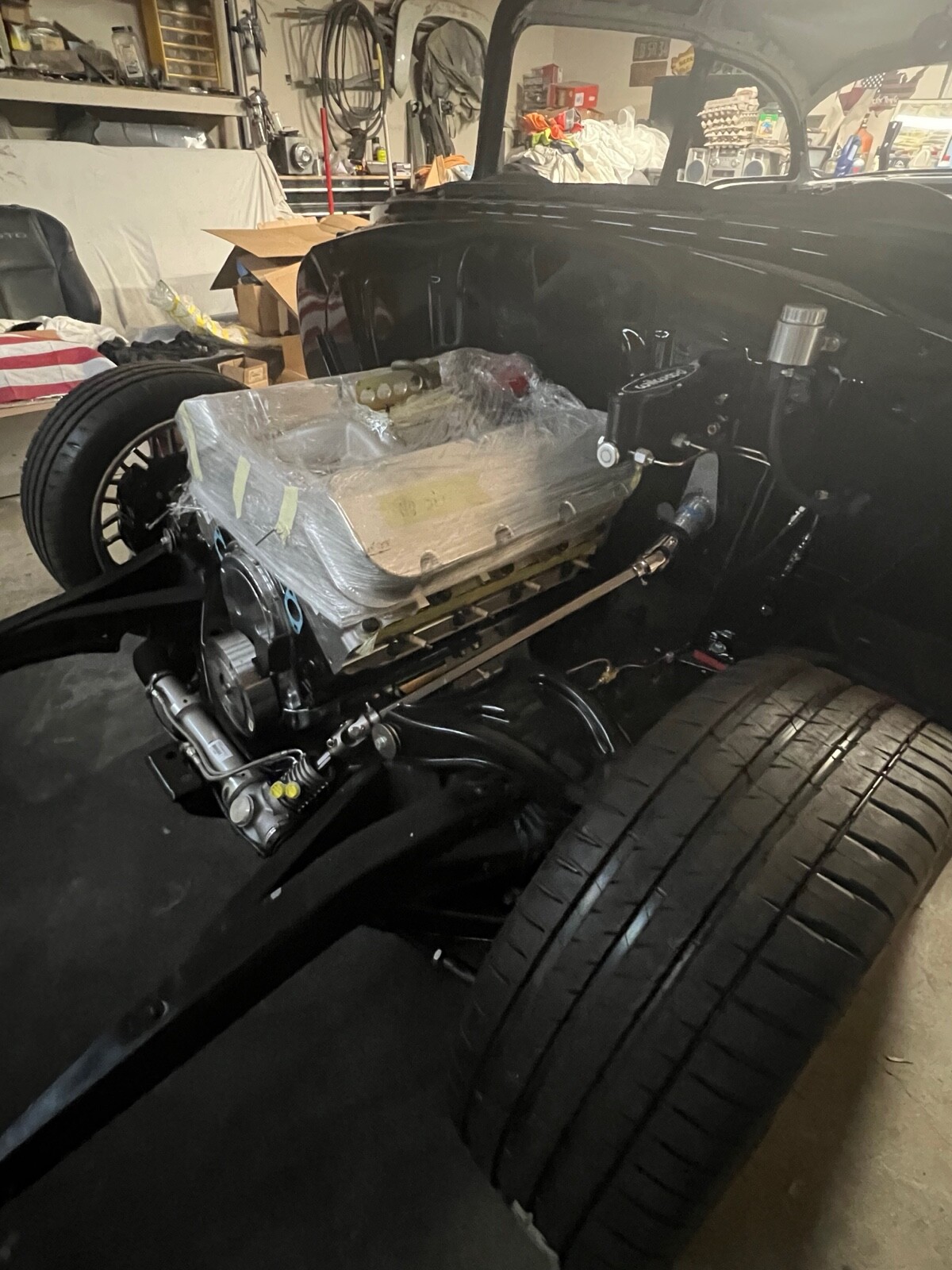 Skim coated and blocked out laser straight good for a black paint job which the firewall is already painted and bottom of car is rhino lined with new Energy poly body mounts.