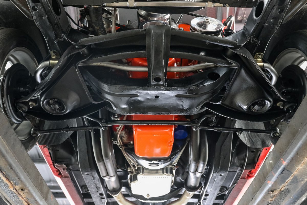 This beast doesn't just roar; it thunders down the road, thanks to long tube headers and a dual exhaust system that give it a sound as imposing as its appearance. The power steering and brakes, including front disc brakes, ensure that this Nova is as tame as it is wild, offering precision handling and control that match its brute force. It's a car that demands attention, not just for its looks but for the sheer power it commands.