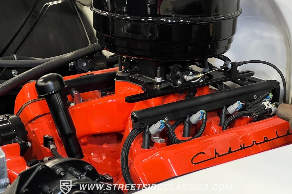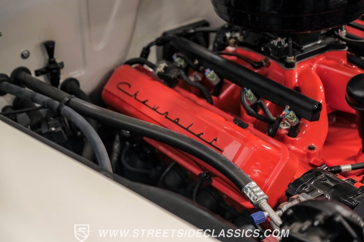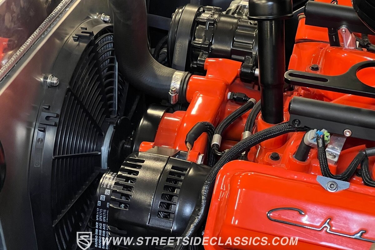 Powering this restomod is a 6.2L V8 LS3 engine, cleverly disguised to resemble a classic small-block Chevy. With 700 miles since the rebuild, it's paired with a 4L60E 4-speed automatic transmission for smooth cruising. The engine bay is a masterclass in clean integration, featuring tucked wiring harnesses, a Champion aluminum radiator, and electric fan. A performance cam from Texas Speed adds extra grunt, while the Flowmaster exhaust system with X-pipe provides a muscular soundtrack.