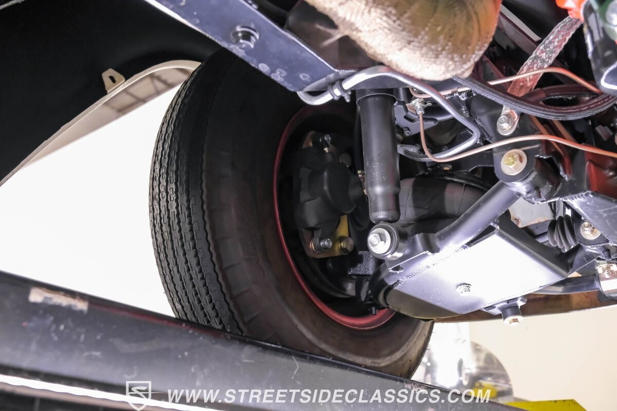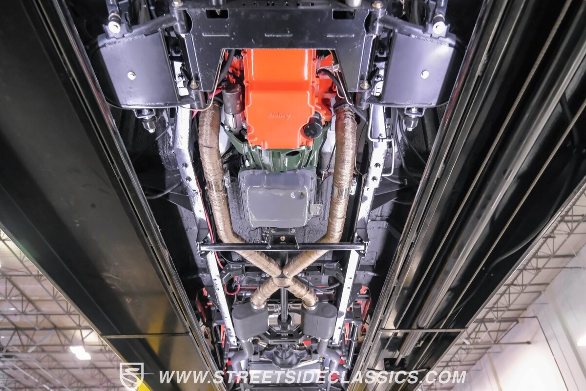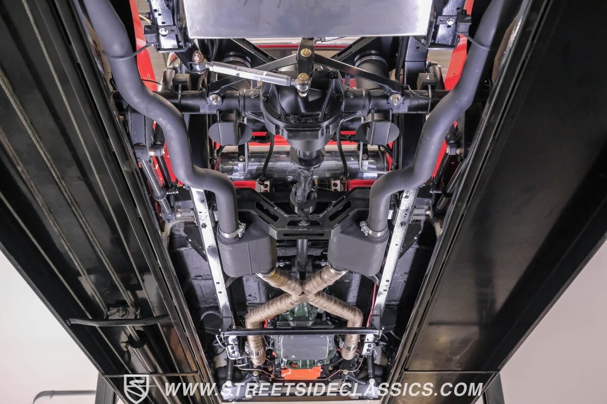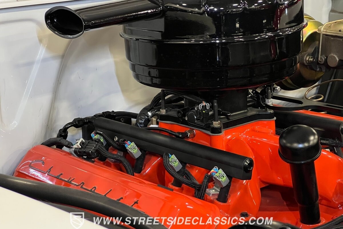 Powering this restomod is a 6.2L V8 LS3 engine, cleverly disguised to resemble a classic small-block Chevy. With 700 miles since the rebuild, it's paired with a 4L60E 4-speed automatic transmission for smooth cruising. The engine bay is a masterclass in clean integration, featuring tucked wiring harnesses, a Champion aluminum radiator, and electric fan. A performance cam from Texas Speed adds extra grunt, while the Flowmaster exhaust system with X-pipe provides a muscular soundtrack.