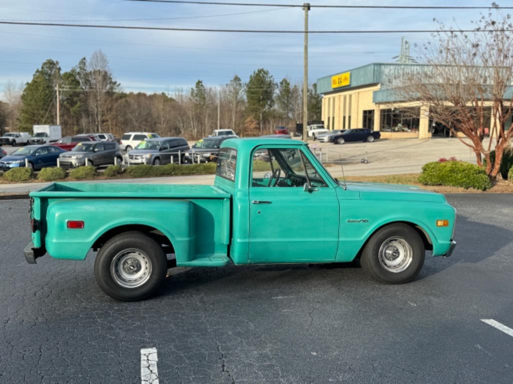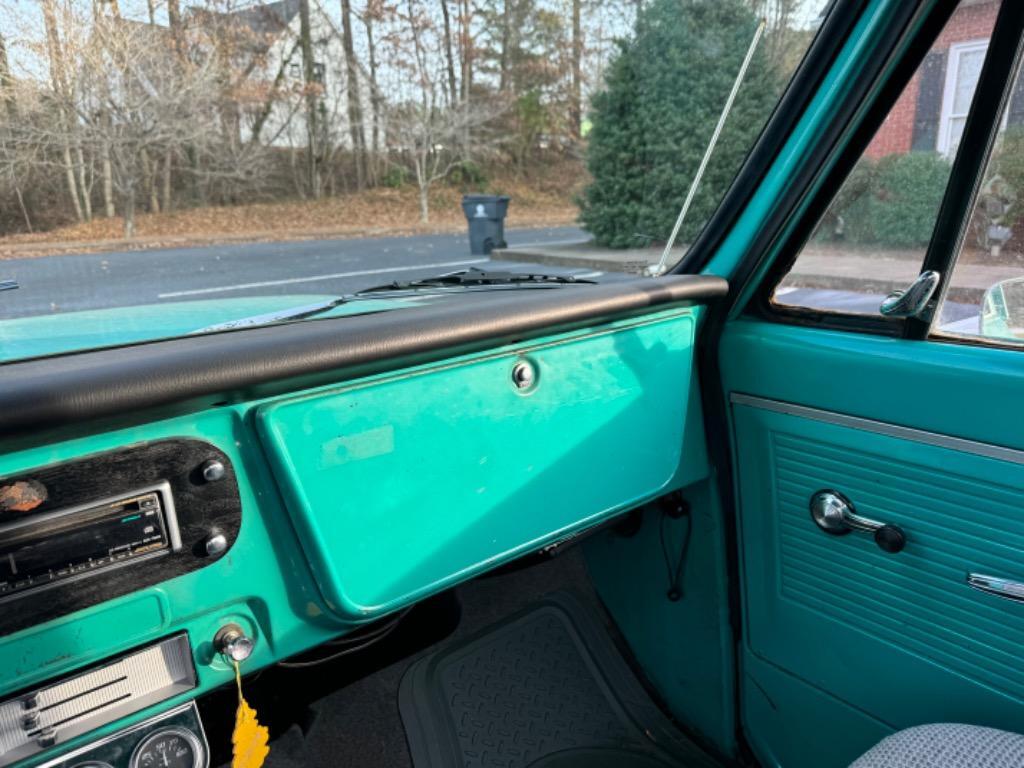 1971 Chevrolet custom C/10, factory short bed not a cut down long bed-step side with wood bed-bed has some rot in one of the corners- look at pics. Guys wife drove this truck in from 2.5 hours away so it has great driving characteristics, mild built 350 V8, small cam, headers, Holley double pumper from Holley street performer aluminum intake, flow master exhaust, has electric cutouts if you want to wake up the neighbors, feels like a 2000# stall to me, power steering, power disc brakes, brand new tires are Cooper cobra radials GT, 255/70R/15, on 15” ralley wheels, with new bands and Chevrolet caps, 10 bolt rear end with posi traction rear, fresh trade in just drove in 170 miles away, paint is medium green factory color shows patina, chrome bumper up front shines and is in great shape, grille is in great shape and isn’t busted anywhere, aluminum trim is in great shape could use some polishing to make it shine but isn’t dented or pinged up like most. All lights blinkers work like they are supposed to, Wipers work, upgraded stereo, seat looks like a 1988-1997-straight cloth bench, Has a tachometer, oil, water, voltage gauges all work, windows roll up and down, door handles inside and out work properly and look original, has seatbelts, doors open and close correctly and aren’t sagging, this a lot of truck for the money. Took it on trade and didn’t build it so we have no specs on engine. Body looks to be straight and original. Will get it on the lift and get pics of rockers and all underneath pics of the body. This isn’t a $50k show truck that why we priced at $20000.