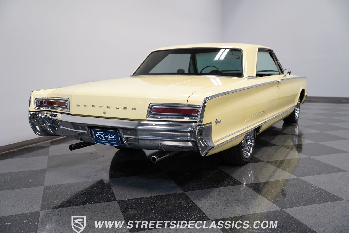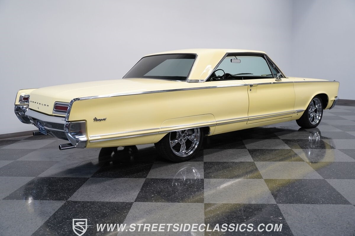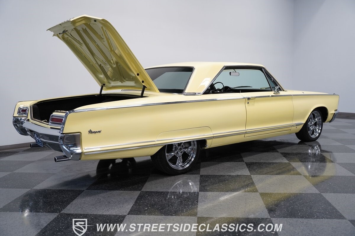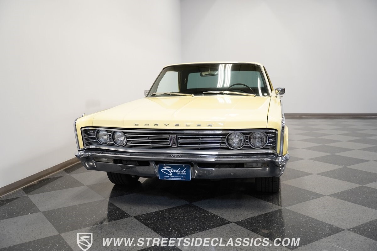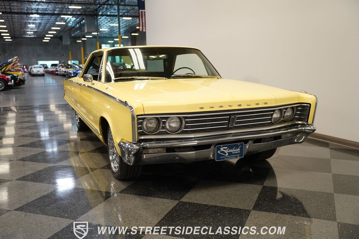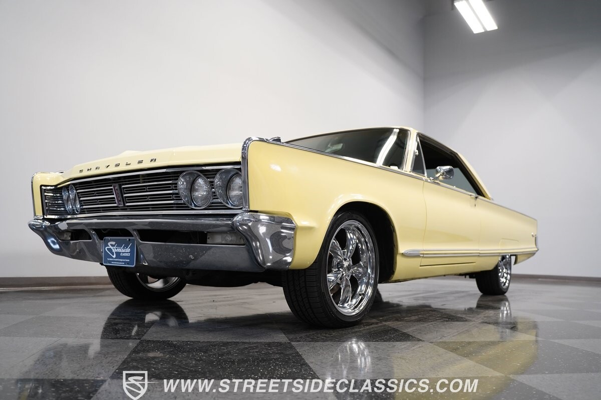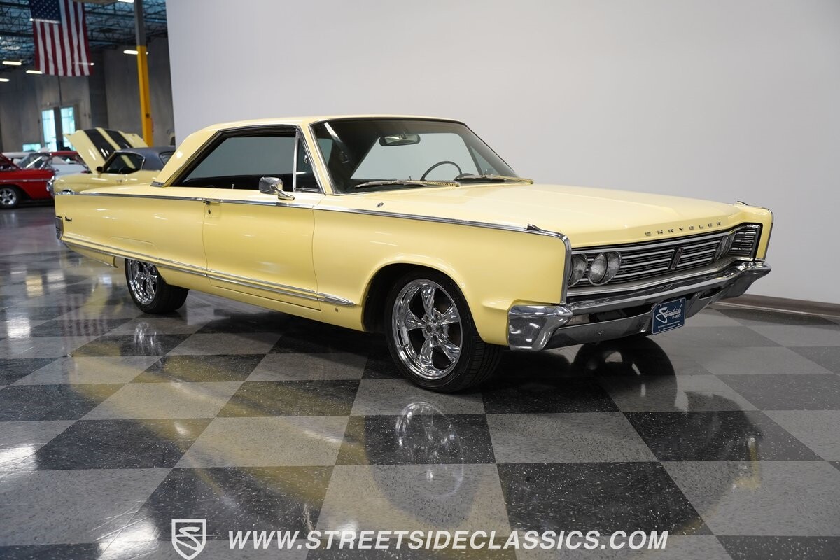 This 1966 Chrysler Newport, clad in Daffodil Yellow, stands as a prime example of mid-century American automotive design. Its broad, commanding presence on the road is accentuated by 18-inch chrome American Racing wheels, wrapped in Falken Pro G5 235/45R18 tires. This vehicle is not only a nod to Chrysler's commitment to elegance and power but also a practical choice for anyone seeking a mix of style and reliability.