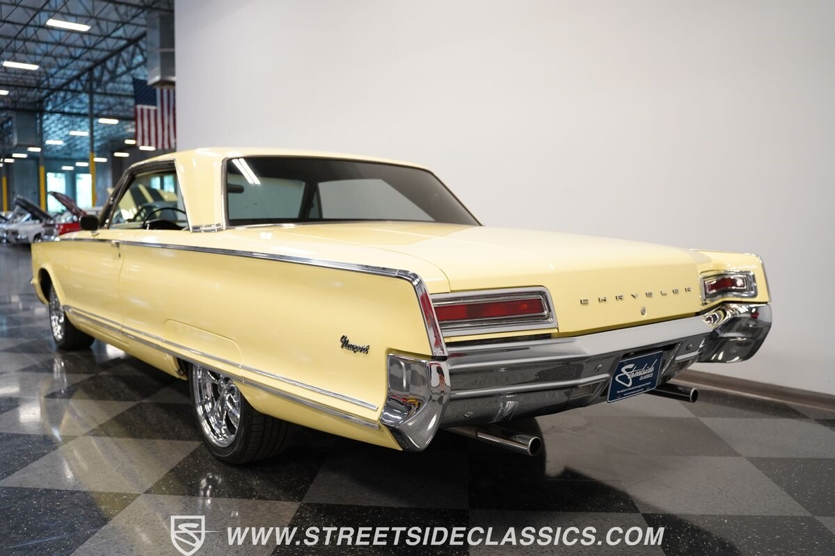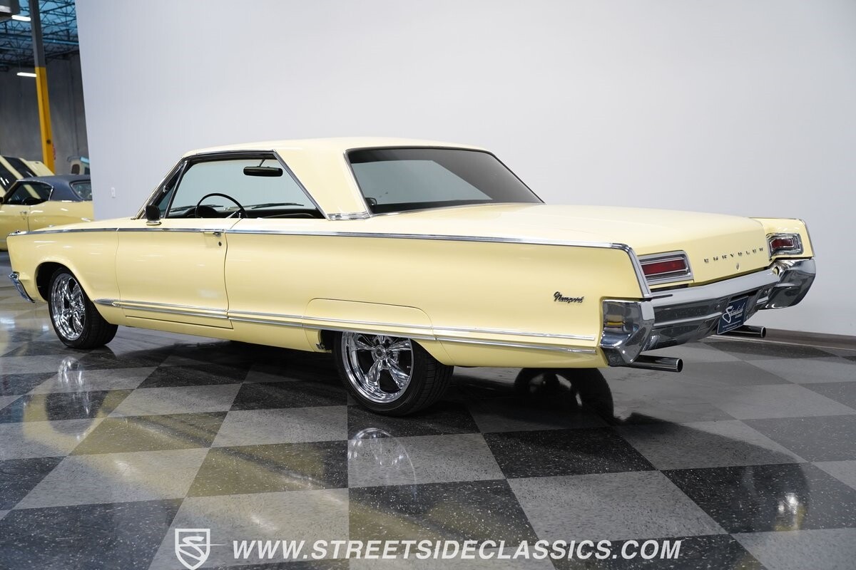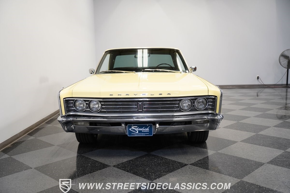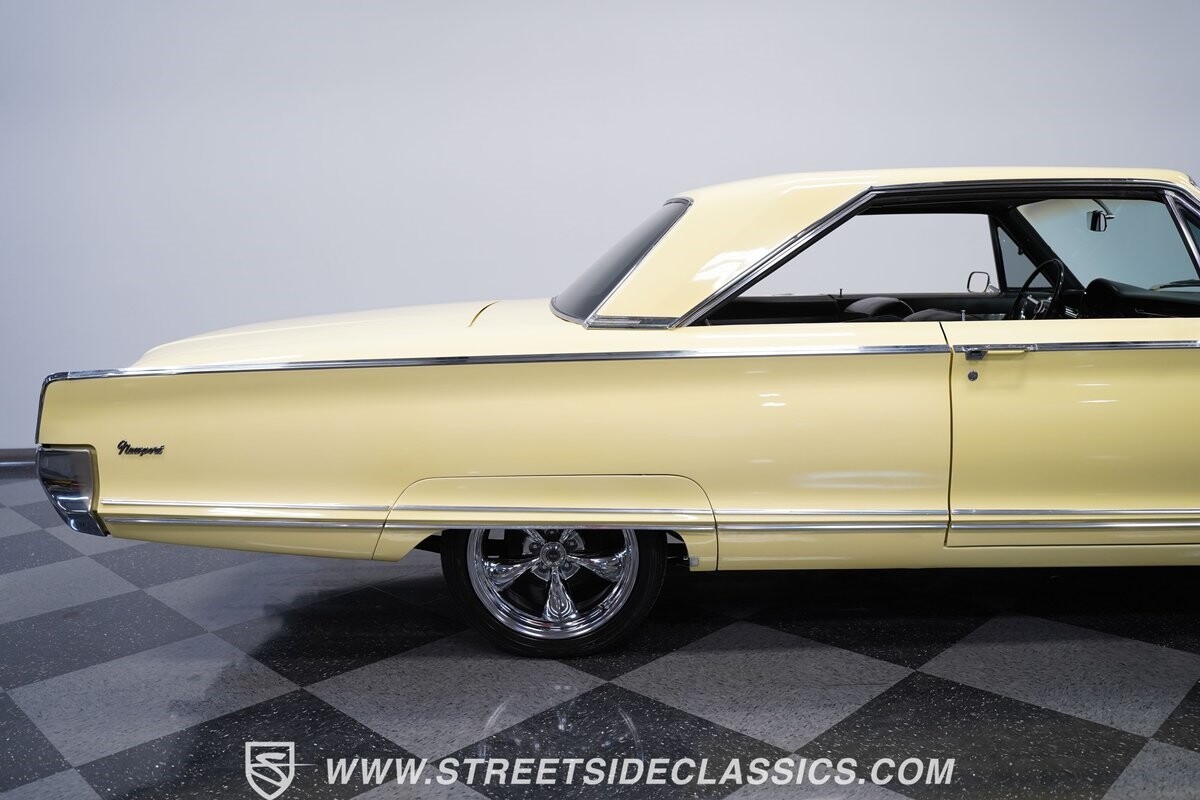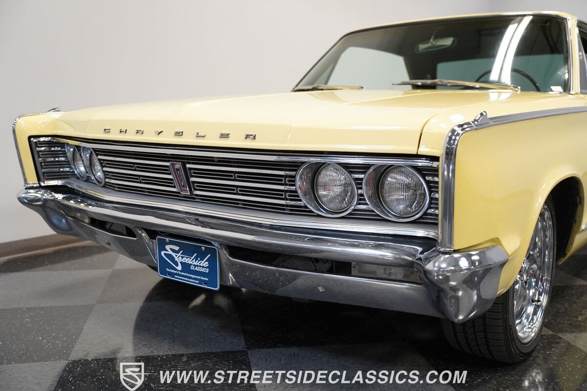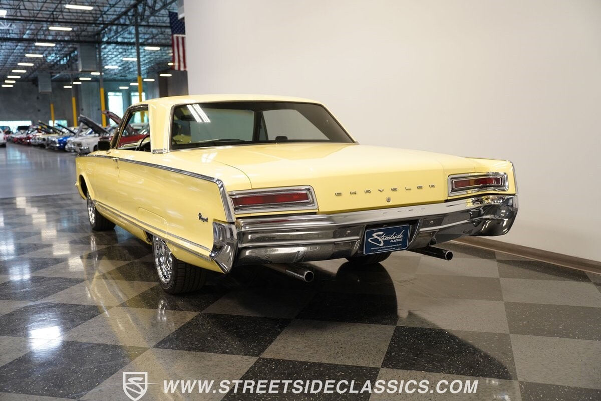 This 1966 Chrysler Newport, clad in Daffodil Yellow, stands as a prime example of mid-century American automotive design. Its broad, commanding presence on the road is accentuated by 18-inch chrome American Racing wheels, wrapped in Falken Pro G5 235/45R18 tires. This vehicle is not only a nod to Chrysler's commitment to elegance and power but also a practical choice for anyone seeking a mix of style and reliability.