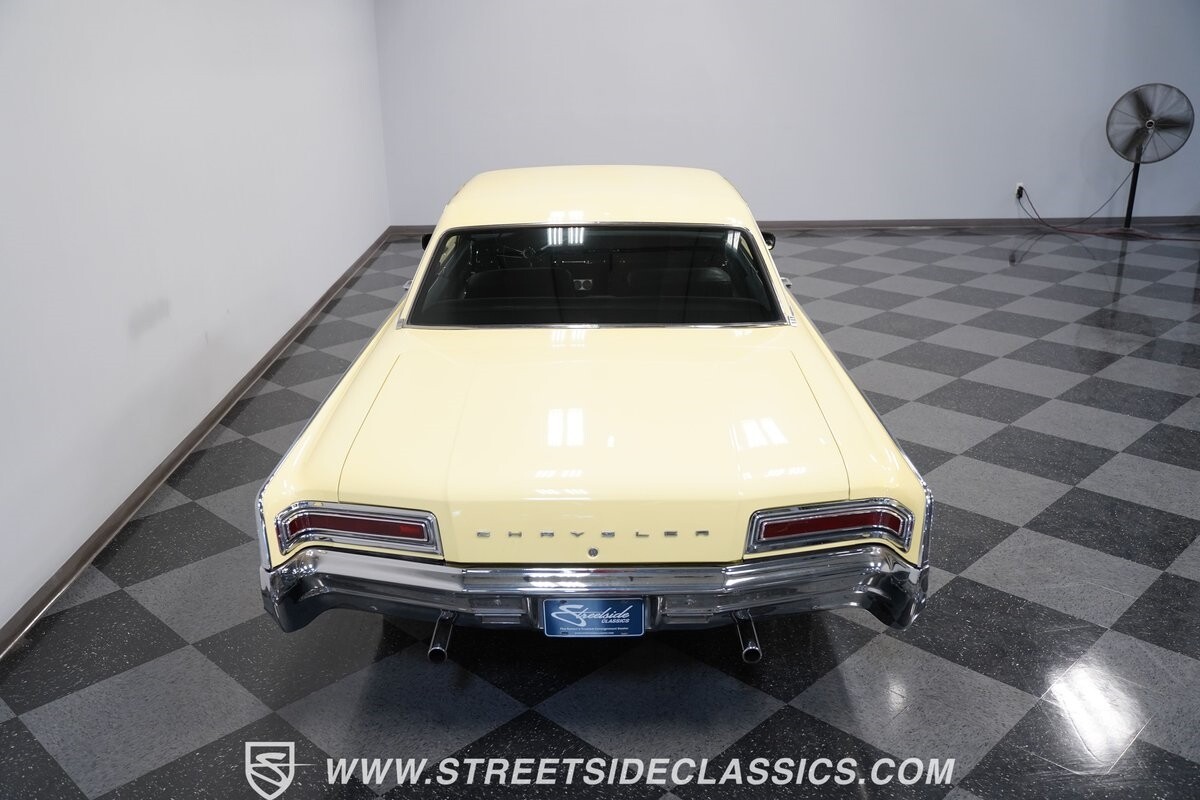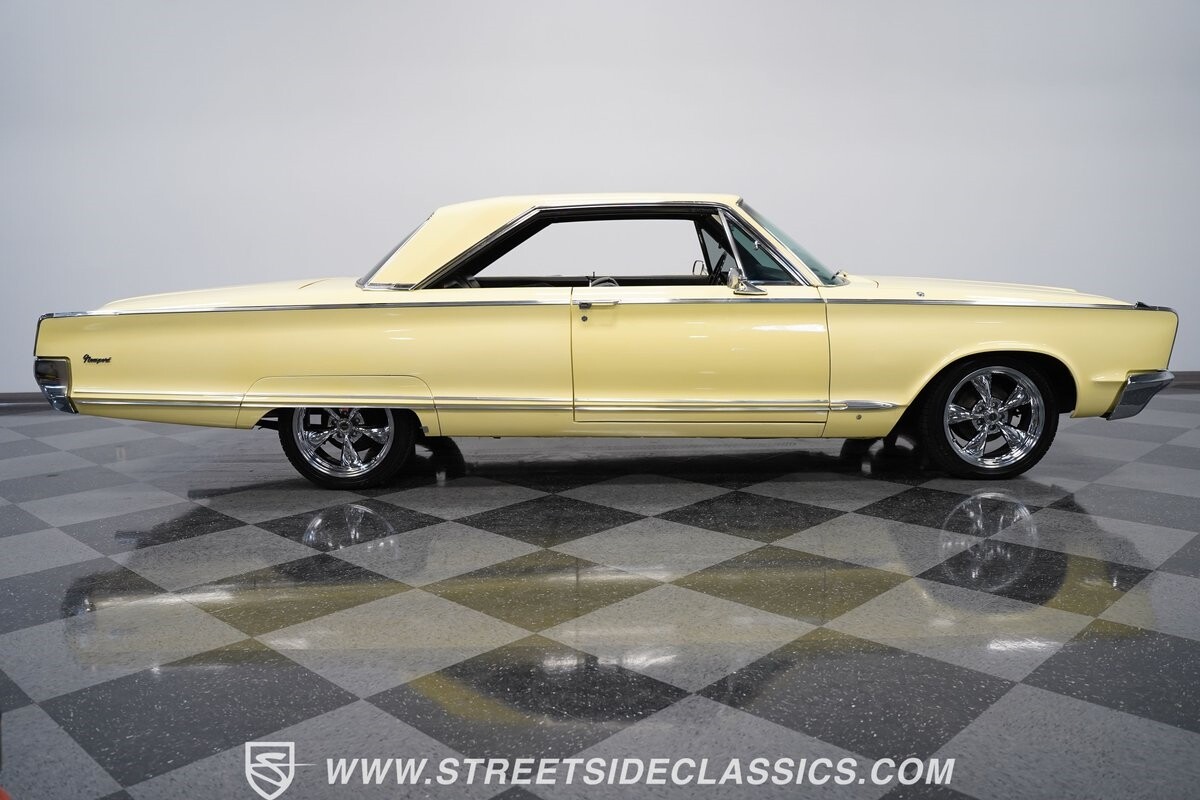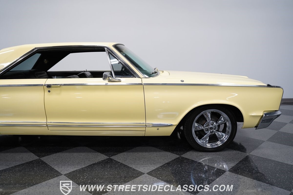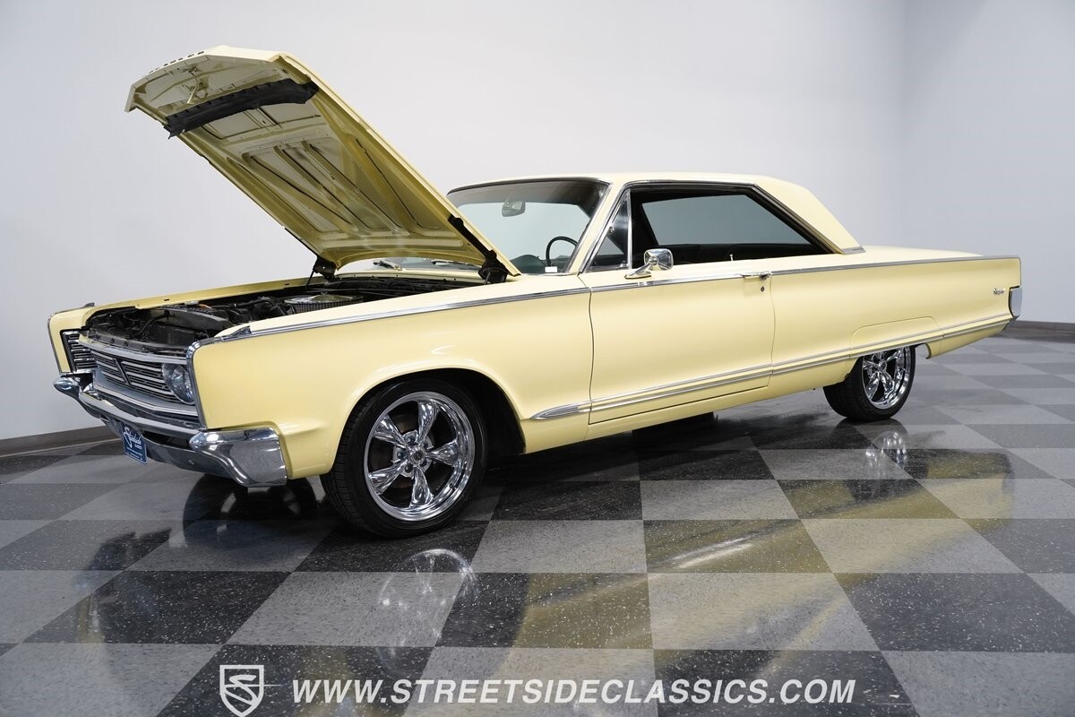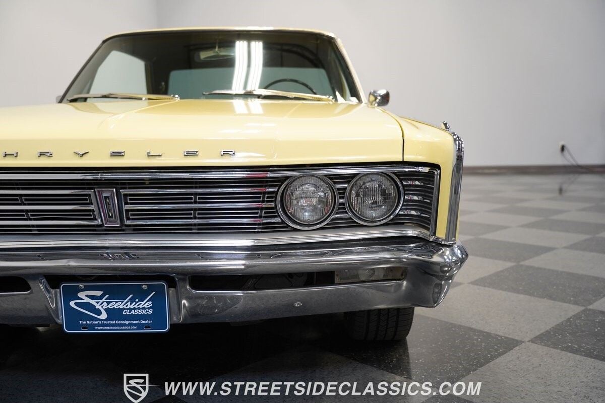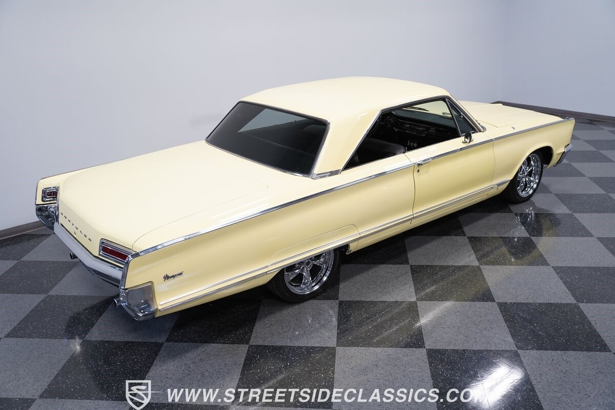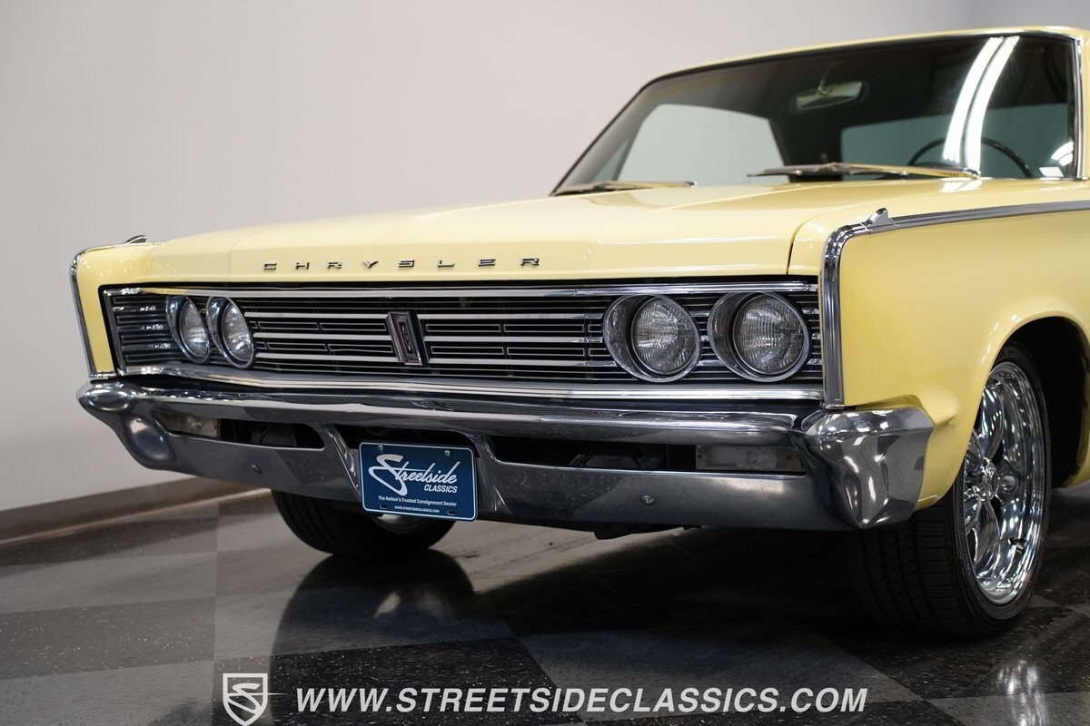 This 1966 Chrysler Newport, clad in Daffodil Yellow, stands as a prime example of mid-century American automotive design. Its broad, commanding presence on the road is accentuated by 18-inch chrome American Racing wheels, wrapped in Falken Pro G5 235/45R18 tires. This vehicle is not only a nod to Chrysler's commitment to elegance and power but also a practical choice for anyone seeking a mix of style and reliability.