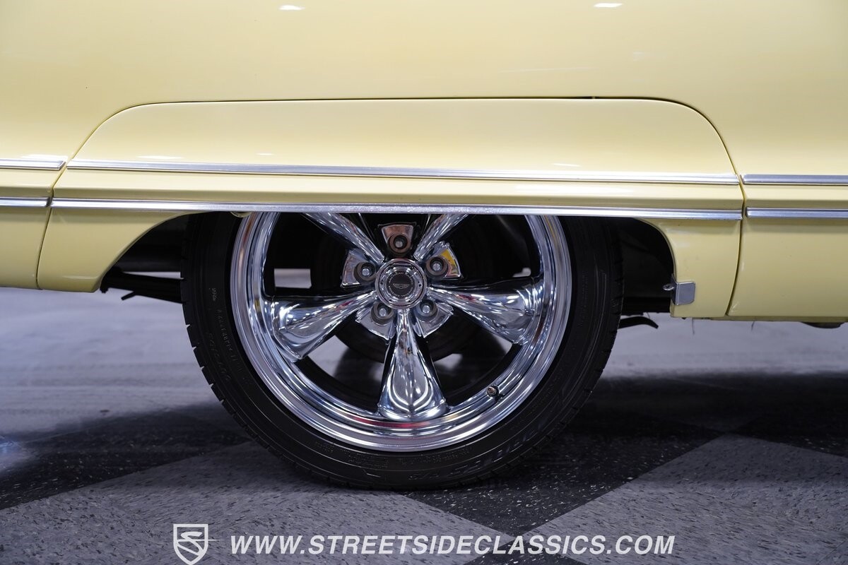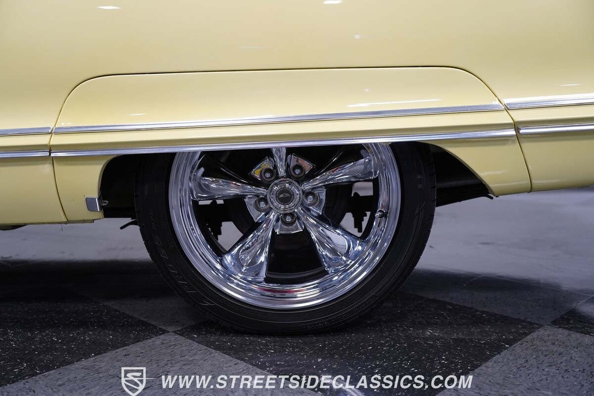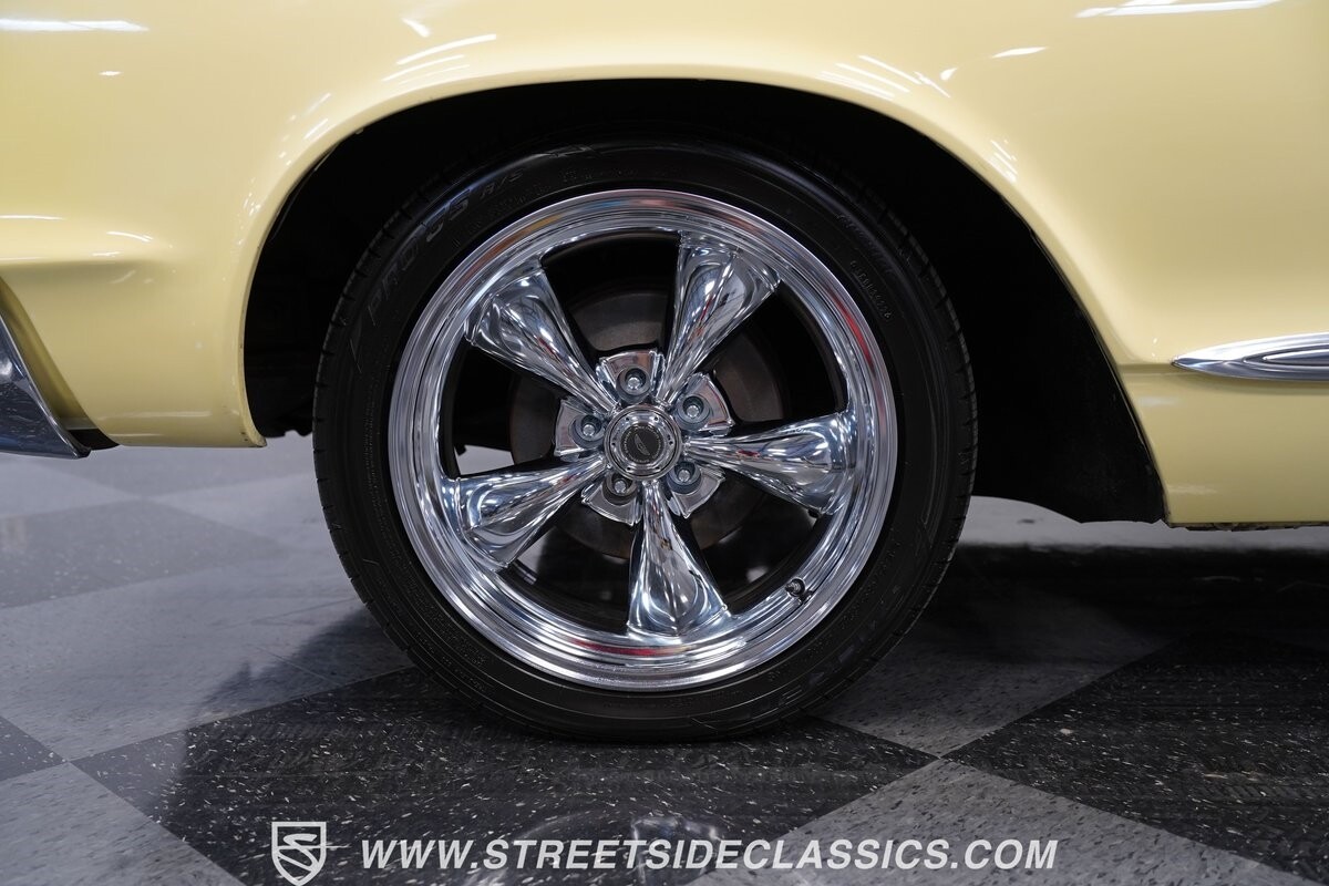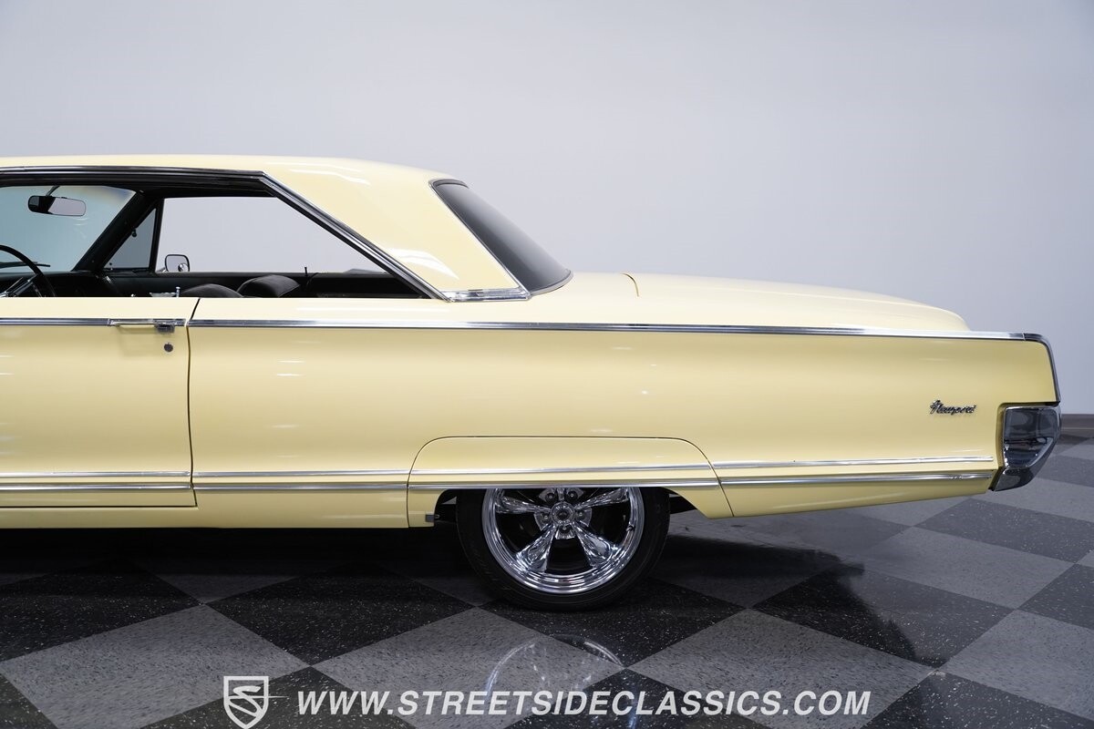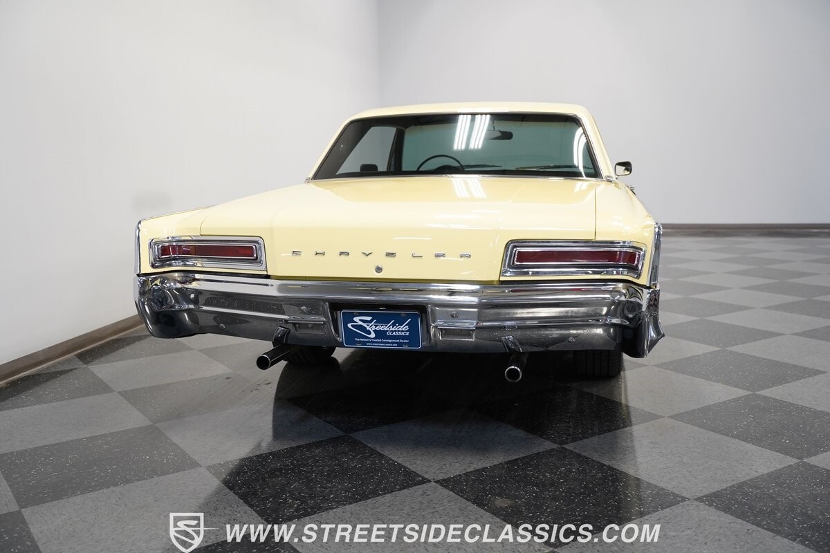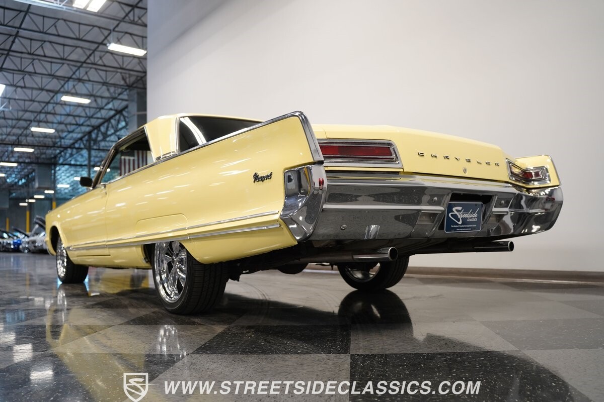 This 1966 Chrysler Newport, clad in Daffodil Yellow, stands as a prime example of mid-century American automotive design. Its broad, commanding presence on the road is accentuated by 18-inch chrome American Racing wheels, wrapped in Falken Pro G5 235/45R18 tires. This vehicle is not only a nod to Chrysler's commitment to elegance and power but also a practical choice for anyone seeking a mix of style and reliability.