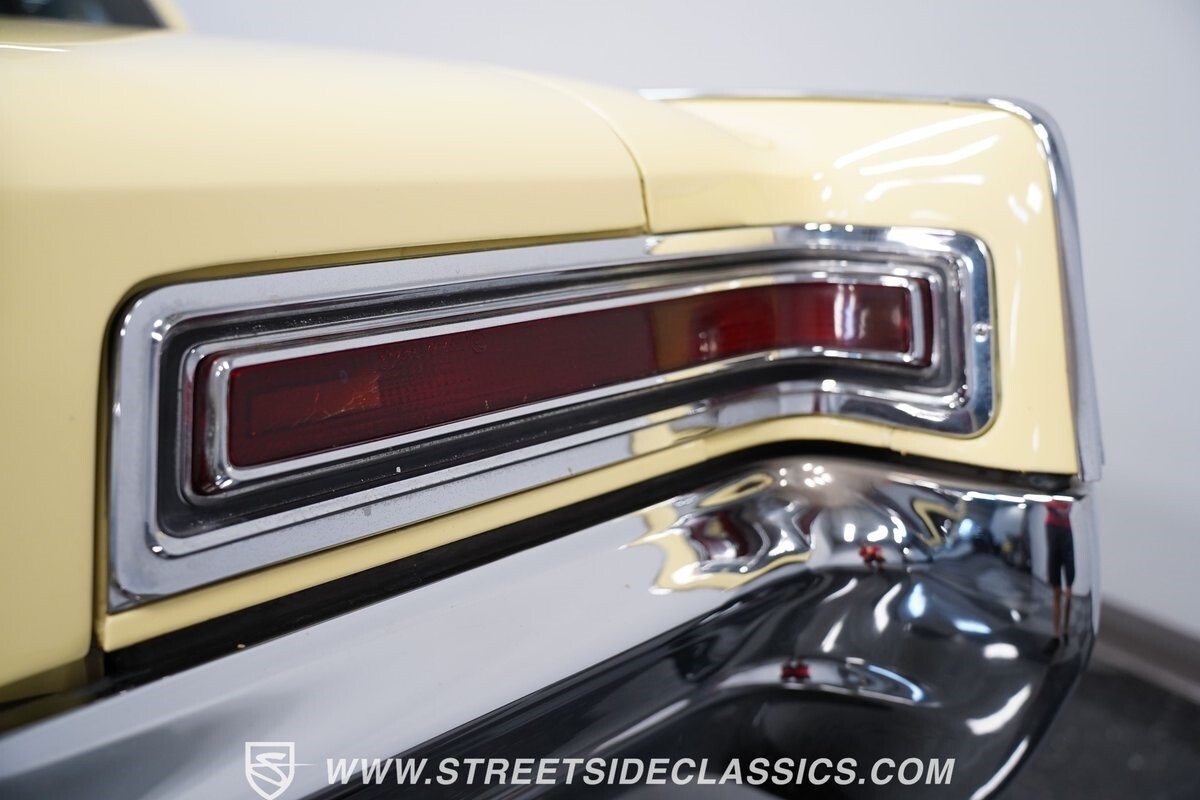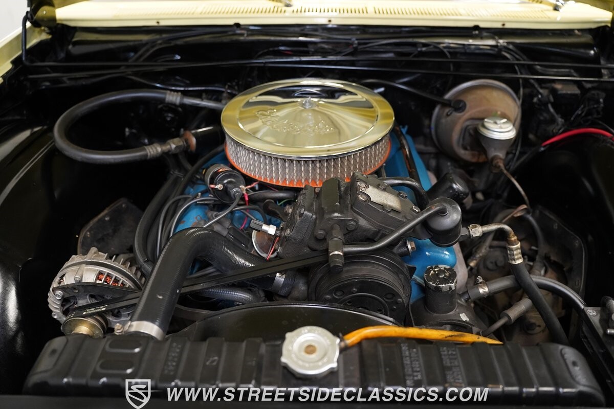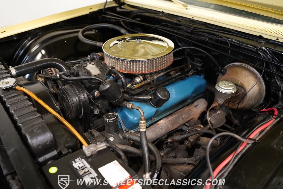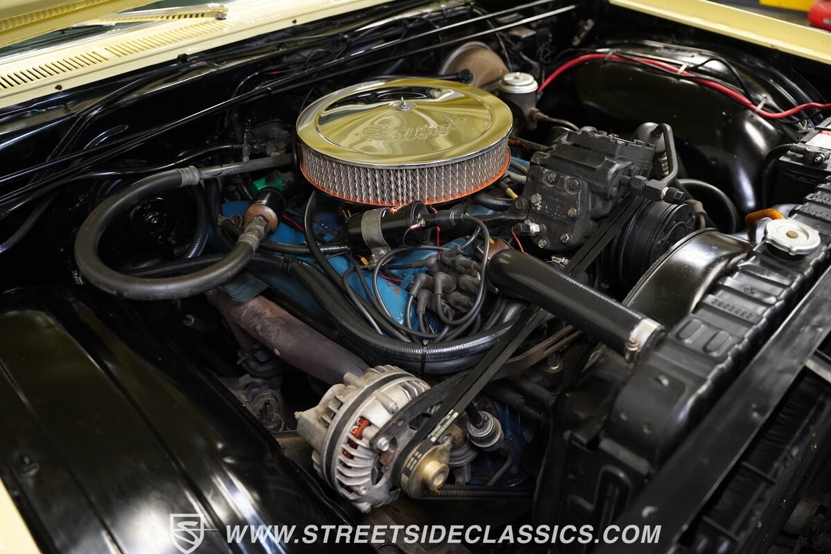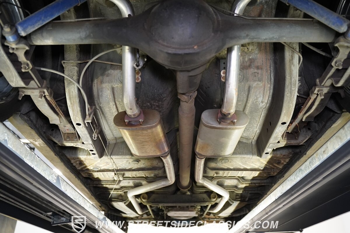 Under the hood, a 383 cubic inch V8 provides ample thrust. It's fed by an Edelbrock four-barrel carburetor with electric choke, breathing through an open-element air cleaner. Power steering and brakes ensure effortless control, while the A727 TorqueFlite three-speed automatic transmission handles gear changes with smooth efficiency. Dual exhaust with chrome tips provides a fitting soundtrack for this classic cruiser.