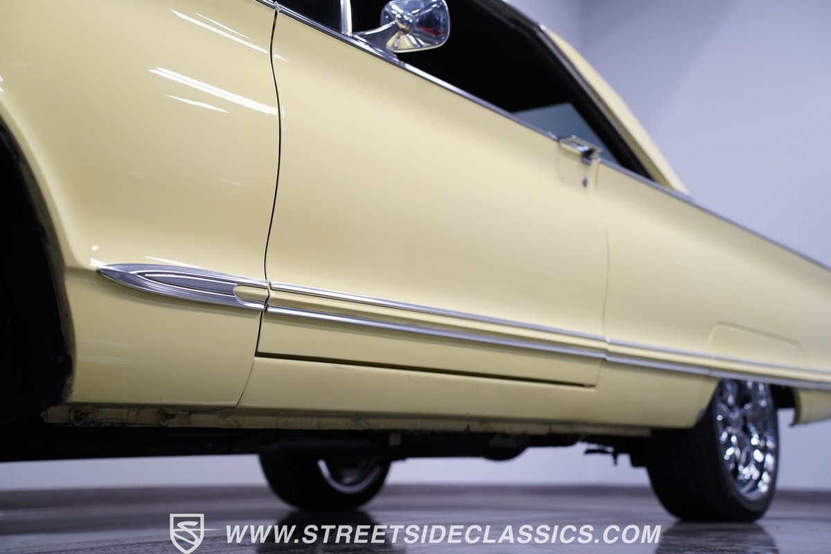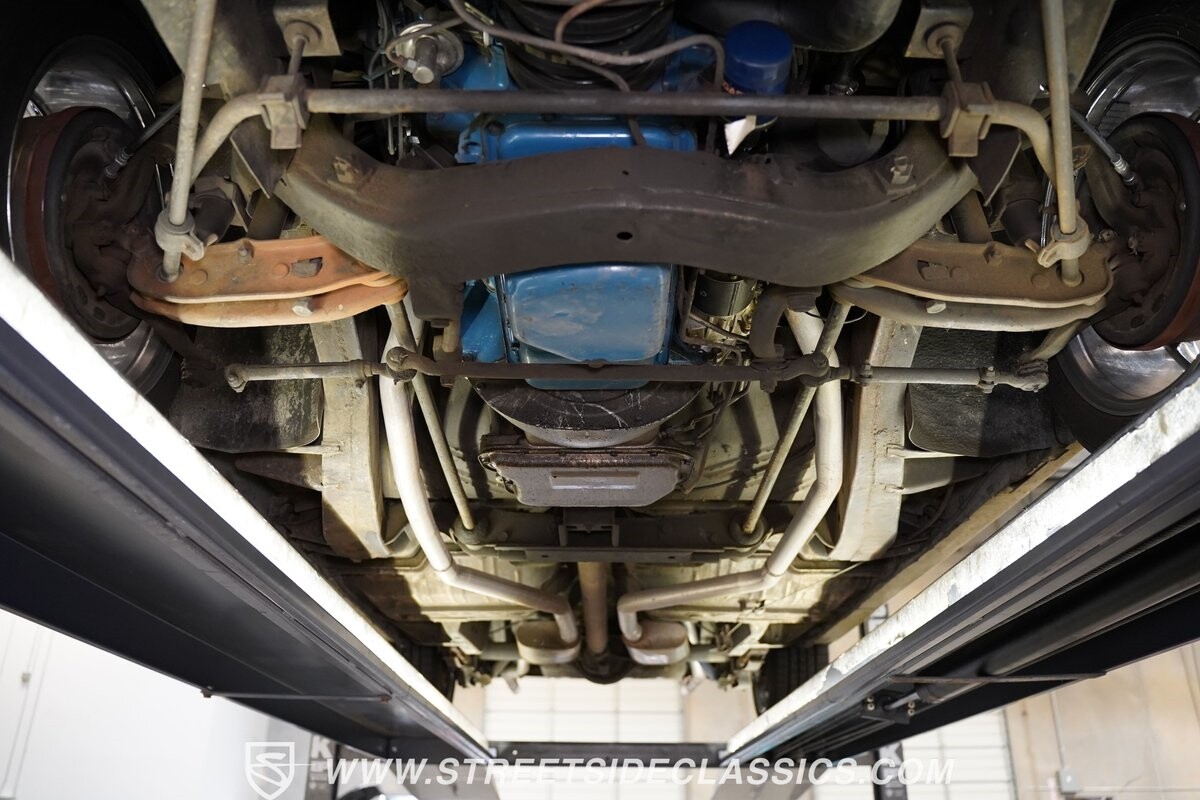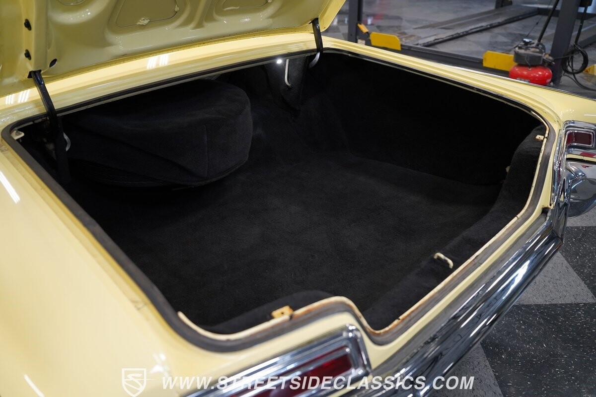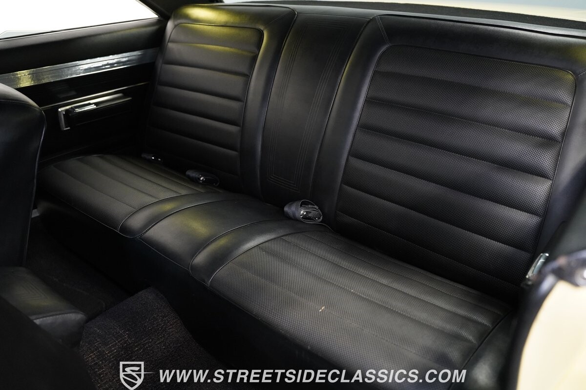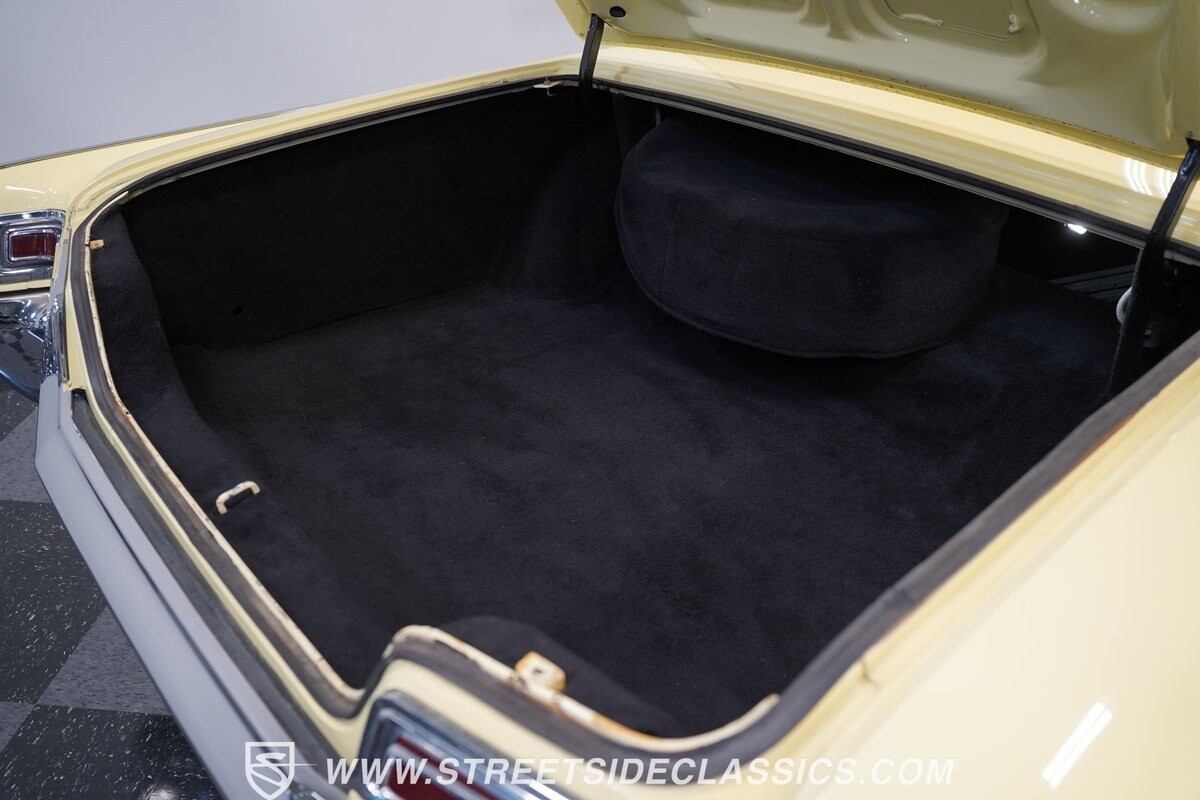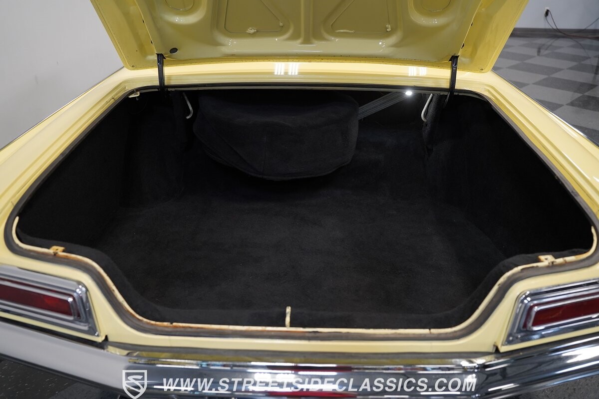 Under the hood, a 383 cubic inch V8 provides ample thrust. It's fed by an Edelbrock four-barrel carburetor with electric choke, breathing through an open-element air cleaner. Power steering and brakes ensure effortless control, while the A727 TorqueFlite three-speed automatic transmission handles gear changes with smooth efficiency. Dual exhaust with chrome tips provides a fitting soundtrack for this classic cruiser.