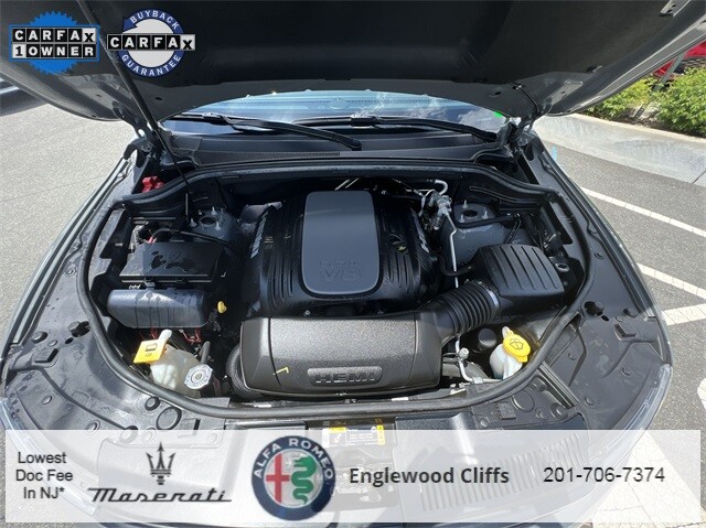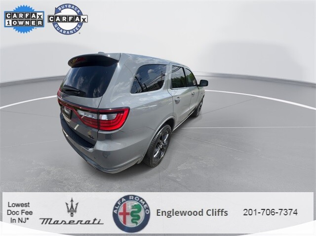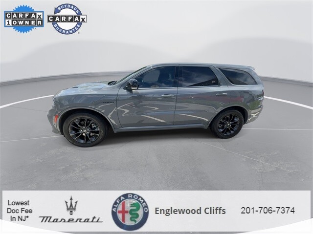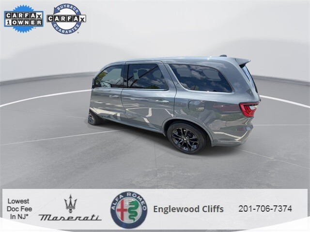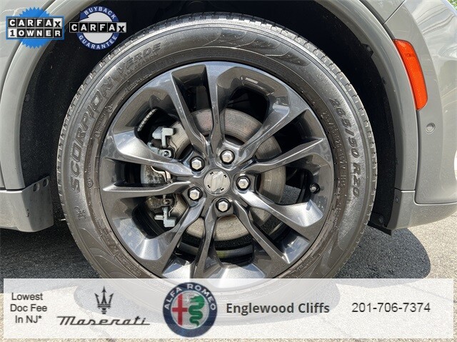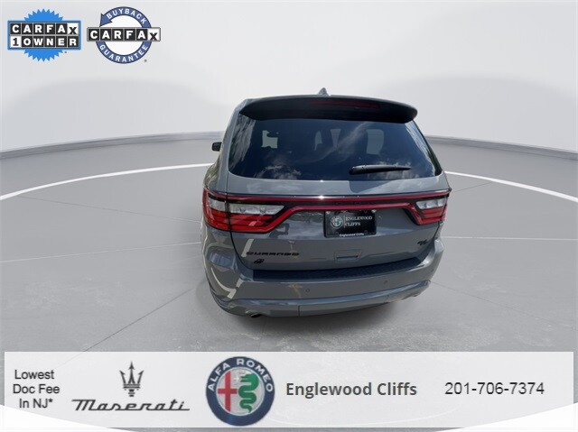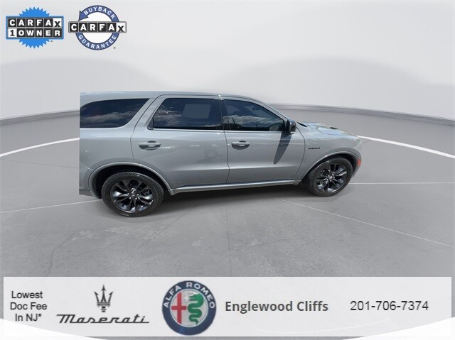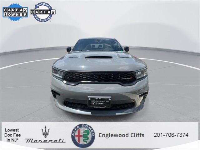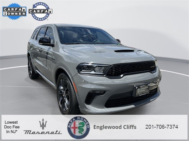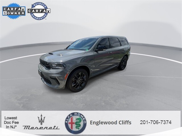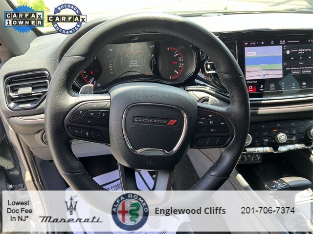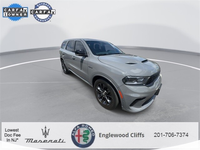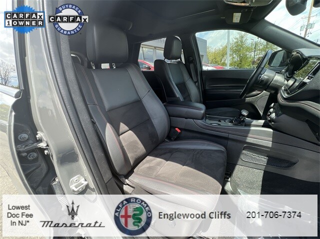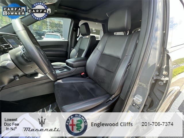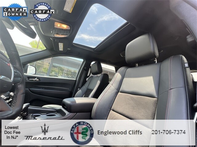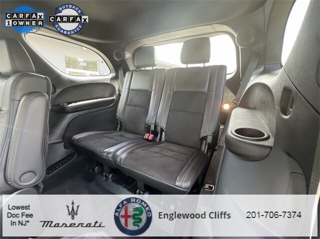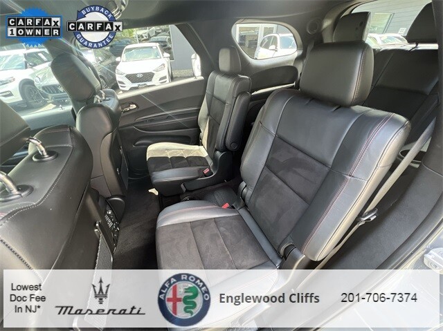 This Durango R/T is nicely equipped with Blacktop Package (Gloss Black Badges, Gloss Black Exterior Mirrors, and Satin Black Dodge Tail Lamp Badge), Quick Order Package 22S R/T, AWD, 2nd Row Mini Console w/Cupholders, 9 Speakers, Apple CarPlay/Android Auto, Audio memory, Auto High-beam Headlights, Auto-dimming door mirrors, Auto-dimming Rear-View mirror, Auto-leveling suspension, Automatic temperature control, Brake assist, Compass, Electronic Stability Control, Four wheel independent suspension, Front dual zone A/C, Fully automatic headlights, Garage door transmitter, Heated door mirrors, Heated front seats, Heated rear seats, Heated steering wheel, Heavy-Duty Engine Cooling, Illuminated entry, Memory seat, Navigation system: TomTom, Outside temperature display, Overhead console, Panic alarm, ParkView Rear Back-Up Camera, Power door mirrors, Power driver seat, Power Liftgate, Power passenger seat, Power steering, Power Sunroof, Power windows, Radio data system, Radio: Uconnect 5 Nav w/10.1 Display, Rain sensing wipers, Rear air conditioning, Rear Load Leveling Suspension, Rear window defroster, Rear window wiper, Remote keyless entry, Security system, Speed control, Speed-sensing steering, Steering wheel mounted audio controls, Traction control, Turn signal indicator mirrors, 2nd Row Fold/Tumble Captain Chairs, 2nd Row Seat Mounted Inboard Armrests, 3.09 Rear Axle Ratio, 3rd row seats: split-bench, 4-Wheel Disc Brakes, 6-Passenger Seating, ABS brakes, Air Conditioning, Alloy wheels, AM/FM radio: SiriusXM w/360L, Anti-whiplash front head restraints, Bumpers: body-color, Delay-off headlights, Driver door bin, Driver vanity mirror, Dual front impact airbags, Dual front side impact airbags, Emergency communication system: SiriusXM Guardian, Front anti-roll bar, Front Bucket Seats, Front Center Armrest w/Storage, Front fog lights, Front reading lights, Knee airbag, Leather Suede Bucket Seats, Low tire pressure warning, Mini Console 3rd Row Floor Mat, Occupant sensing airbag, Overhead airbag, Passenger door bin, Passenger vanity mirror, Rear anti-roll bar, Rear reading lights, Rear seat center armrest, Speed-Sensitive Wipers, Split folding rear seat, Spoiler, Tachometer, Telescoping steering wheel, Tilt steering wheel, Trip computer, Variably intermittent wipers, Voltmeter, Wheels: 20 x 8.0 Black Noise Aluminum, and Wheels: 20 x 8.0 Fine Silver.
