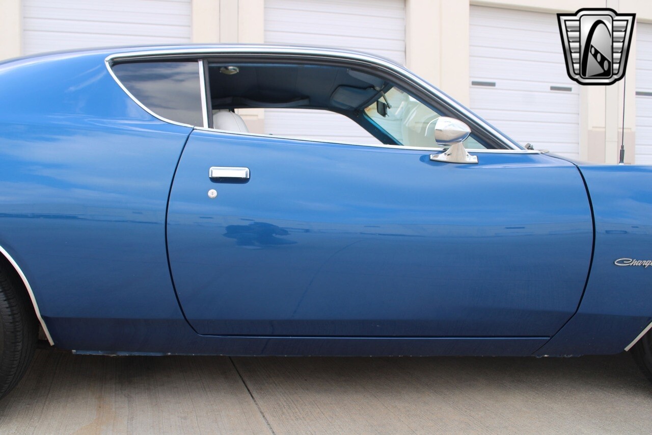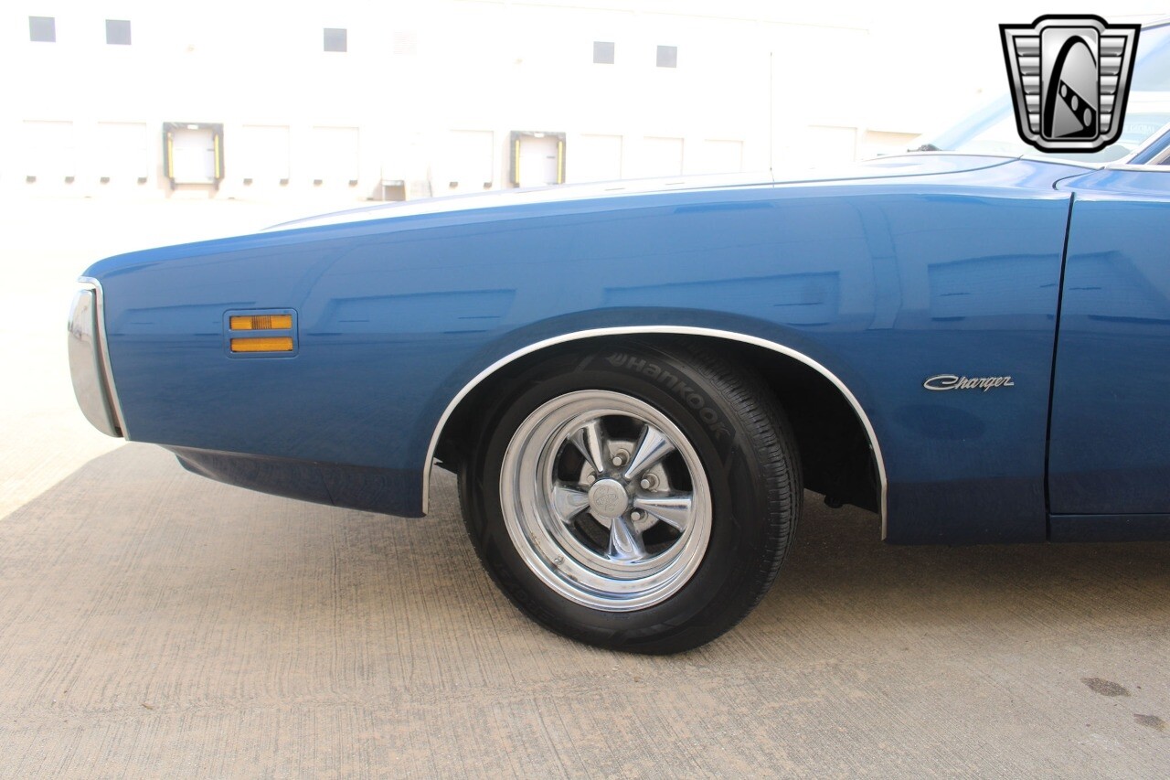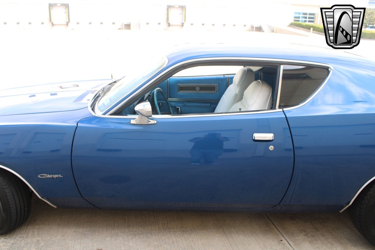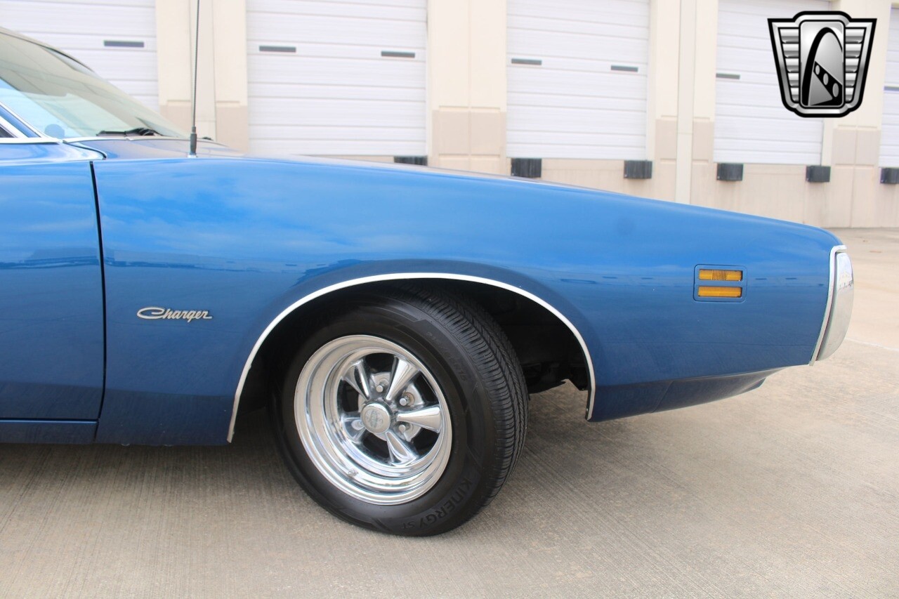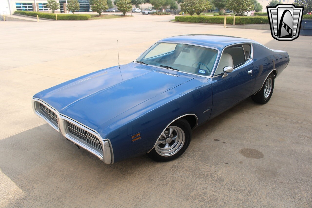 Gateway Classic Cars Houston Showroom is excited to present this gorgeous Dark Blue Metallic 1971 Dodge Charger for sale. Based on what the decoded fender tag indicates, this car is nearly the same as it was when it rolled off the manufacturing line in 1971! It appears to have been a special-order configuration, based on the "Sold Car" designation (code Y14) on the fender tag, since it's a base Charger with some premium options. For starters, the 300HP 383 CID V8 with 4BBL carburetor (codes N1E and E65) was not the standard engine in a base Charger, nor was the Heavy Duty Automatic Transmission (code D32). It's painted in its original Dark Blue Metallic (GB7), but the original (white) Vinyl Canopy Roof (V4W) is no longer present; nor are the original black Accent Stripes (V7X) or Belt Moldings (M31), but frankly, it presents a nice clean look without those items. Inside, the original (blue) Luxury Cloth/Vinyl Bench Seat (D3B5), along with the rear seat, have been recovered in an attractive white synthetic leather, which adds a nice contrast to the rest of the blue interior (and the blue exterior). In fact, we like the looks better than the original seats, and the full synthetic leather seating is easier to clean than the original vinyl-trimmed cloth seating. This car was ordered with factory air conditioning (H51), but the compressor has been replaced with a modern one, which supports R134a refrigerant. It will need a coolant recharge to get it blowing ice cold though. An electric pusher fan has been added in front of the A/C condenser and 26-inch radiator (code "26" on the fender tag), which aids in cooling for both components. In addition to those option codes, it was also ordered with dual exhaust (code N41) and the Noise Reduction Package (code N97), so someone ordered just what they wanted. This sleek Charger comes with Power Steering, Power Brakes, and Seatbelts, and is riding on some chromed Cragar mags that are shod with modern Radial Tires. [ omitted ]. This 1971 Dodge Charger's originality, clean looks, and unique features make it worth a look!.