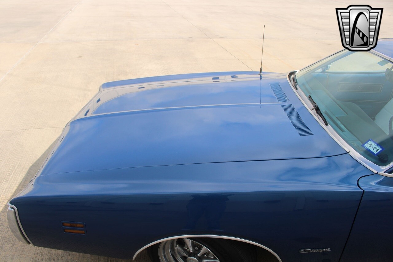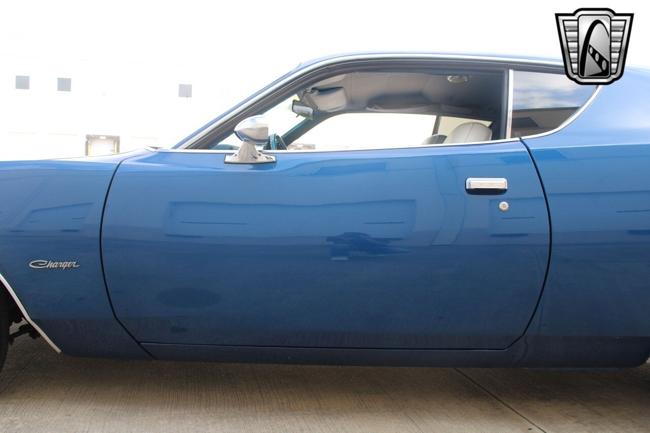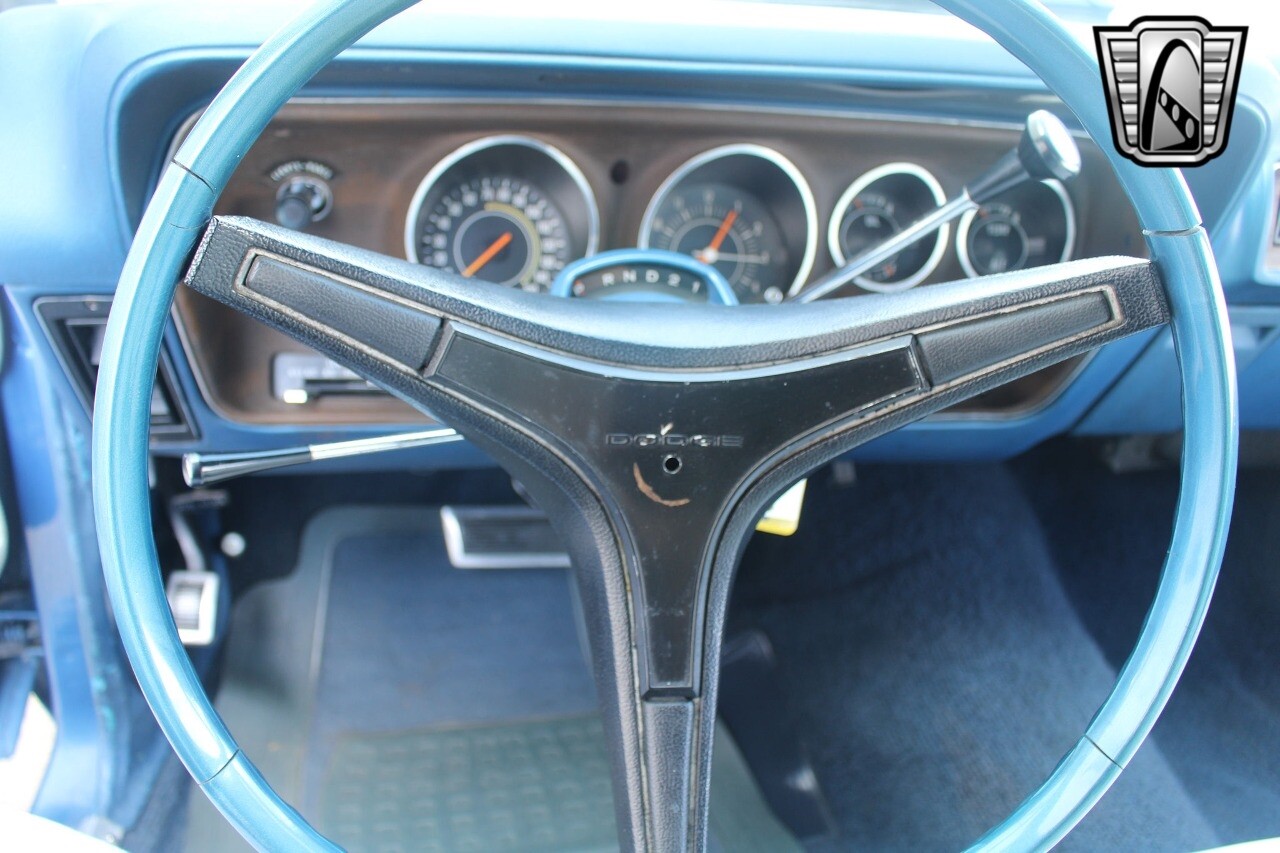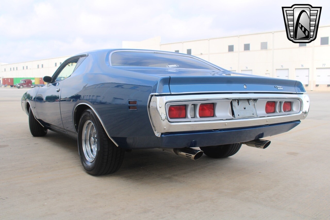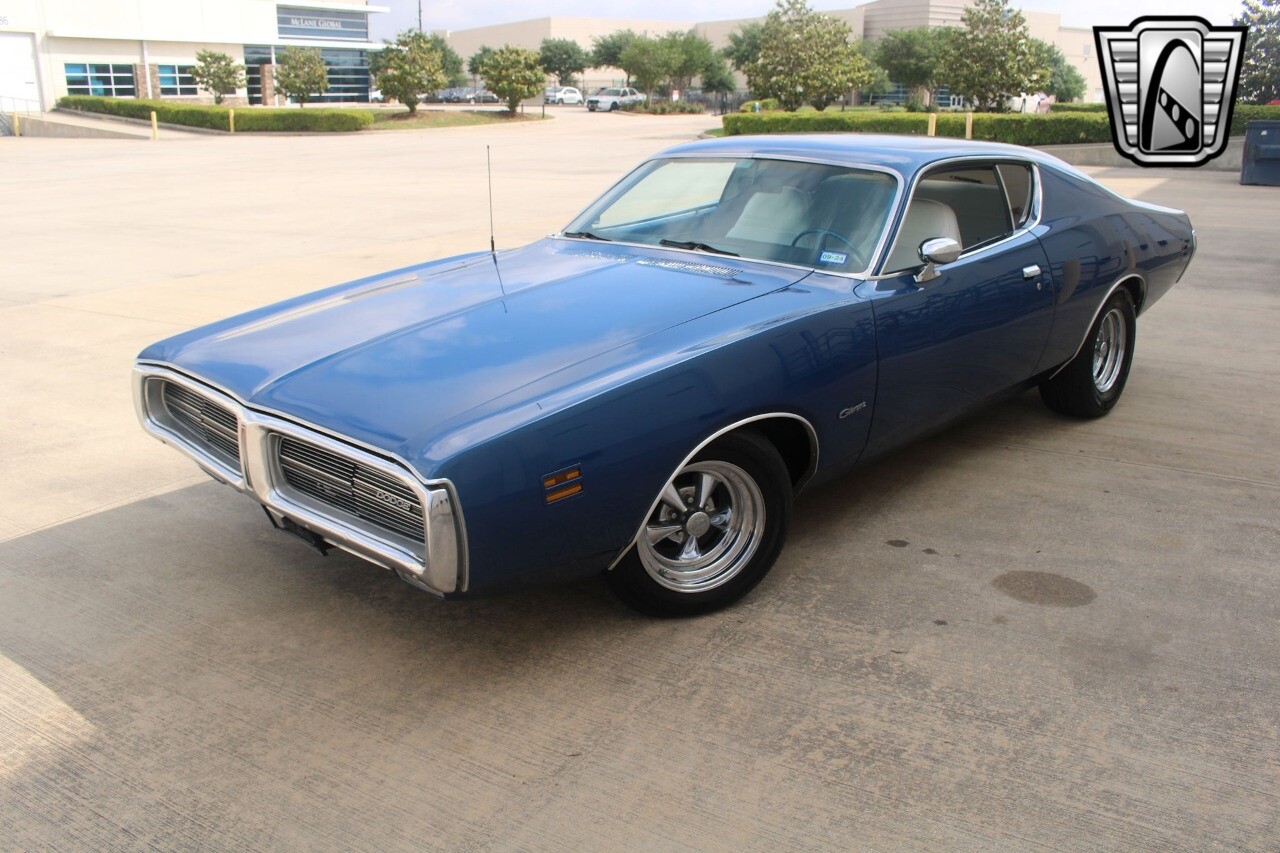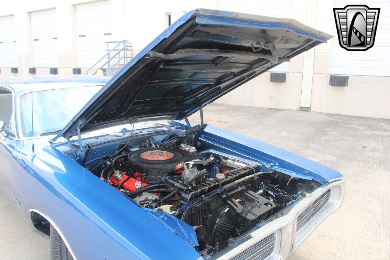 Gateway Classic Cars Houston Showroom is excited to present this gorgeous Dark Blue Metallic 1971 Dodge Charger for sale. Based on what the decoded fender tag indicates, this car is nearly the same as it was when it rolled off the manufacturing line in 1971! It appears to have been a special-order configuration, based on the "Sold Car" designation (code Y14) on the fender tag, since it's a base Charger with some premium options. For starters, the 300HP 383 CID V8 with 4BBL carburetor (codes N1E and E65) was not the standard engine in a base Charger, nor was the Heavy Duty Automatic Transmission (code D32). It's painted in its original Dark Blue Metallic (GB7), but the original (white) Vinyl Canopy Roof (V4W) is no longer present; nor are the original black Accent Stripes (V7X) or Belt Moldings (M31), but frankly, it presents a nice clean look without those items. Inside, the original (blue) Luxury Cloth/Vinyl Bench Seat (D3B5), along with the rear seat, have been recovered in an attractive white synthetic leather, which adds a nice contrast to the rest of the blue interior (and the blue exterior). In fact, we like the looks better than the original seats, and the full synthetic leather seating is easier to clean than the original vinyl-trimmed cloth seating. This car was ordered with factory air conditioning (H51), but the compressor has been replaced with a modern one, which supports R134a refrigerant. It will need a coolant recharge to get it blowing ice cold though. An electric pusher fan has been added in front of the A/C condenser and 26-inch radiator (code "26" on the fender tag), which aids in cooling for both components. In addition to those option codes, it was also ordered with dual exhaust (code N41) and the Noise Reduction Package (code N97), so someone ordered just what they wanted. This sleek Charger comes with Power Steering, Power Brakes, and Seatbelts, and is riding on some chromed Cragar mags that are shod with modern Radial Tires. [ omitted ]. This 1971 Dodge Charger's originality, clean looks, and unique features make it worth a look!.