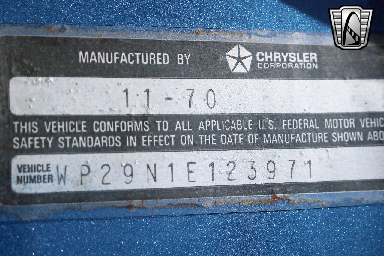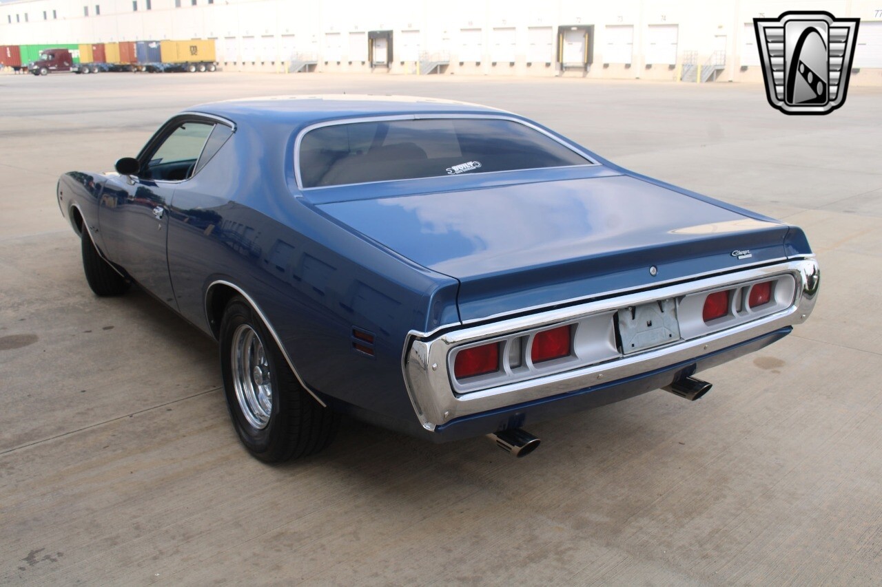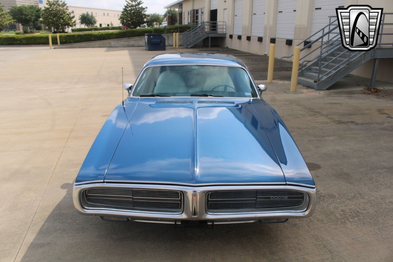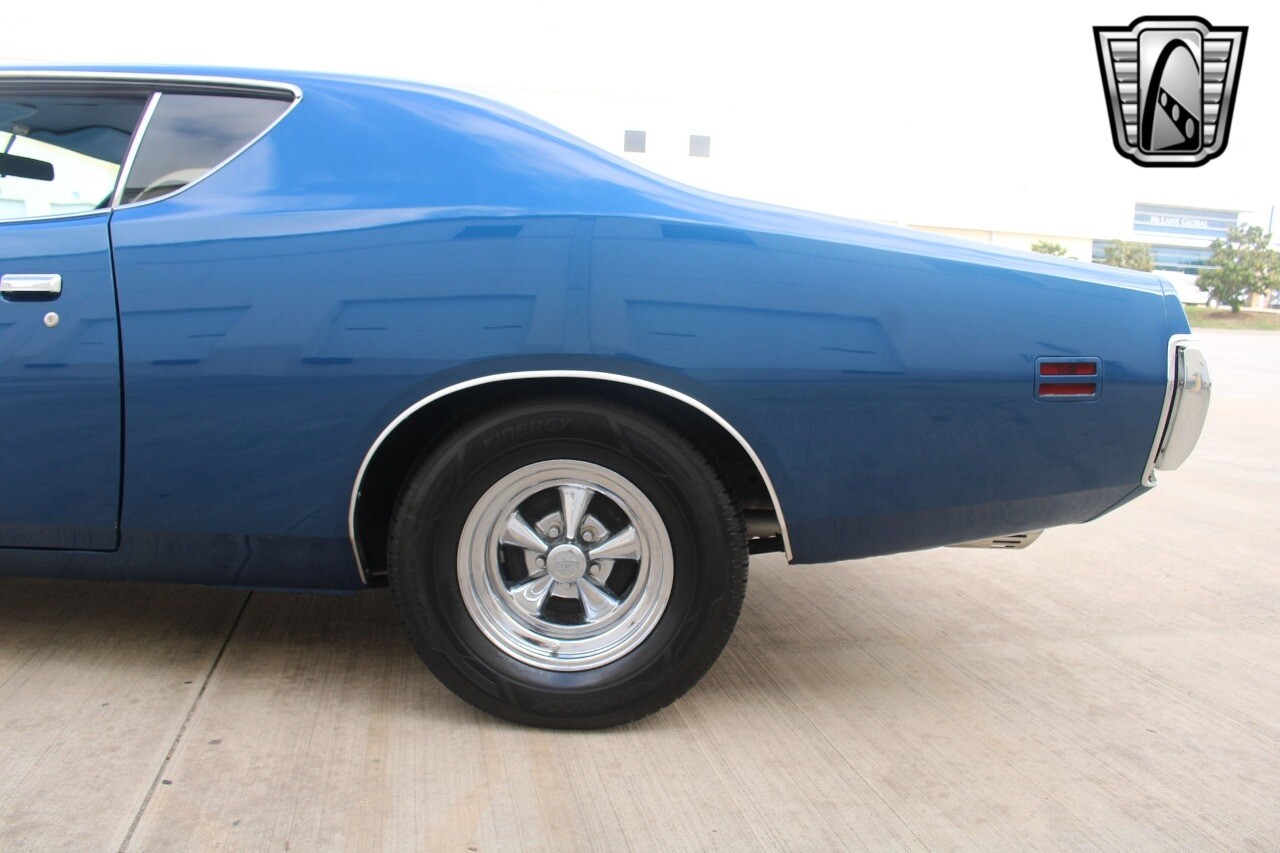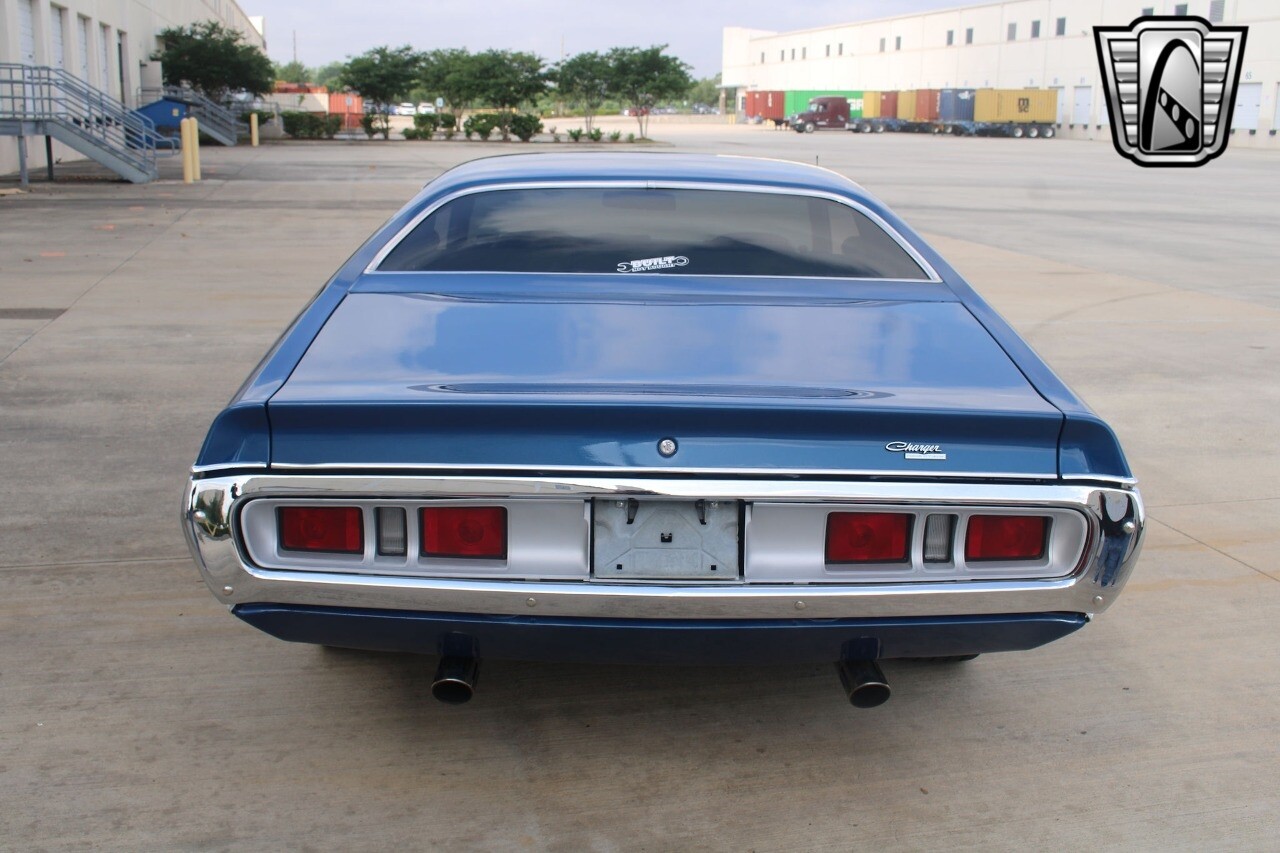 Gateway Classic Cars Houston Showroom is excited to present this gorgeous Dark Blue Metallic 1971 Dodge Charger for sale. Based on what the decoded fender tag indicates, this car is nearly the same as it was when it rolled off the manufacturing line in 1971! It appears to have been a special-order configuration, based on the "Sold Car" designation (code Y14) on the fender tag, since it's a base Charger with some premium options. For starters, the 300HP 383 CID V8 with 4BBL carburetor (codes N1E and E65) was not the standard engine in a base Charger, nor was the Heavy Duty Automatic Transmission (code D32). It's painted in its original Dark Blue Metallic (GB7), but the original (white) Vinyl Canopy Roof (V4W) is no longer present; nor are the original black Accent Stripes (V7X) or Belt Moldings (M31), but frankly, it presents a nice clean look without those items. Inside, the original (blue) Luxury Cloth/Vinyl Bench Seat (D3B5), along with the rear seat, have been recovered in an attractive white synthetic leather, which adds a nice contrast to the rest of the blue interior (and the blue exterior). In fact, we like the looks better than the original seats, and the full synthetic leather seating is easier to clean than the original vinyl-trimmed cloth seating. This car was ordered with factory air conditioning (H51), but the compressor has been replaced with a modern one, which supports R134a refrigerant. It will need a coolant recharge to get it blowing ice cold though. An electric pusher fan has been added in front of the A/C condenser and 26-inch radiator (code "26" on the fender tag), which aids in cooling for both components. In addition to those option codes, it was also ordered with dual exhaust (code N41) and the Noise Reduction Package (code N97), so someone ordered just what they wanted. This sleek Charger comes with Power Steering, Power Brakes, and Seatbelts, and is riding on some chromed Cragar mags that are shod with modern Radial Tires. [ omitted ]. This 1971 Dodge Charger's originality, clean looks, and unique features make it worth a look!.