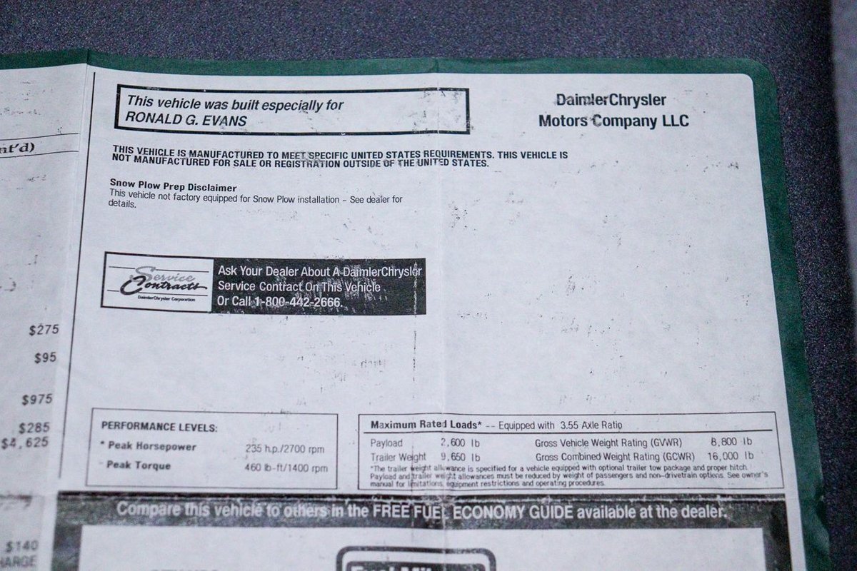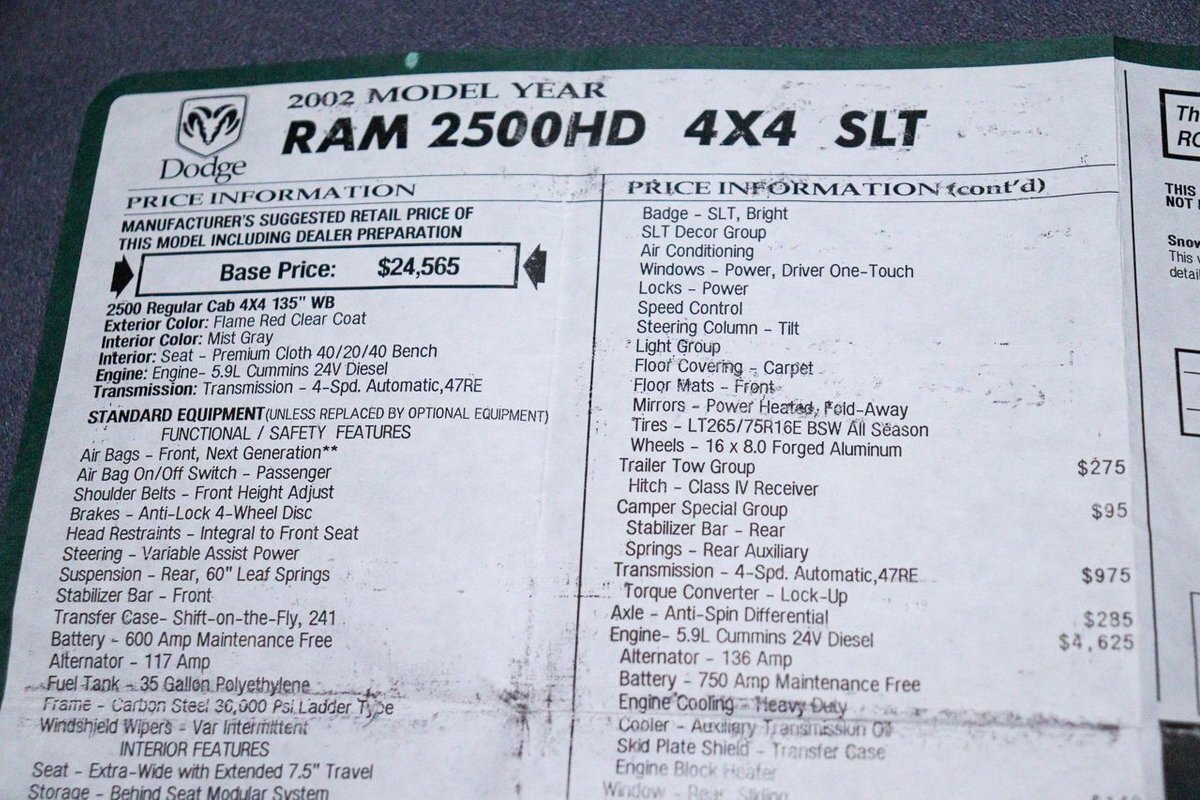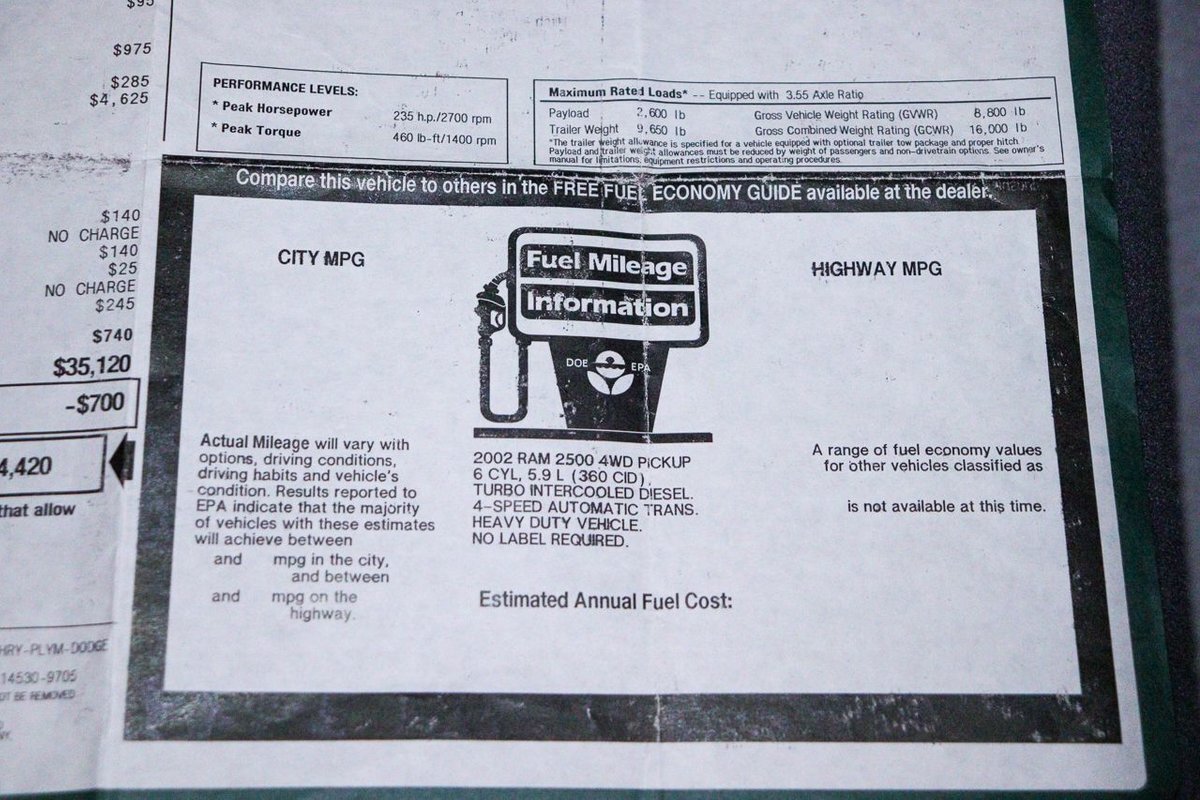 This 2002 Dodge Ram 2500HD 4x4 SLT with a 5.9L Cummins engine is more than just a truck-it's a testament to the enduring legacy of American craftsmanship and ingenuity. With its low mileage and impeccable condition, it's sure to turn heads and command respect wherever it goes. Don't miss your chance to own this extraordinary example of automotive excellence. Contact us today to schedule a test drive and experience the thrill of driving a true unicorn among trucks.