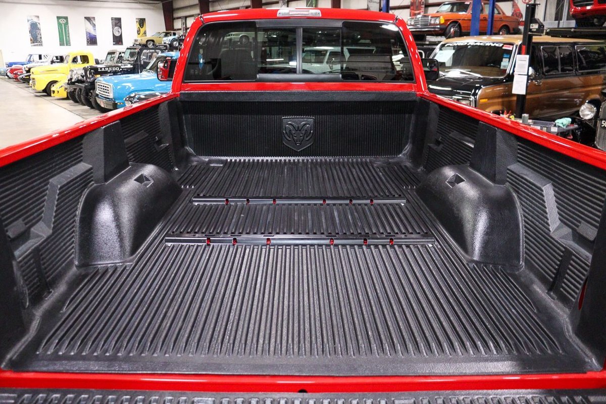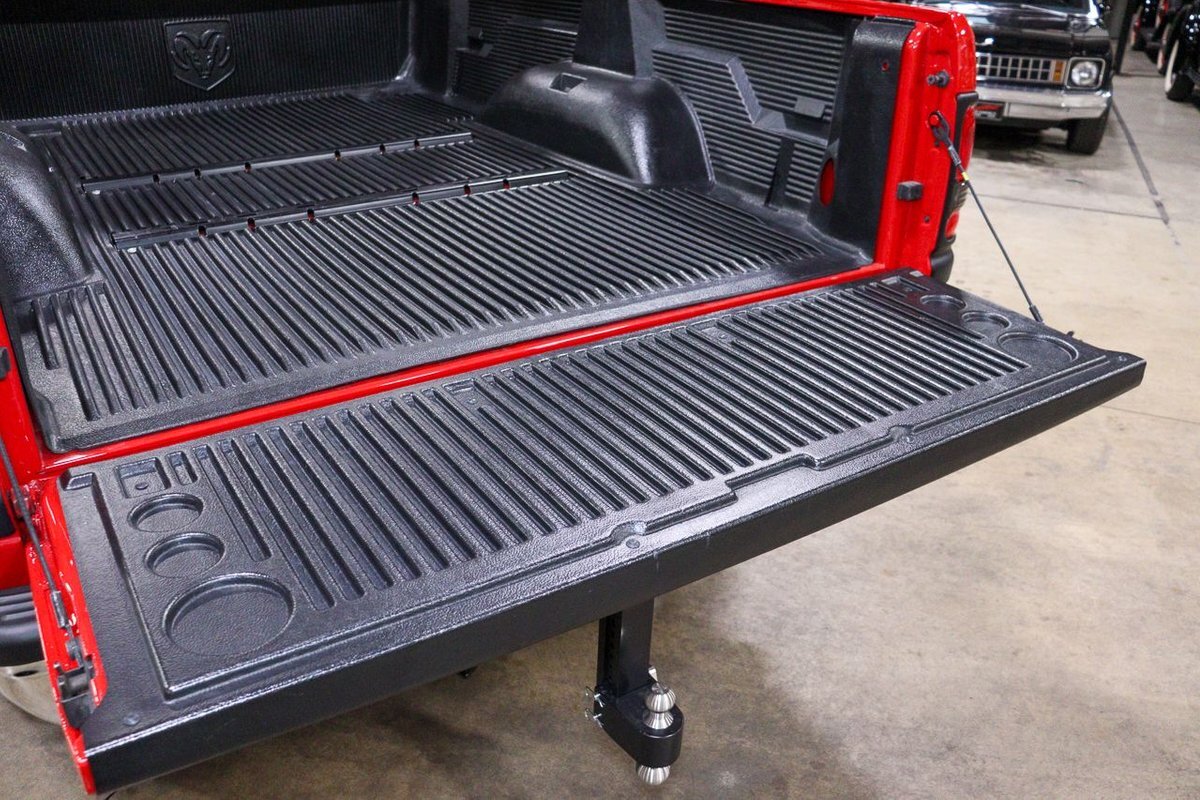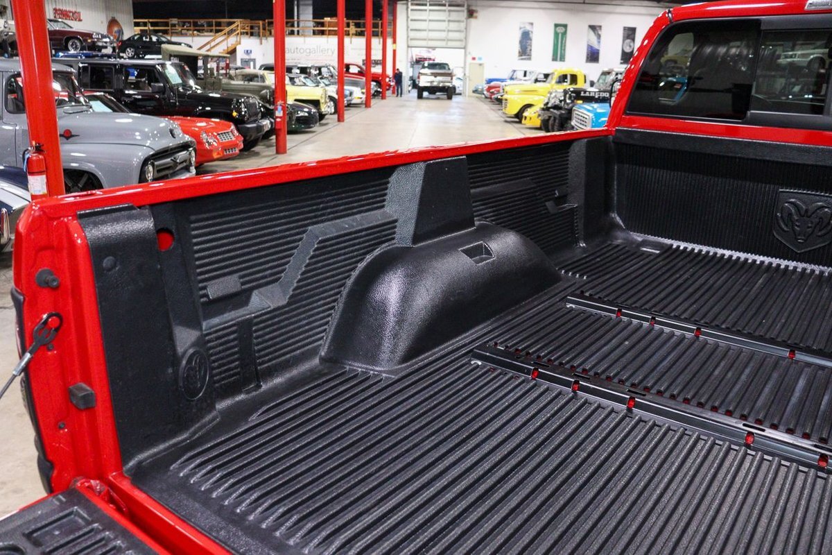 Finished in eye-catching Flame Red, this Ram commands attention wherever it goes. The vibrant color, paired with chrome accents and bold Ram badging, gives it a commanding presence on the road. Its muscular stance and robust build hint at the formidable power that lies beneath the hood.