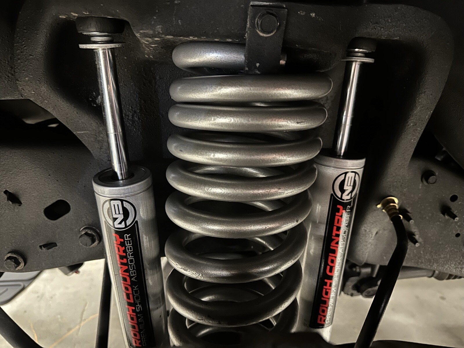 Suspension: 2.5 Rough Country Lift with Dual Front Shocks and Steering Stabilizer