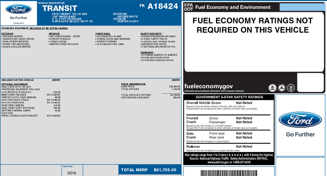 2015 Ford Transit 150 CLEAN TITLE Salvage, Rebuilder, Repairable A18424
