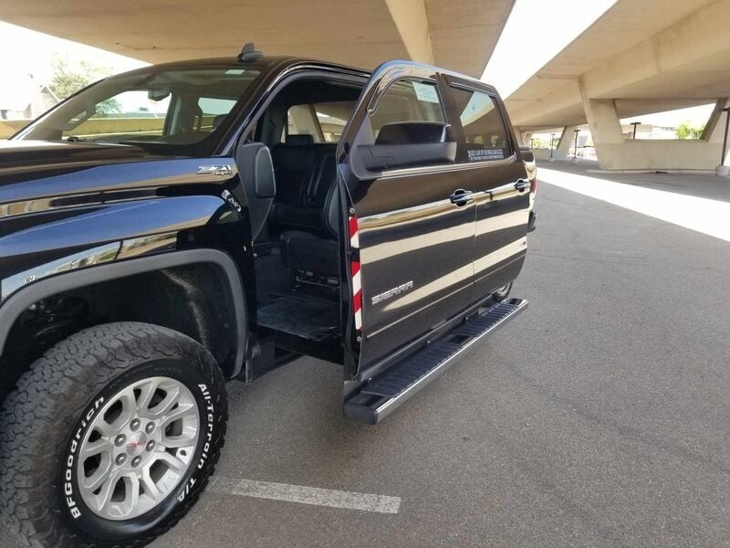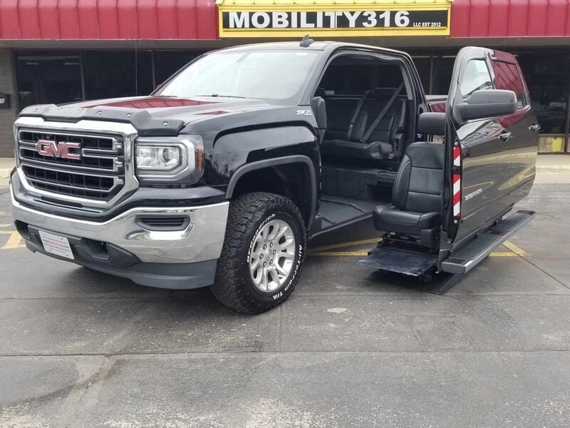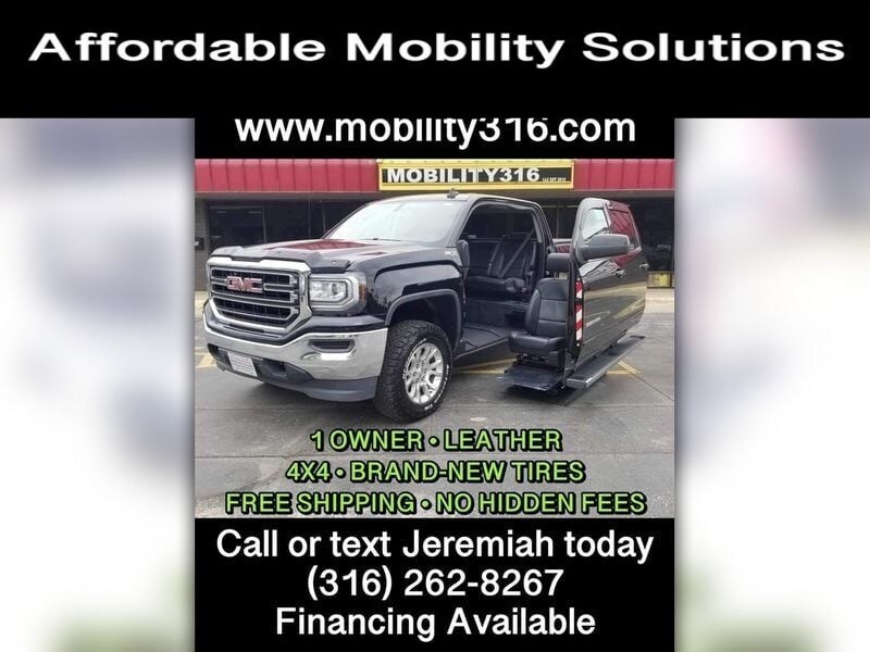 To view a video that features a walk around, interior view, and short test drive please copy and paste the following link: vLqBx3ASdQc Why choose this Sierra from MOBILITY316? - We have a detailed video so you know exactly what you are getting. - We don't have any hidden/bogus fees. - We offer FREE shipping anywhere in the lower 48 states. - We provide a free Carfax report with each one of our vehicles. - We take trade-ins even from across the country. - All our vehicles are inspected by an ASE certified mechanic. - Do NOT risk buying as is. Our truck comes with a 90 day/3k mile Drivetrain Plus warranty good anywhere in the U.S. - This 1 owner truck comes equipped with leather seats, brand new tires, a spare tire, 2 sets of keys, owners manuals, and road worthy tires. 2017 GMC Sierra 1500 SLE 4x4 VIN: 3GTU2MEC4HG141215 Miles: 18,296 Title: Clean title in hand. See Carfax report for more details. FREE SHIPPING!! Please view the following video link for information on how our free shipping works: Conversion: This truck has a driver-side entry power lift. The driver side front and rear door extend out from the truck together (as one piece) and then the driver seat lowers to the ground to allow wheelchair access. (controlled by remote or a switch on interior driver door panel) Specifications: - 29 wide platform - 52 doorway height - 57 interior height - 800lbs weight capacity Financing: We can send you a credit application to your email, send you a link to apply online, or mail you one. - No down payment required with approved credit. - Always simple interest loans with no prepayment penalties. - Terms up to 10 years (120 months) to keep your payments low. - Credit scores as low as 520. Please be sure to make an appointment with Jeremiah at 855-202-9859 to view any of our vehicles. Please note that we can only accept the following forms of payment: - Cash - ACH Bank Transfer (Free to you and me.) - Wire Transfer **$20 fee added to send a wire, use an ACH :) - Certified Bank Check - Credit or debit card (processing fees will apply) **We do not guarantee extra keys, books, floor mats, spare tires/tools, or navigation discs with every vehicle. We take very detailed videos and pictures that show exactly what the vehicle comes with, and if we have them, they will be in the vehicle upon delivery. All buyers registering vehicles out of state will be responsible for their local taxes and any fees charged by their state or county. Mobility Van Handicap Van Ramp Van Mobility SUV Handicap Accessible Vehicle Wheelchair Accessible Vehicle Handicap SUV Handicap Handicapped Disability Wheelchair Van Medical Ramp NEMT NEMT Van Wheelchair Accessible Van Handicapped Van Handicapped Accessible Van Mobility Truck Handicap Truck Ramp Truck Wheelchair Truck Wheelchair Accessible Truck Handicapped Truck Handicapped Accessible Truck