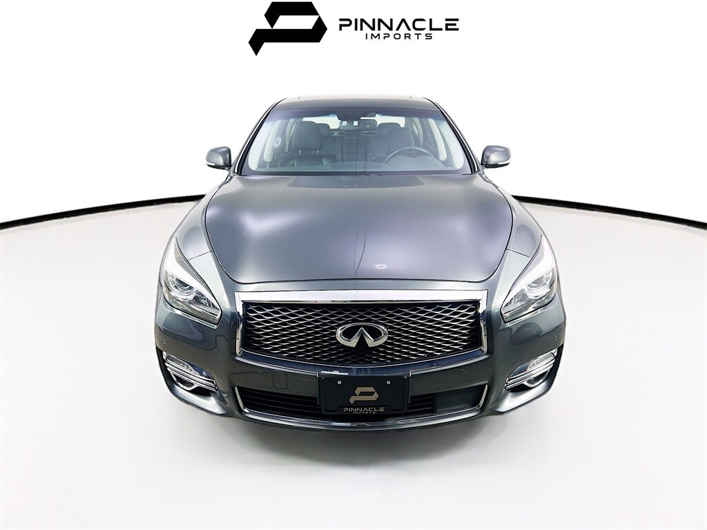 * Revel in the thrill of inspirationpowerfully, marvelously realized. Every time you sit behind the wheel of the Q70, you'll experience exhilaration as a potent, desirable and eternally new emotion. You'll find it in the passion INFINITI polishes into every curve and stitch into every seam, immersing you in comfort and sophistication. You'll feel it in the power of either the 5.6L V8 or 330hp 3.7L V6, the electric motor in Hybrid model paired to a V6 gives a 31 mpg EPA combined rating with 360hp. You'll know it for the world's first Blind Spot Intervention System and other progressive technologies such as Intelligent All-Wheel Drive, Active Noise Control, and up to the date traffic and weather information. As you approach the Q70, it senses your I-Key and responds with the radiant glow of sequenced exterior and interior lights. Each emits a soft, ambient glow to welcome you back to the warm, secure cabin. To make your entrance as hospitable as possible, the enhanced I-Key will also remember driver's seat, steering wheel, and side-view mirror memory positions, and the last used audio, climate control, and navigation system settings (if so equipped). The Q70's Sports Package provides performance enhancements that heighten the driving experience. 4-Wheel Active Steer and sport-tuned suspension provide agile response and handling. Solid magnesium paddle shifters maximize feedback while robust sport brakes improve stopping power. Aggressive front fascia and grille visually express performance and racing-inspired, deep-bolstered seats cradle the driver making the Q70 more inspiring than your typical sedan. The Q70L model also adds nearly 6 inches of additional legroom in the rear seat adding comfort for your passengers. Source: The Manufacturer Summary