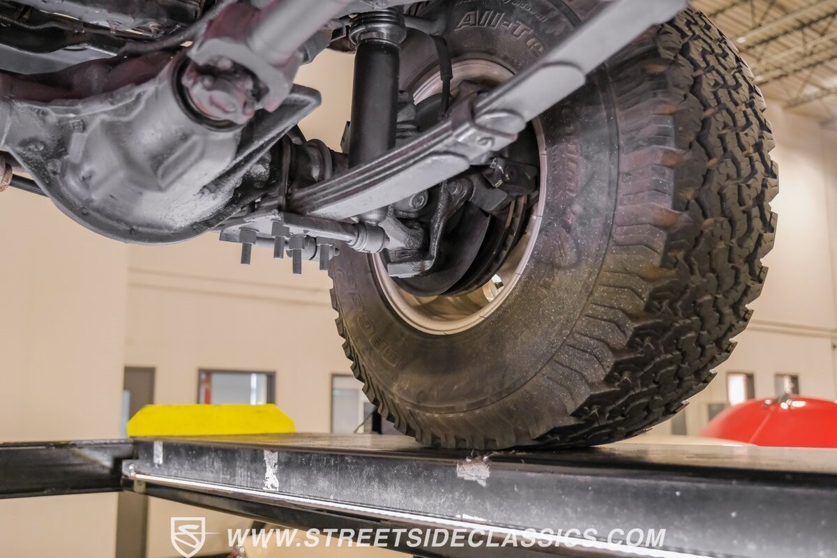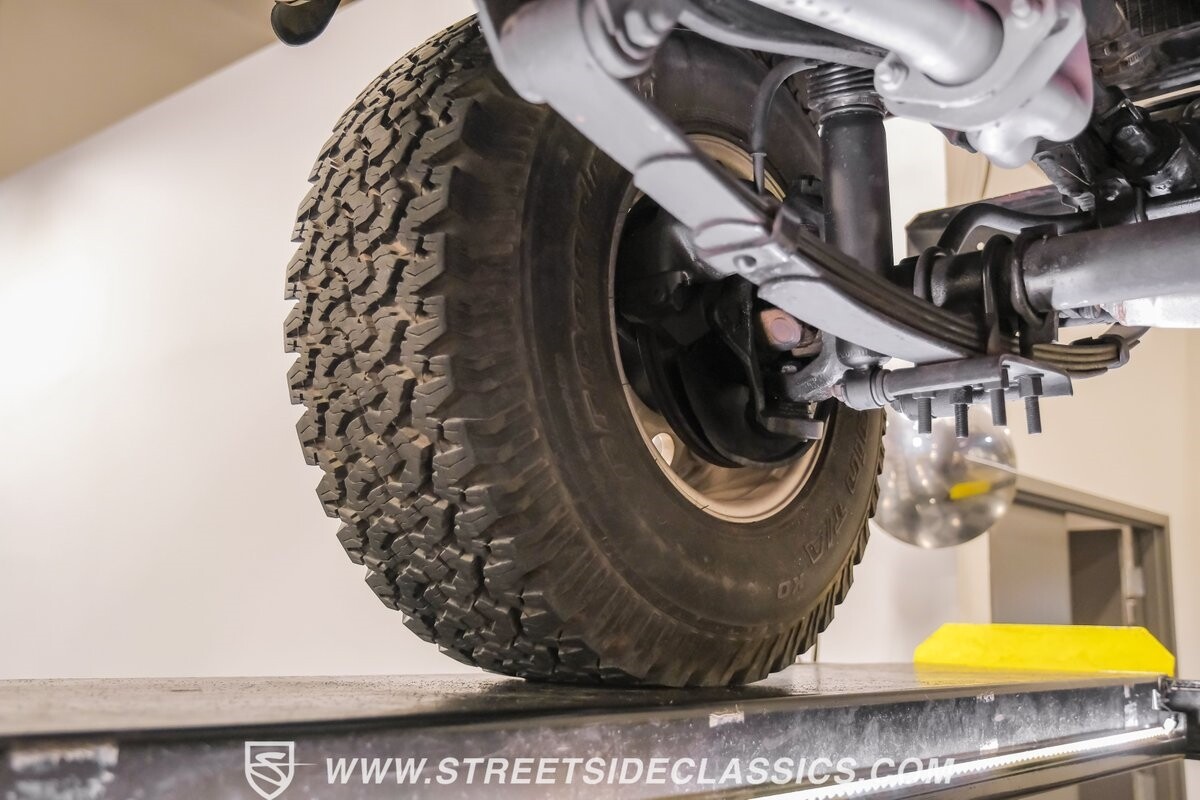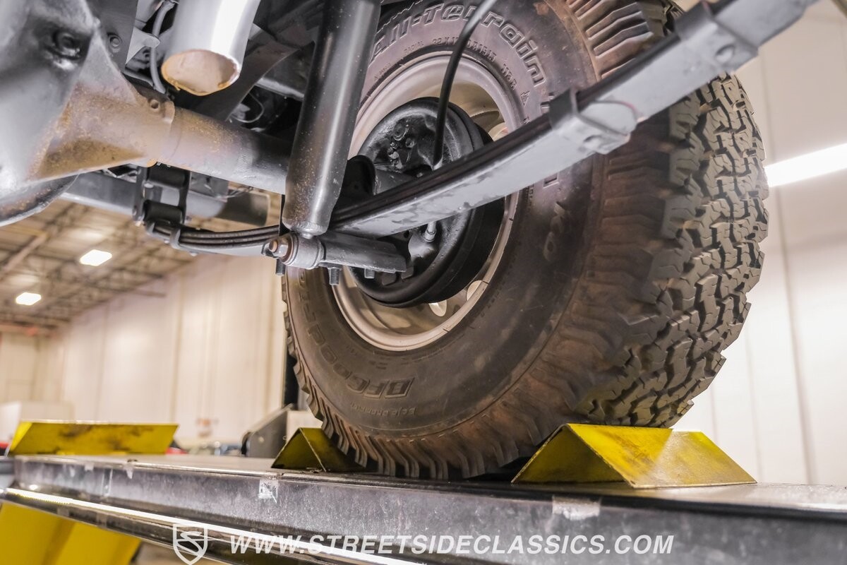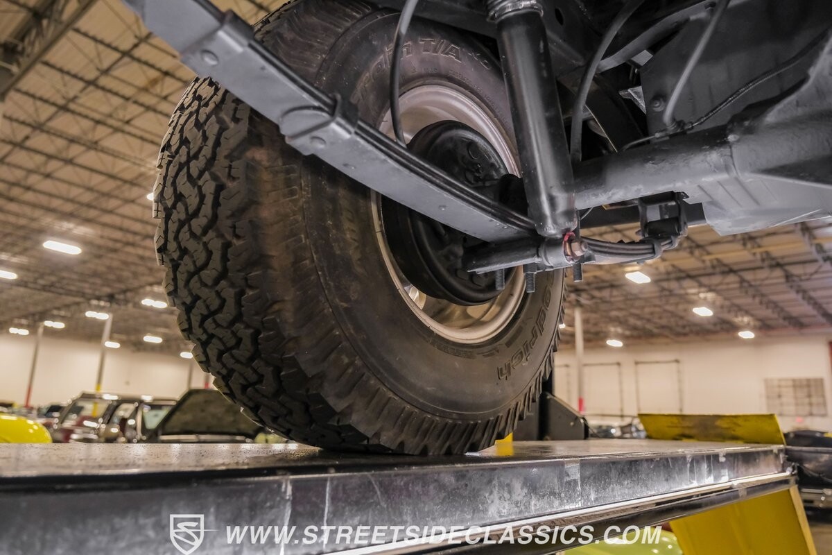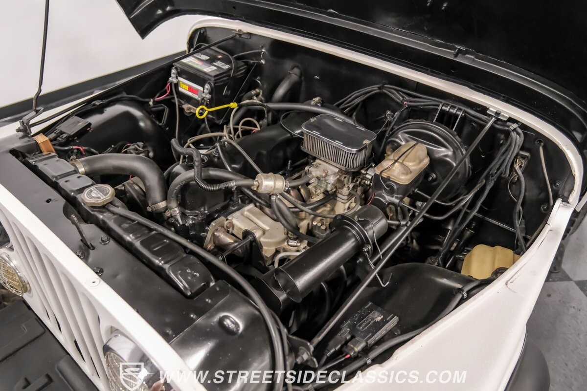 It packs a trusty 258 cubic inch inline-6 engine, a staple of Jeep reliability that breathes life through long-tube headers and a throaty, upgraded exhaust. This powerplant works seamlessly with a 4-speed manual transmission, giving you full command over its potential. An upgraded twin-stick transfer case ensures you have the right gear for any terrain. Power steering makes maneuvering a breeze, even with those beefy tires. The dependable Dana 30 front and AMC 20 rear axles handle the rough stuff, and power front disc brakes bring it all to a confident halt. Throw in a new battery for worry-free starts, and this Jeep is ready to answer the call of adventure.