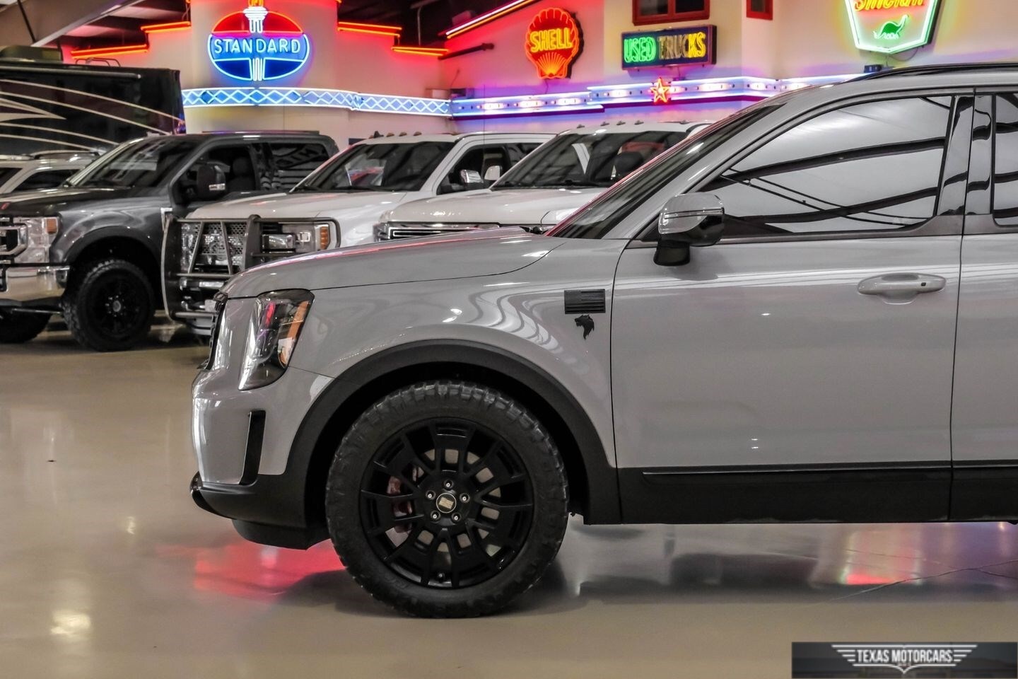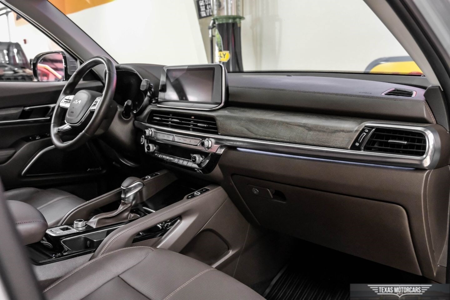 Behold the epitome of modern luxury and performance with the 2022 Kia Telluride SX AWD, a masterpiece in automotive design and functionality. Cloaked in a sophisticated Wolf Gray exterior, this stunning SUV breaks necks with its bold Nightfall Edition accents and sleek painted aluminum alloy wheels. The allure continues inside with sumptuous brown leather-trimmed upholstery that emodies elegance and comfort, providing an indulgent experience on every drive.