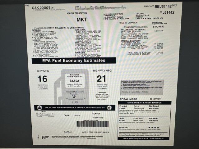 CLEAN CARFAX, VERY WELL MAINTAINED AND SERVICED, NON SMOKER... THIS LINCOLN MKT IS IN BEAUTIFUL CONDITION... ALL 4 TIRES ARE BRAND NEW!!! OIL CHANGES ALWAYS DONE WITH FULL SYNTHETIC OIL... IT TRULY RUNS AND DRIVES BEAUTIFULLY!!! FULLY LOADED WITH OPTIONS.... **WINDOW STICKER AVAILABLE IN PHOTOS** 7 PASSENGER, With 3rd Row Seating. AWD, Navigation, Back Up Camera , Keyless Start , Leather Interior , Dual Moonroof , Ice Cold A/C , Heated seats , A/C Seats , 3rd Row Seating , Power Seats , ABS Brakes , Alloy Wheels , Park Distance Control , Tilt Wheel , Cruise control , And Much More.... CLICK VIEW ALL IMAGES TO SEE OVER 50 PHOTOS ! My name Is Dennis Contact me at631-731-1562. I will be happy to help.