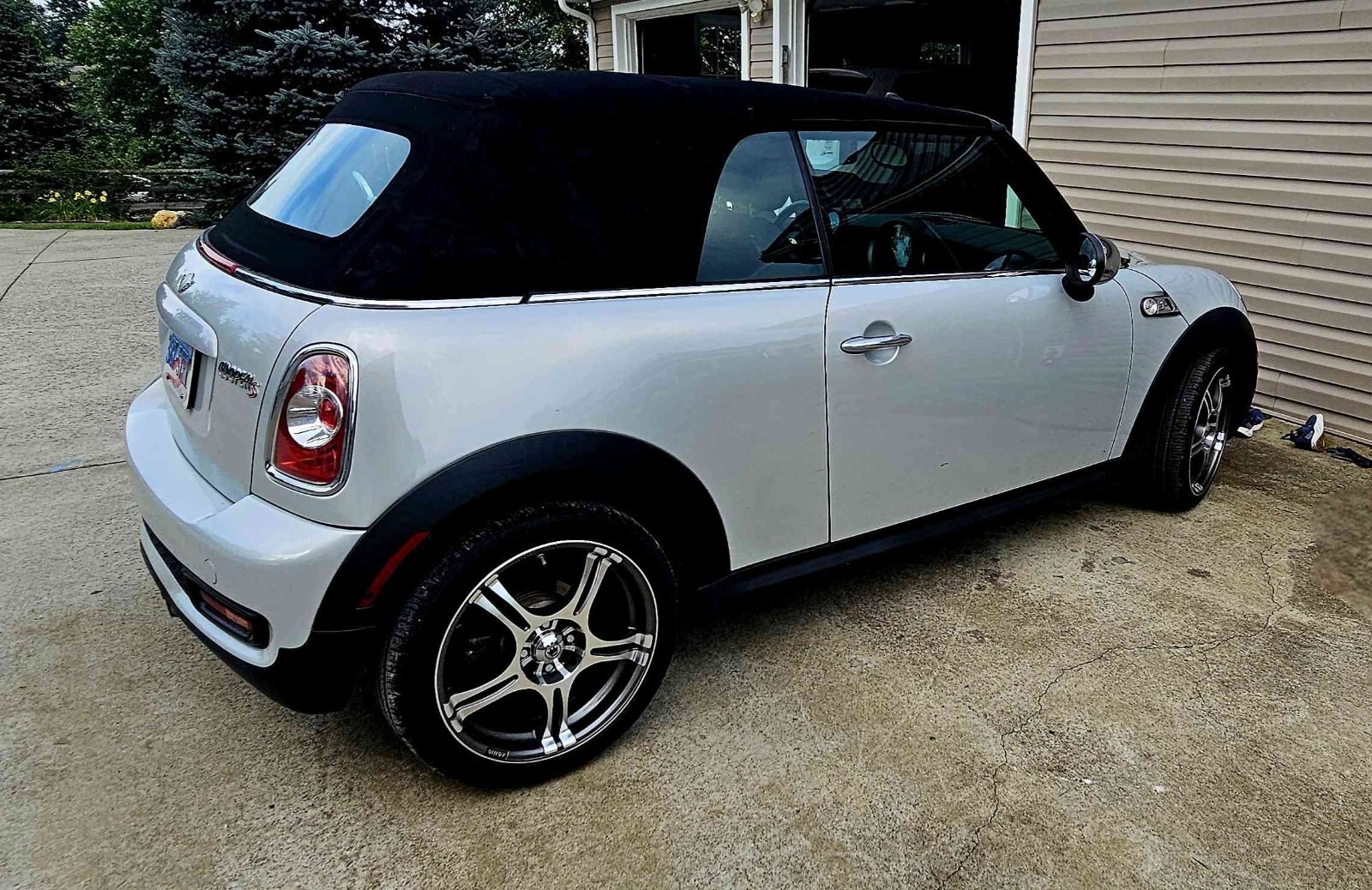 We've had this car for more than five years and put on about 100k miles. It's time to let this one go and upgrade to a newer Mini. It has some minor defects in the trim and a 4 inch crack in the driver side rear bumper from backing into another car years ago (see last photo). The tires and rims are brand new (less than a couple hundred miles). The interior is in very good shape. The car runs smoothly and powerfully always (the check-engine light comes on and off occasionally, but neither we nor the dealership can figure it out. It does not affect how it drives). Handling on this car, as with any Mini, is so fun, especially on a small winding road! The top is in fairly good shape, no leaks at all.