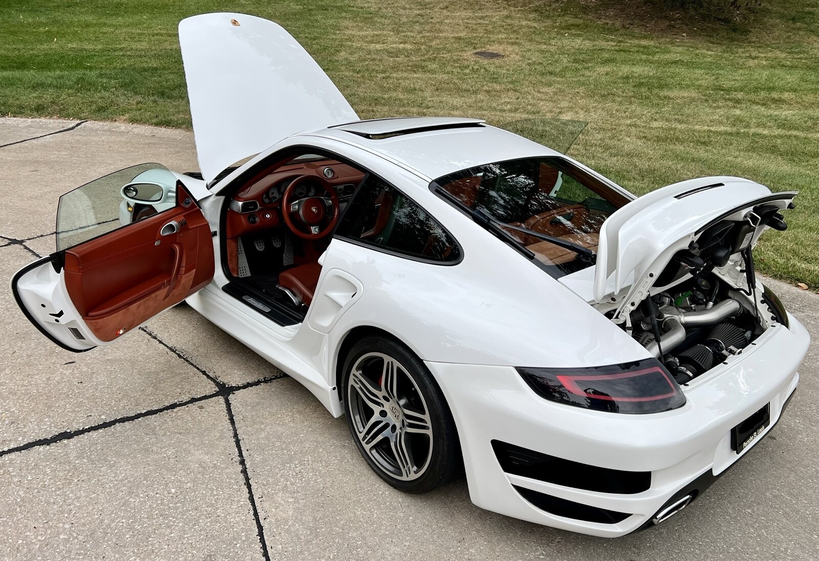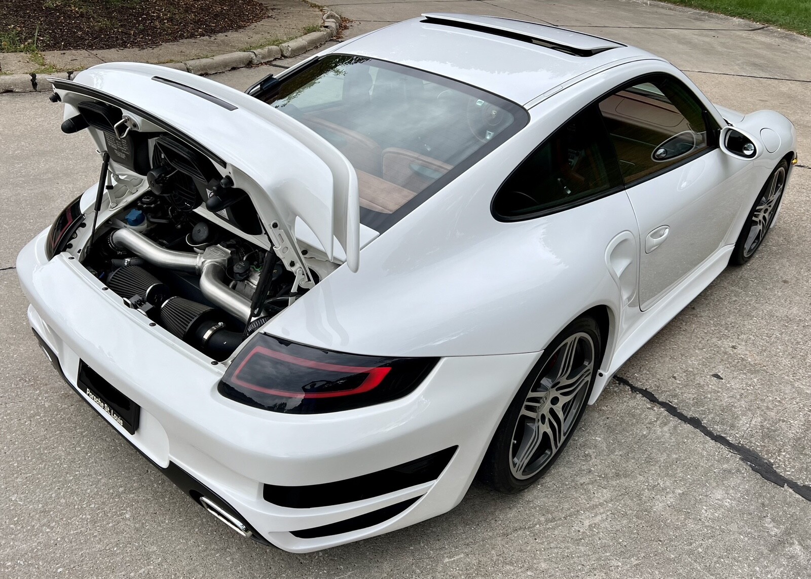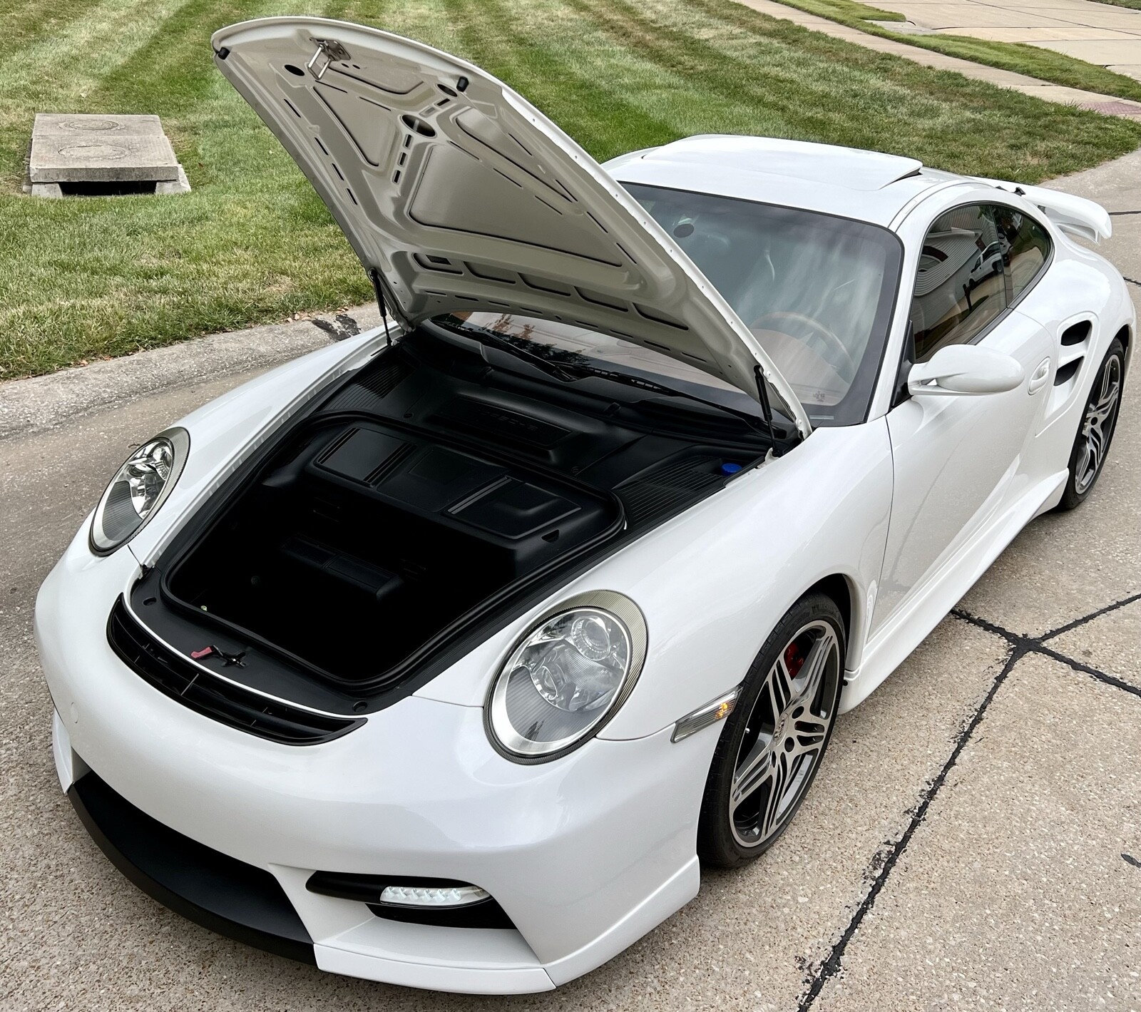 Equipped with a 3.6-liter twin-turbocharged Mezger flat-six engine, this 997 Turbo offers an output of up to 480 HP and 660 lb.-ft of torque stock. Power is distributed to all four wheels through Porsche's all-wheel-drive system and a 6-speed manual transmission with a factory-optioned limited-slip differential. Previous service items include the replacement of a power steering line, the installation of a new serpentine belt, and tires, new CV boots fitted. The annual maintenance and oil service were carried out by an authorized Porsche dealer at the end of April 2023. This service also included the installation of factory Porsche struts, bump stops, and pads, a four-wheel alignment, and the fitment of new tire pressure monitoring sensors (TPMS).