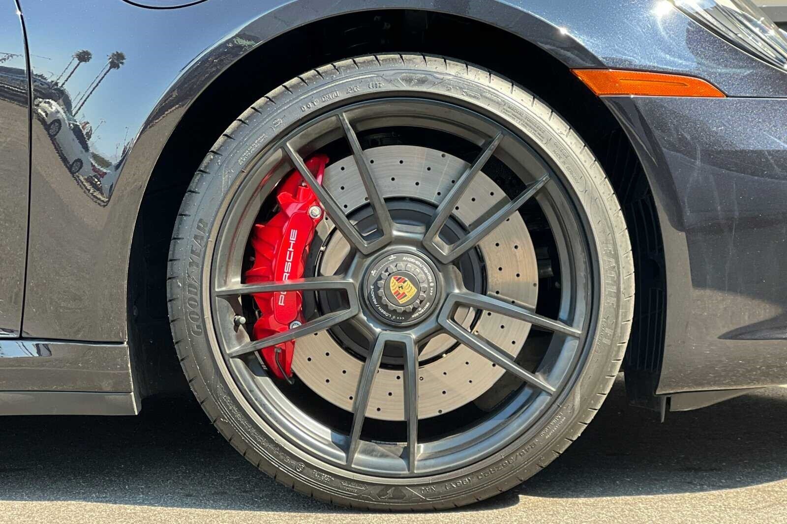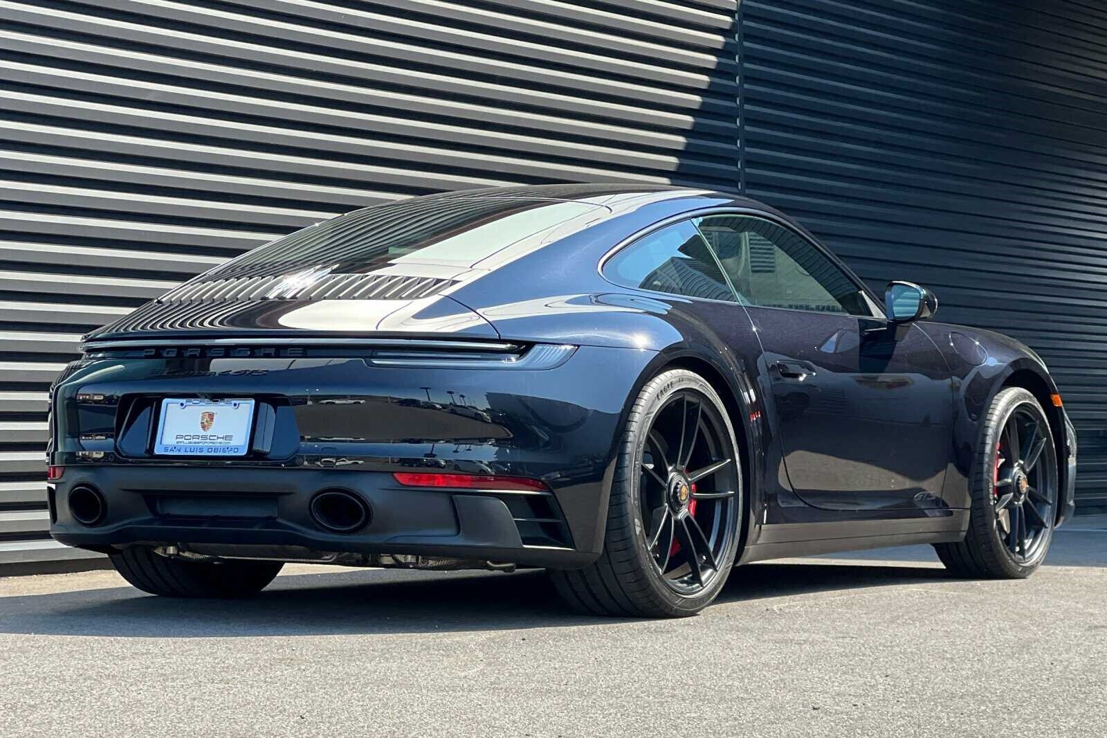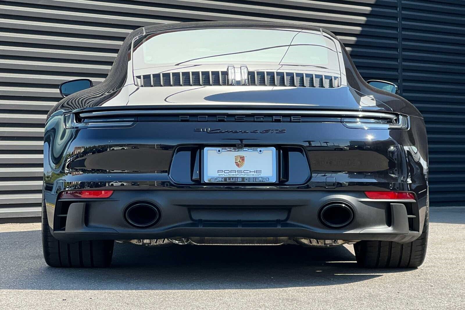 This Porsche San Luis Obispo 2023 Black Porsche 911 Carrera 4 GTS AWD is well equipped and includes these features and benefits: 18-Way Adaptive Sport Seats Plus w/Memory Package, Premium Package (Ambient Lighting, BOSE Surround Sound System, Lane Change Assist (LCA), Power Folding Exterior Mirrors, and Surround View), Storage Package, Porsche Approved Certified Pre-Owned Certified, AWD, Front Axle Lift System, 4-Wheel Disc Brakes, ABS brakes, Adaptive suspension, Air Conditioning, Alloy wheels, Auto-dimming door mirrors, Auto-dimming Rear-View mirror, Automatic temperature control, Brake assist, Bumpers: body-color, Delay-off headlights, Driver door bin, Driver vanity mirror, Dual front impact airbags, Dual front side impact airbags, Electronic Stability Control, Exterior Parking Camera Rear, Four wheel independent suspension, Front anti-roll bar, Front Bucket Seats, Front Center Armrest, Front dual zone A/C, Front reading lights, Fully automatic headlights, Garage door transmitter: HomeLink, Heated door mirrors, Illuminated entry, Low tire pressure warning, Navigation system: Porsche Communication Management (PCM), Occupant sensing airbag, Outside temperature display, Overhead airbag, Overhead console, Passenger door bin, Passenger vanity mirror, Porsche Communication Management, Power door mirrors, Power driver seat, Power passenger seat, Power steering, Power windows, Radio data system, Rain sensing wipers, Rear anti-roll bar, Rear fog lights, Rear window defroster, Remote keyless entry, Security system, Speed control, Spoiler, Sport steering wheel, Steering wheel mounted audio controls, Tachometer, Telescoping steering wheel, Tilt steering wheel, Traction control, Trip computer, and Variably intermittent wipers. 360 Camera, Active Parking Assist, Adaptive Cruise Control, Adaptive Headlights, Android Auto, Apple Carplay, Automatic Headlights, Blind-Spot Monitors, Bluetooth, Collision Avoidance System, Collision Warning Alert System, Drowsiness Alert, Heads-Up Display, Heated/Cooled Seats, Keyless Access w/Push Button Start, Lane Keeping Assist, Navigation, Smartphone App Integration, Touchscreen Controls, Voice Recognition, Wi-Fi Hotspot, AWD, 18-Way Adaptive Sport Seats Plus w/Memory Package, Ambient Lighting, BOSE Surround Sound System, Front Axle Lift System, Lane Change Assist (LCA), Power Folding Exterior Mirrors, Premium Package, Storage Package, Surround View.