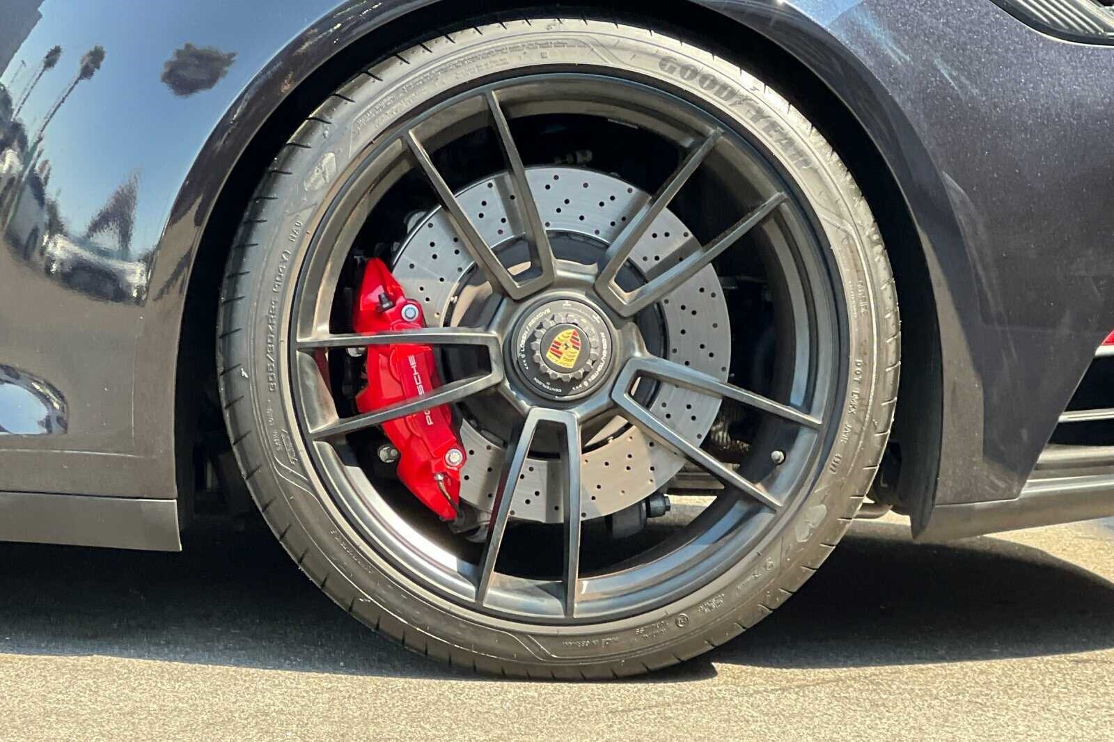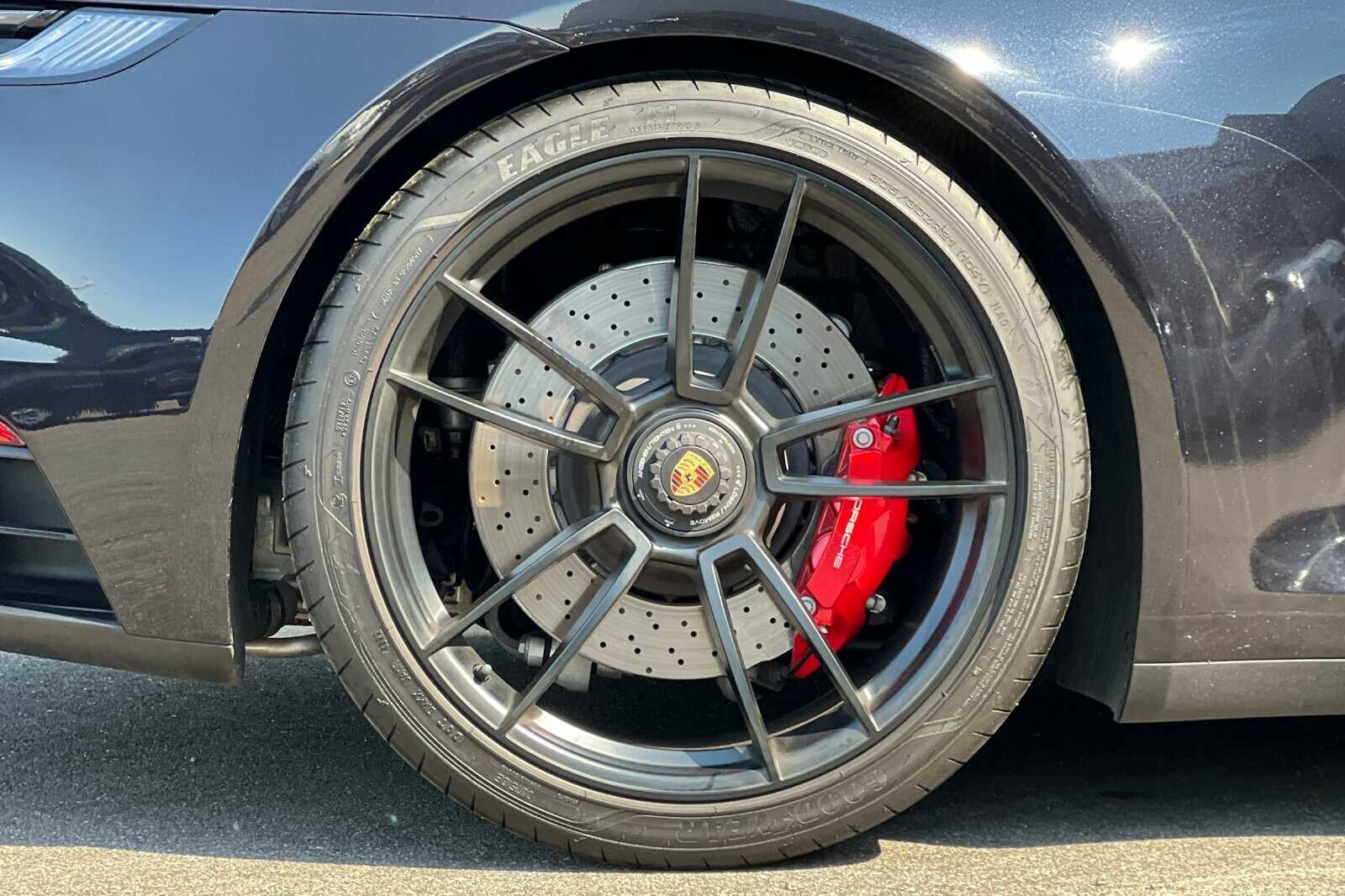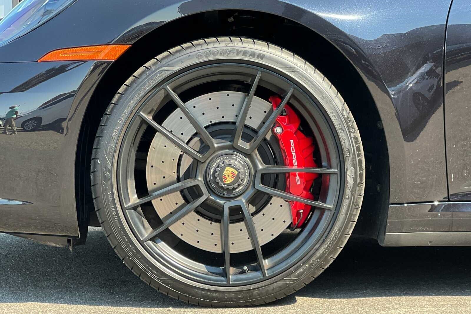 This Porsche San Luis Obispo 2023 Black Porsche 911 Carrera 4 GTS AWD is well equipped and includes these features and benefits: 18-Way Adaptive Sport Seats Plus w/Memory Package, Premium Package (Ambient Lighting, BOSE Surround Sound System, Lane Change Assist (LCA), Power Folding Exterior Mirrors, and Surround View), Storage Package, Porsche Approved Certified Pre-Owned Certified, AWD, Front Axle Lift System, 4-Wheel Disc Brakes, ABS brakes, Adaptive suspension, Air Conditioning, Alloy wheels, Auto-dimming door mirrors, Auto-dimming Rear-View mirror, Automatic temperature control, Brake assist, Bumpers: body-color, Delay-off headlights, Driver door bin, Driver vanity mirror, Dual front impact airbags, Dual front side impact airbags, Electronic Stability Control, Exterior Parking Camera Rear, Four wheel independent suspension, Front anti-roll bar, Front Bucket Seats, Front Center Armrest, Front dual zone A/C, Front reading lights, Fully automatic headlights, Garage door transmitter: HomeLink, Heated door mirrors, Illuminated entry, Low tire pressure warning, Navigation system: Porsche Communication Management (PCM), Occupant sensing airbag, Outside temperature display, Overhead airbag, Overhead console, Passenger door bin, Passenger vanity mirror, Porsche Communication Management, Power door mirrors, Power driver seat, Power passenger seat, Power steering, Power windows, Radio data system, Rain sensing wipers, Rear anti-roll bar, Rear fog lights, Rear window defroster, Remote keyless entry, Security system, Speed control, Spoiler, Sport steering wheel, Steering wheel mounted audio controls, Tachometer, Telescoping steering wheel, Tilt steering wheel, Traction control, Trip computer, and Variably intermittent wipers. 360 Camera, Active Parking Assist, Adaptive Cruise Control, Adaptive Headlights, Android Auto, Apple Carplay, Automatic Headlights, Blind-Spot Monitors, Bluetooth, Collision Avoidance System, Collision Warning Alert System, Drowsiness Alert, Heads-Up Display, Heated/Cooled Seats, Keyless Access w/Push Button Start, Lane Keeping Assist, Navigation, Smartphone App Integration, Touchscreen Controls, Voice Recognition, Wi-Fi Hotspot, AWD, 18-Way Adaptive Sport Seats Plus w/Memory Package, Ambient Lighting, BOSE Surround Sound System, Front Axle Lift System, Lane Change Assist (LCA), Power Folding Exterior Mirrors, Premium Package, Storage Package, Surround View.