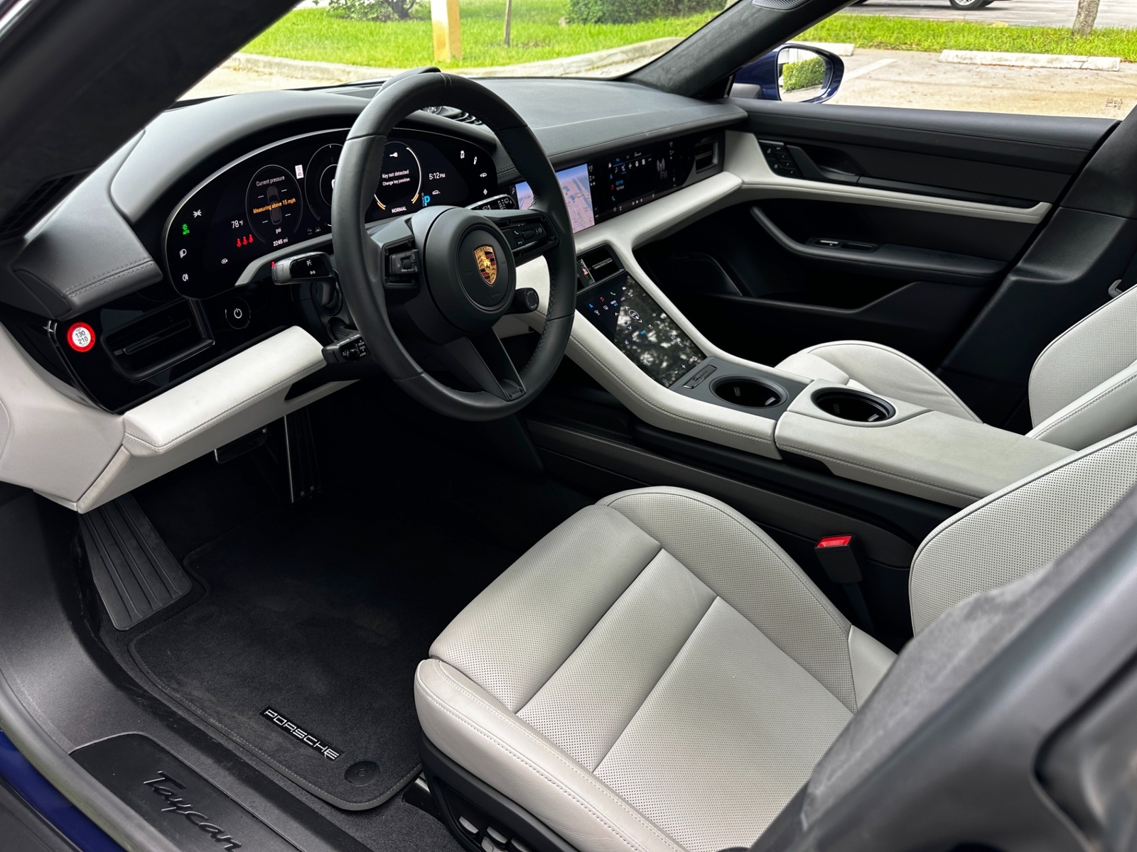 The Sport Turismo shares its sleek, aerodynamic design with the Taycan sedan but adds a more spacious rear, offering increased cargo space without compromising on style. This model is perfect for enthusiasts who demand the exhilarating performance of a Porsche EV and the versatility of a wagon. The Sport Turismos design is more road-focused, with a lower ride height than the Cross Turismo, optimizing aerodynamics and handling on paved surfaces.
