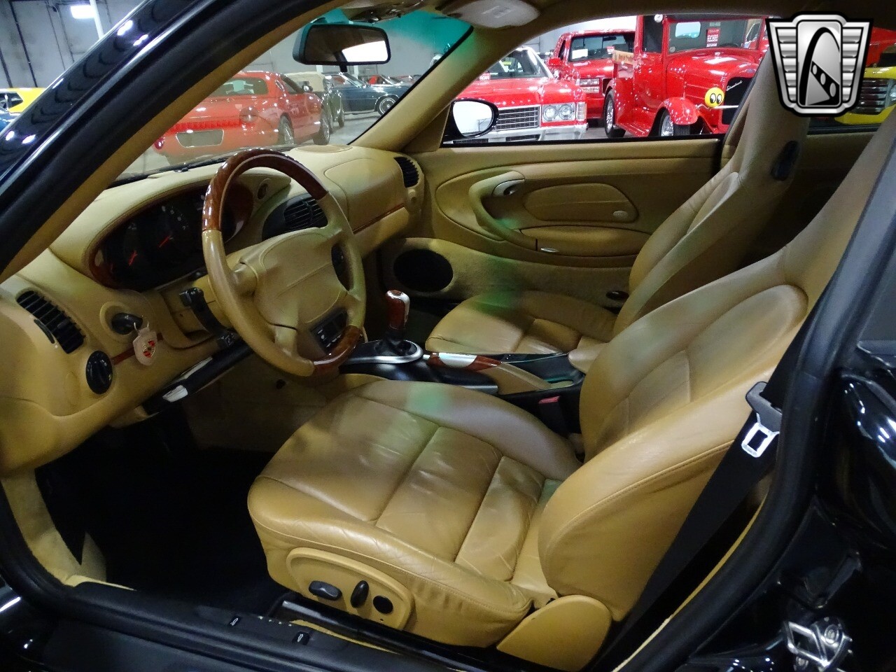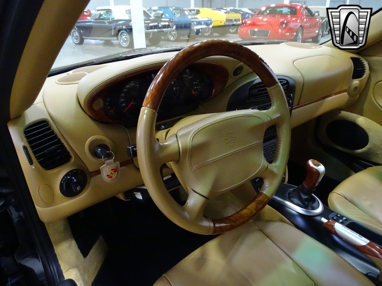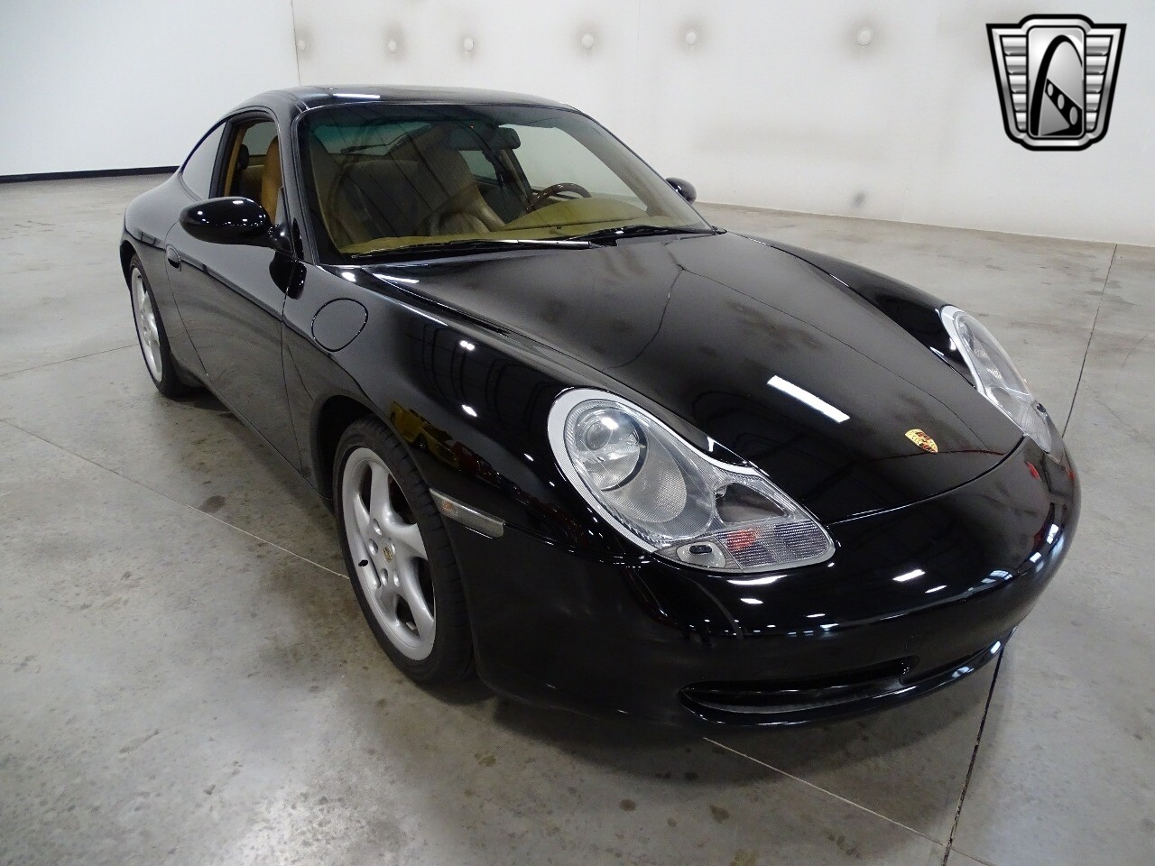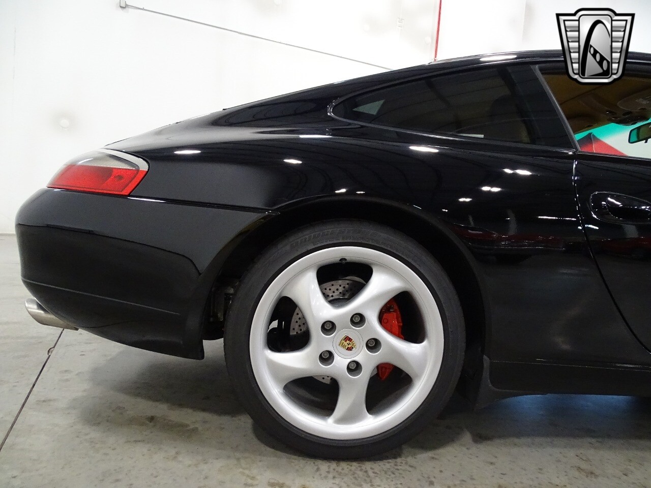 This 2001 Porsche 911 Porsche Carrera 4 Coupe' is painted in tuxedo black accented with factory 18" 993 Turbo-look five-spoke alloy wheels. The Savannah Biege interior is nicely appointed with glove soft leather seats, dashboard, and door panels. To add warmth, light buff maple wood is applied to the dash, gear shift knob, steering wheel, and a handbrake handle. Comfort features include air conditioning, cruise control, power windows, power locks, power heated seats w/ memory drivers' seat, power mirrors, rear window defogger, anti-theft system, Becker Porsche CDR-220 Am/FM/cd radio, and a Sunroof! Additional features include anti-lock four-wheel disk brakes, power steering, and Litronic (xenon) headlamps w/ washers..