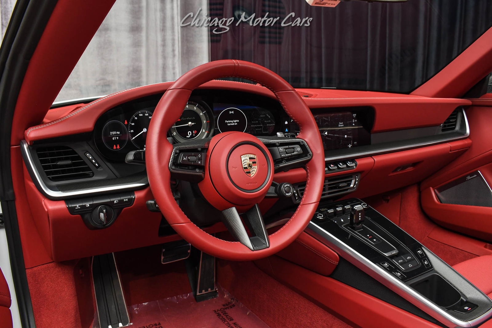 Carrera White Metallic Exterior over Bordeaux Red Leather Interior w/Chalk Stitching