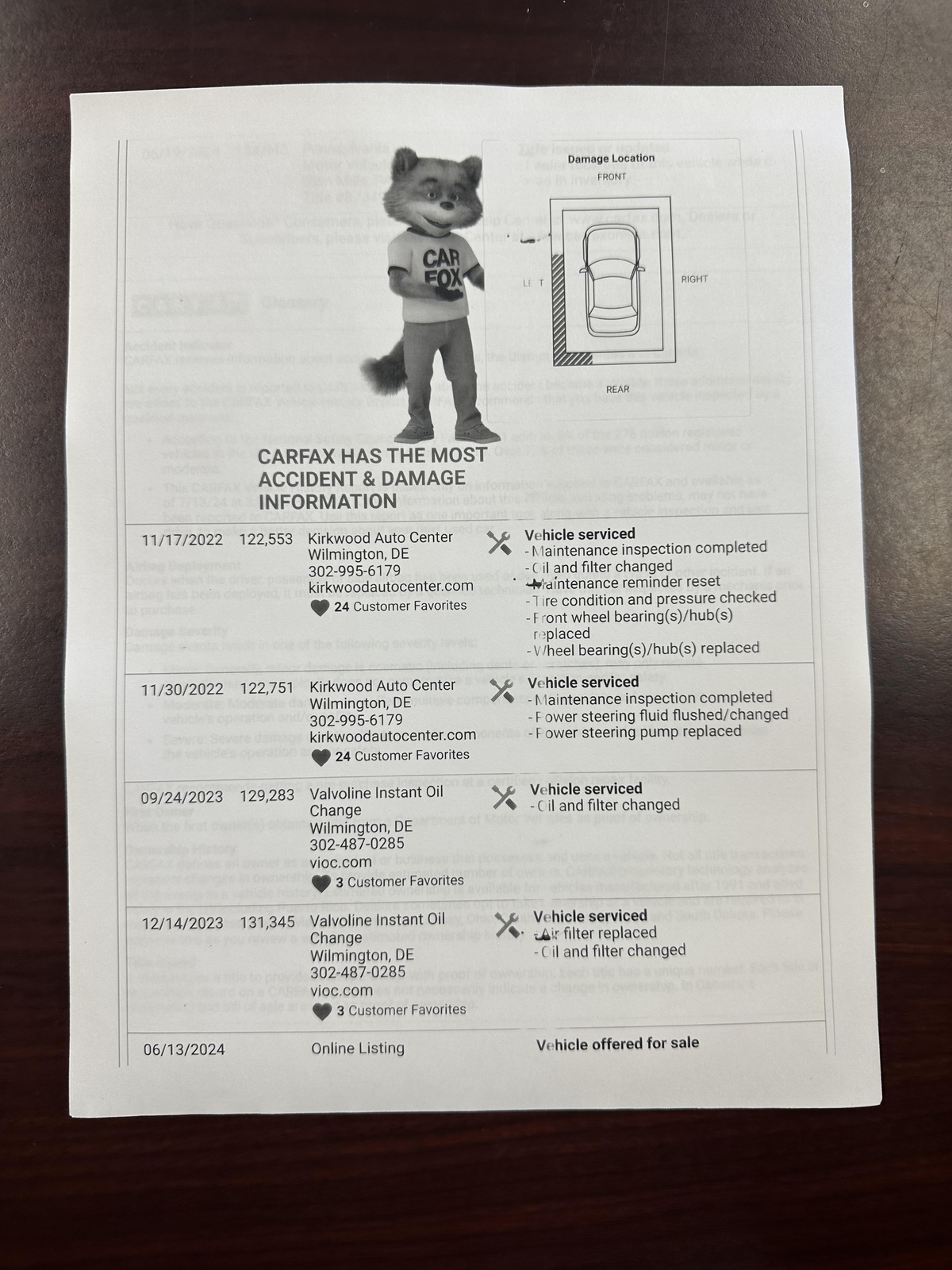 VEHICLE WITH HIGH MILES. WE RECOMMEND