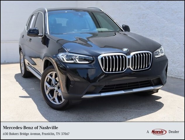 Our athletic 2022 BMW X3 xDrive30i in Black Sapphire Metallic is for those who heed adventures call! Motivated by a TurboCharged 2.0 Liter TwinPower 4 Cylinder generating 248hp matched to an 8 Speed Automatic transmission with launch control so you can sprint to 60mph in a brisk 6 seconds. This All Wheel Drive SUV also combines responsive handling and trail-ready capability, and it can return nearly 29mpg on the highway. Riding on a sporty stance, our X3 gets your attention with an iconic BMW grille, LED lighting, fog lamps, a power tailgate, satin aluminum roof rails, chrome exhaust tips, a panoramic sunroof, and 19-inch wheels.Premium style and versatility come together in our xDrive30i cabin, where you can take advantage of heated SensaTec front sport seats, easy-to-fold rear seats, a heatd leather-wrapped steering wheel, automatic tri-zone climate control, and luxe details like genuine wood trim. Leverage BMW's Live Cockpit Pro for the digital advantages of a 10.25 central display, full-color navigation, Apple CarPlay, WiFi compatibility, Bluetooth, and a 12-speaker HiFi sound system.BMW safeguards this Sports Activity Vehicle with smart safety measures such as a backup camera, head-up display, automatic emergency braking, forward collision warning, and more! Our X3 xDrive30i is a compelling compact SUV that lets you live life at full capacity! Save this Page and Call for Availability. We Know You Will Enjoy Your Mercedes-Benz of Nashville Test Drive Towards Ownership!