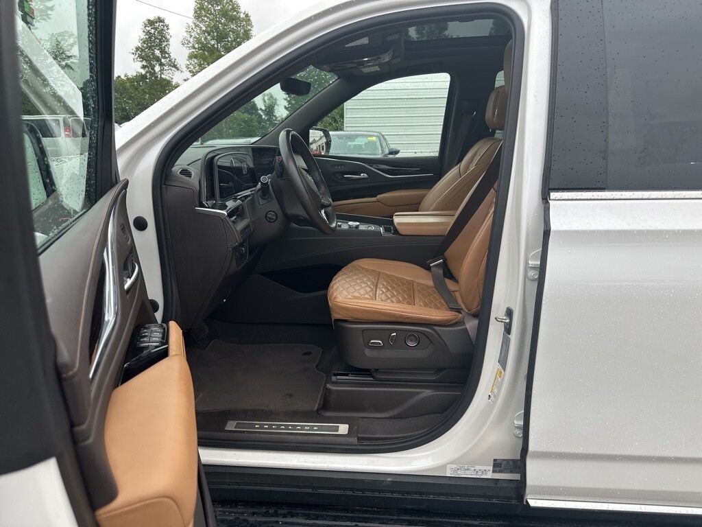 THIS VEHICLE INCLUDES THE FOLLOWING FEATURES AND OPTIONS: 4WD, Leather, 16.9 Diagonal OLED Infotainment Screen, 19 Speakers, 2-Presets Memory For Driver Seat Adjuster, 3.23 Axle Ratio, 3rd row seats: split-bench, 4-Way Power Driver Lumbar Seat Adjuster, 4-Way Power Front Passenger Lumbar Seat Adjuster, 4-Wheel Disc Brakes, 8-Way Power Driver Seat Adjuster, 8-Way Power Front Passenger Seat Adjuster, ABS brakes, Air Conditioning, Air Ionizer, AKG Studio 19-Speaker Audio System, Alloy wheels, AM/FM radio: SiriusXM with 360L, Apple CarPlay/Android Auto, Audio memory, Auto High-beam Headlights, Auto tilt-away steering wheel, Auto-dimming door mirrors, Automatic Emergency Braking, Automatic temperature control, Brake assist, Bumpers: body-color, Compass, Cruise Control, Delay-off headlights, Door Lock & Latch Shields, Driver door bin, Driver vanity mirror, Dual front impact airbags, Dual front side impact airbags, Electronic Cruise Control w/Set & Resume Speed, Electronic Stability Control, Emergency communication system: OnStar and Cadillac connected services capable, Enhanced Automatic Parking Assist, Four wheel independent suspension, Front anti-roll bar, Front Bucket Seats, Front Center Armrest w/Storage, Front dual zone A/C, Front reading lights, Fully automatic headlights, Garage door transmitter, Glass Breakage Sensor, HD Radio, Heads-Up Display, Heated & Ventilated Driver & Front Passenger Seats, Heated door mirrors, Heated Driver & Front Passenger Seats, Heated front seats, Heated rear seats, Heated steering wheel, Illuminated entry, Lane Change Alert w/Side Blind Zone Alert, Lane Keep Assist w/Lane Departure Warning, Leather Seating Surfaces w/Mini-Chevron Perf Inserts, Leather steering wheel, Low tire pressure warning, Mechanical Limited-Slip Differential, Memory seat, Occupant sensing airbag, Outside temperature display, Overhead airbag, Overhead console, Panic alarm, Passenger door bin, Passenger vanity mirror, Power door mirrors, Power driver seat, Power Liftgate, Power moonroof, Power Panoramic Tilt-Sliding Sunroof, Power passenger seat, Power steering, Power windows, Premium Smooth Ride Suspension, Radio data system, Radio: AM/FM/SiriusXM w/Navigation, Rain sensing wipers, Rear air conditioning, Rear anti-roll bar, Rear Camera Mirror, Rear Camera Mirror Washer, Rear Cross Traffic Alert, Rear reading lights, Rear window defroster, Rear window wiper, Reconfigurable Full-Color Head-Up Display, Remote keyless entry, Roof rack: rails only, Running Board Assist Steps, Security system, SiriusXM w/360L, Split folding rear seat, Spoiler, Steering wheel memory, Steering wheel mounted audio controls, Tachometer, Teen Driver, Telescoping steering wheel, Theft-Deterrent Alarm System, Tilt steering wheel, Traction control, Trip computer, Turn signal indicator mirrors, Variably intermittent wipers, Vehicle Inclination Sensor, Vehicle Interior Movement Sensor, Ventilated front seats, Voltmeter, Wheels: 22 14-Spoke Alloy w/Polished Finish, and Wireless Apple CarPlay/Wireless Android Auto.