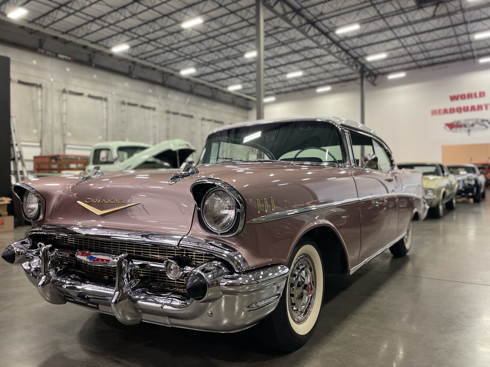 1957 Chevy Belair two door no post dusk rose paint job in excellent Condition. This is a factory car. You will never find a better vehicle and this condition for the age. Looks like it drove off the showroom floor. The only aftermarket upgrade was putting in the power steering so it’s easier to drive. I purchased this car from a Classic Car museum And only drove it 20 miles. I trailer it to and from car shows but to be honest it’s too perfect of a car. I’m scared to drive on the road is garage kept and an excellent condition. No issues.