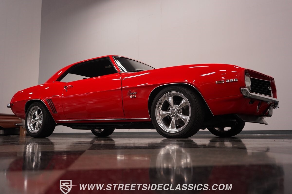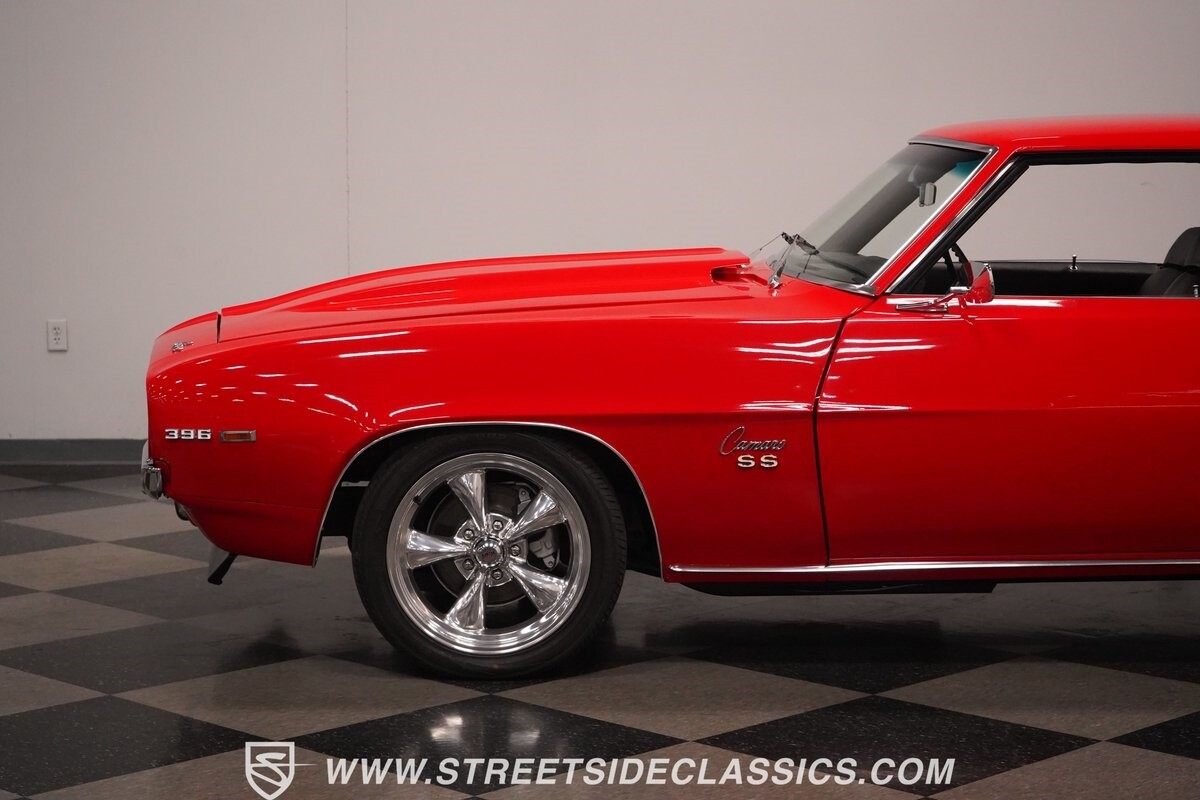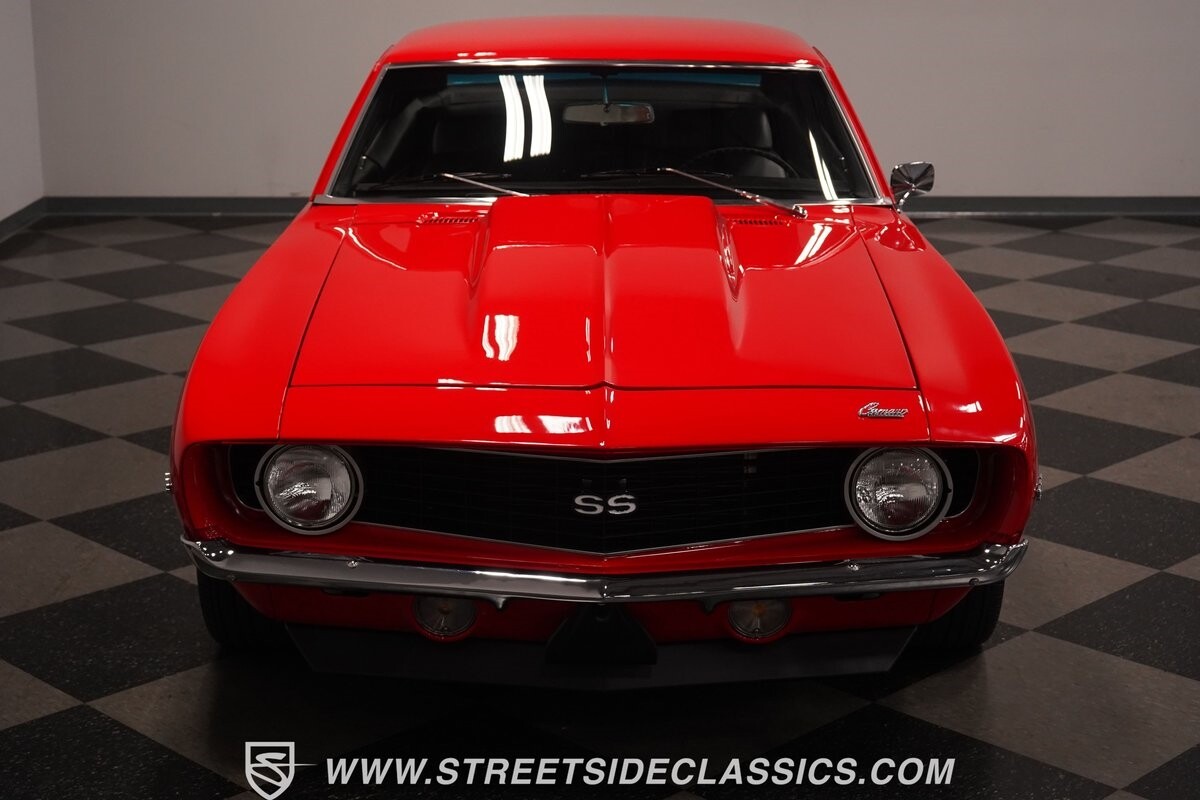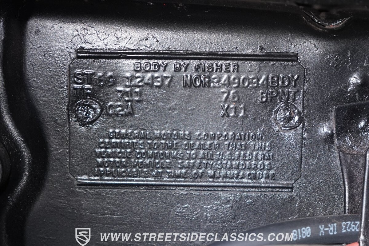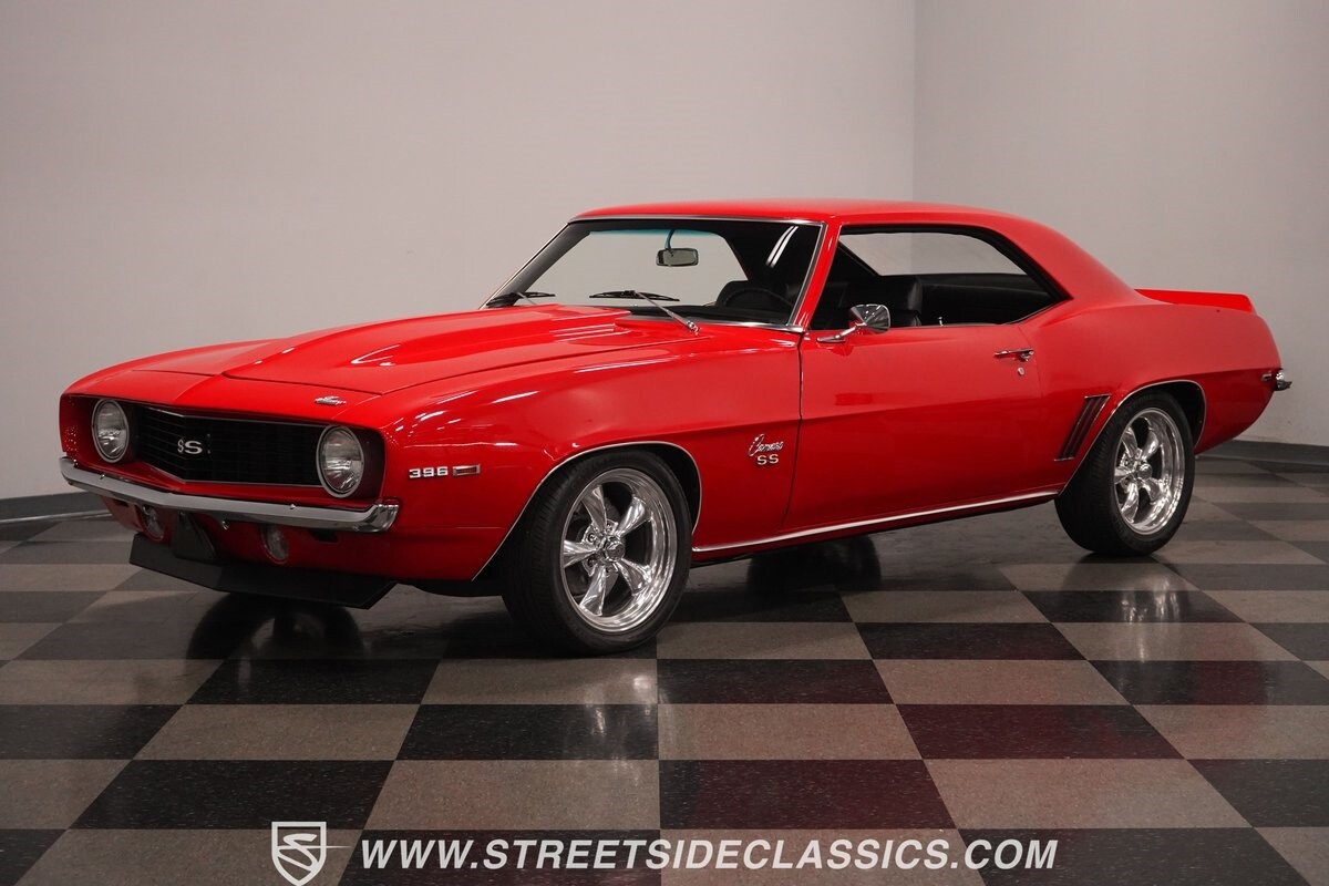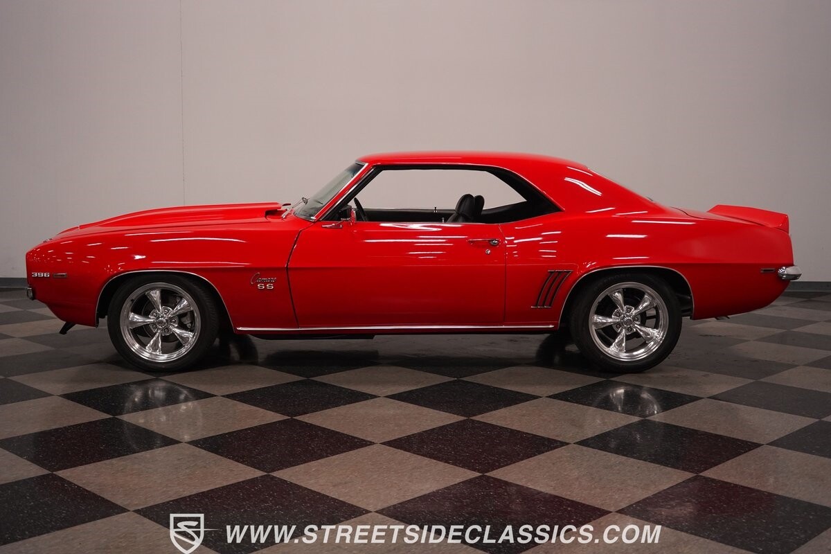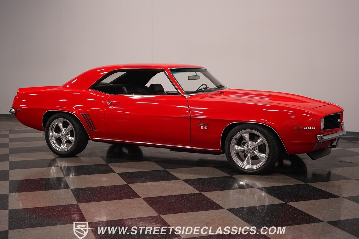 The 1969 Camaro is considered by many to be the best of the breed when it comes to GM's first-generation (1967-1969) F-Body cars, and by looking at this exceptional example, it is clear to see why so many enthusiasts are drawn to it. This stunning 1969 Camaro has had a restoration some years ago and has been beautifully maintained since. Built as a SS396 Tribute car, under the hood lurks a recently rebuilt big block 454 engine, complete with factory Winters aluminum intake manifold topped with a Holly Performance 4-barrel carburetor. Factory-style chrome valve covers and air cleaner on the detailed engine compartment complete the clean, period, all-business look under the hood. An aluminum radiator keeps this big block running cool. Power to the rear wheels is transferred through a Muncie M20 4-speed manual transmission shifted with a Hurst shifter with chrome shift ball. The interior is stock in appearance, with the exception of a set of aftermarket gauges under the dash to monitor the powerful big bock engine. Stopping power is aided by a set of factory front disc brakes.