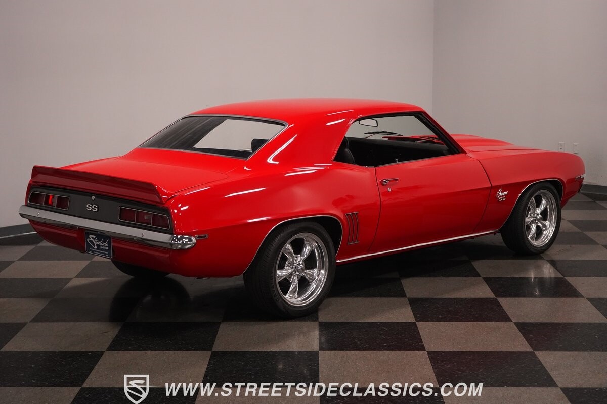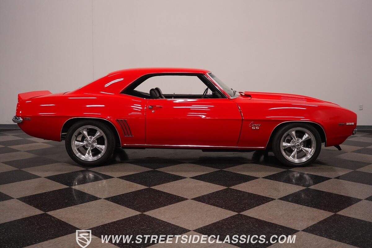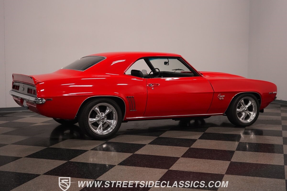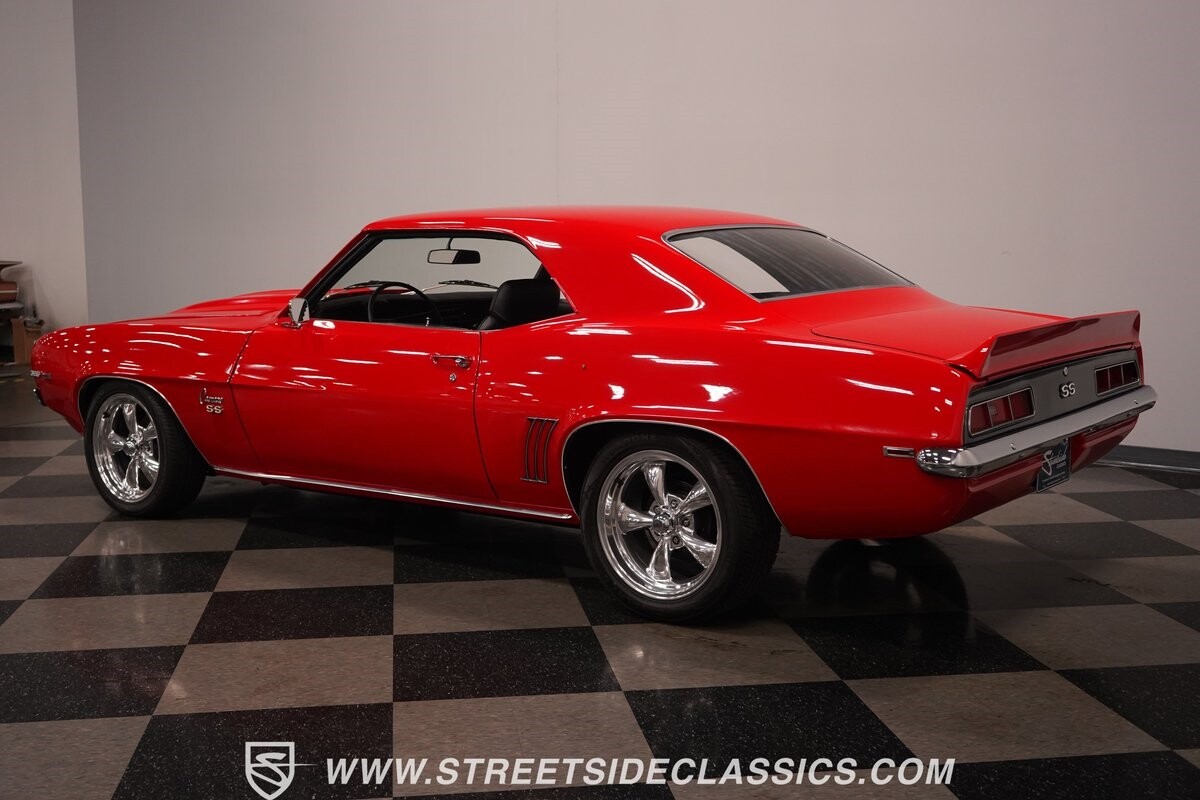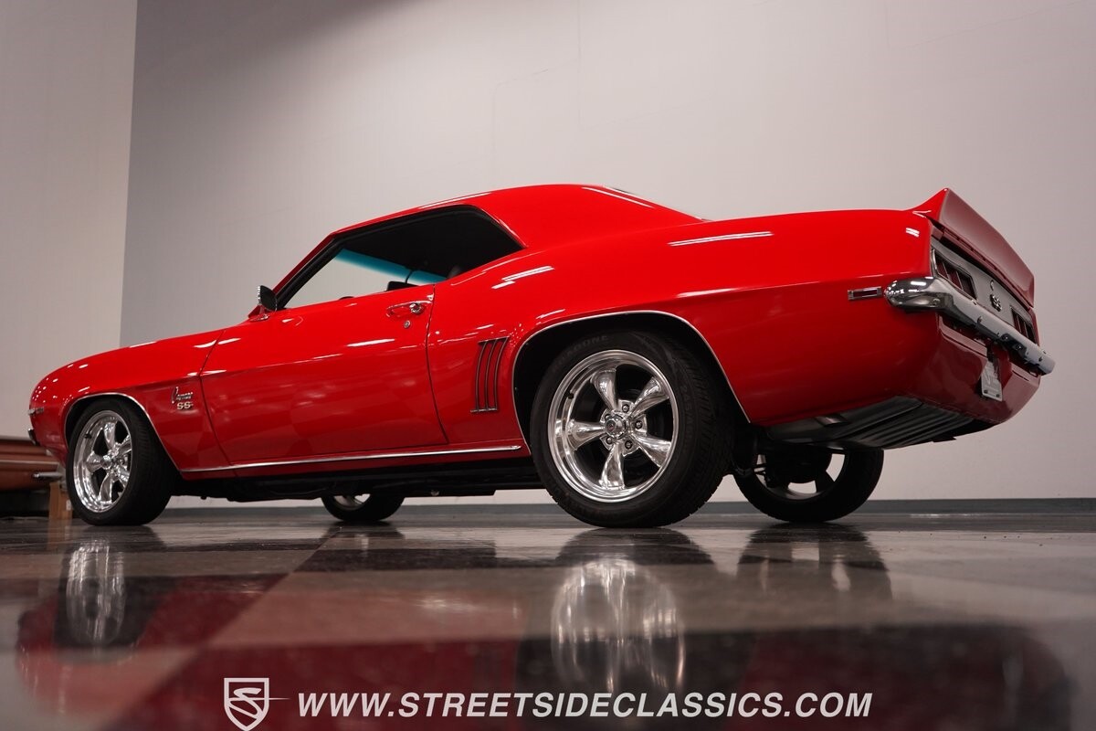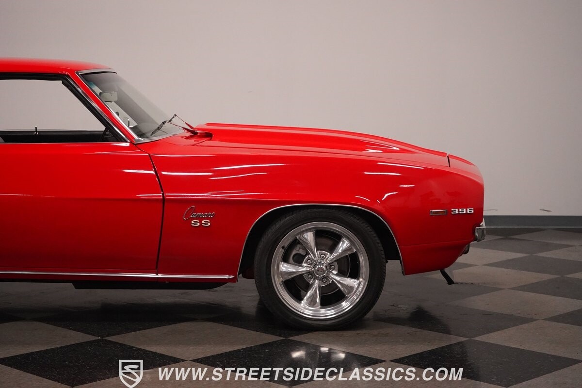 The 1969 Camaro is considered by many to be the best of the breed when it comes to GM's first-generation (1967-1969) F-Body cars, and by looking at this exceptional example, it is clear to see why so many enthusiasts are drawn to it. This stunning 1969 Camaro has had a restoration some years ago and has been beautifully maintained since. Built as a SS396 Tribute car, under the hood lurks a recently rebuilt big block 454 engine, complete with factory Winters aluminum intake manifold topped with a Holly Performance 4-barrel carburetor. Factory-style chrome valve covers and air cleaner on the detailed engine compartment complete the clean, period, all-business look under the hood. An aluminum radiator keeps this big block running cool. Power to the rear wheels is transferred through a Muncie M20 4-speed manual transmission shifted with a Hurst shifter with chrome shift ball. The interior is stock in appearance, with the exception of a set of aftermarket gauges under the dash to monitor the powerful big bock engine. Stopping power is aided by a set of factory front disc brakes.