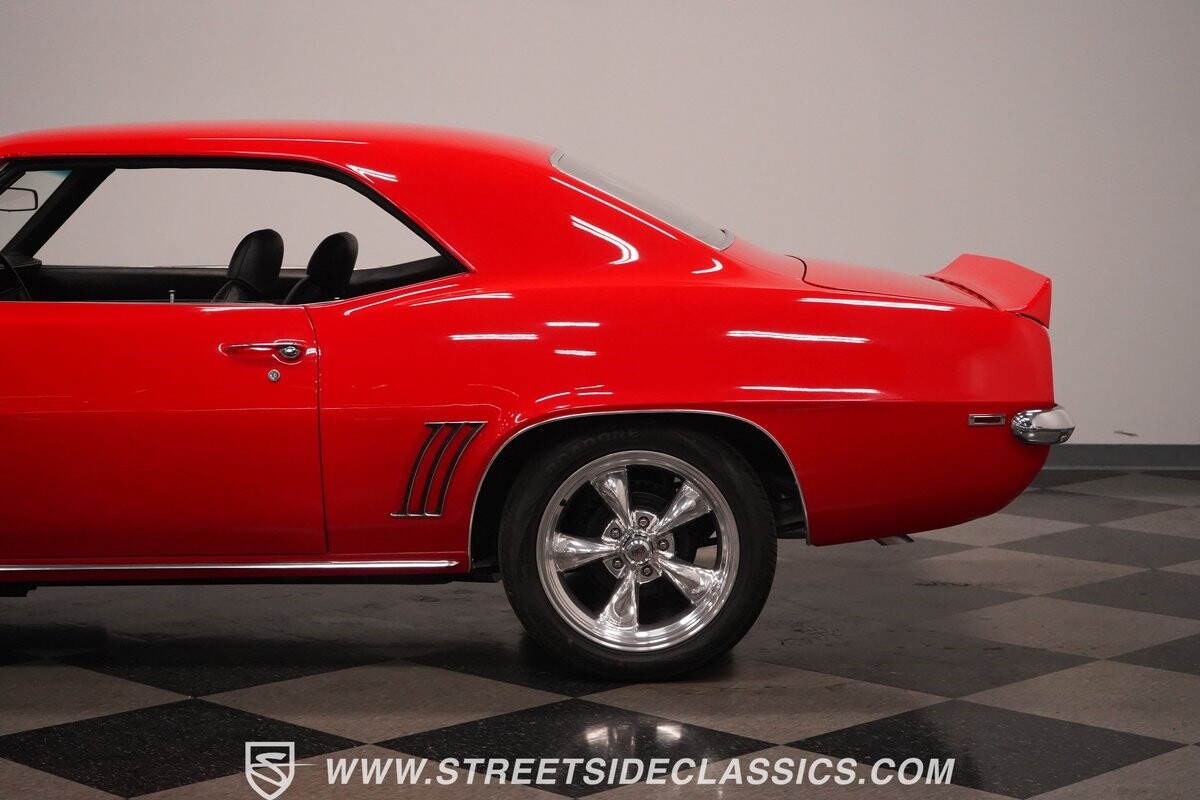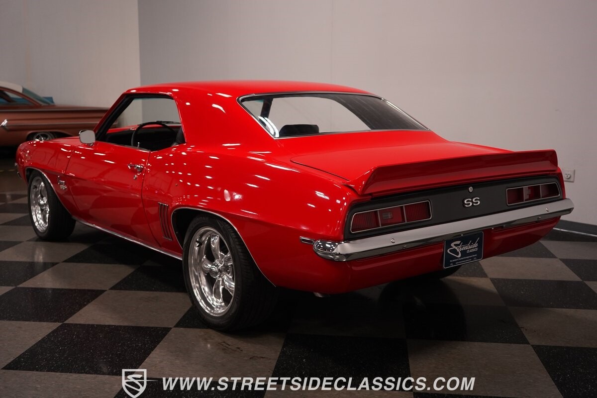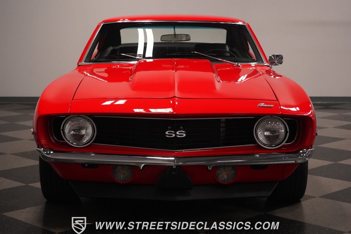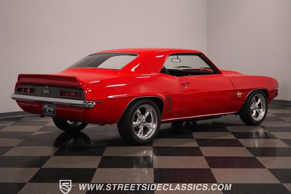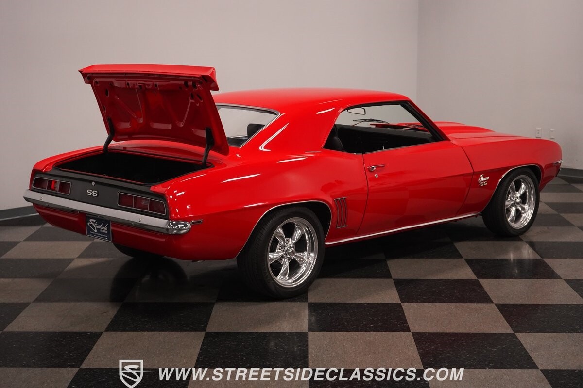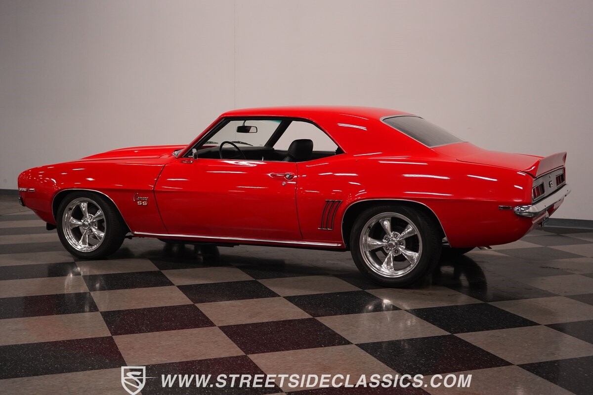 The 1969 Camaro is considered by many to be the best of the breed when it comes to GM's first-generation (1967-1969) F-Body cars, and by looking at this exceptional example, it is clear to see why so many enthusiasts are drawn to it. This stunning 1969 Camaro has had a restoration some years ago and has been beautifully maintained since. Built as a SS396 Tribute car, under the hood lurks a recently rebuilt big block 454 engine, complete with factory Winters aluminum intake manifold topped with a Holly Performance 4-barrel carburetor. Factory-style chrome valve covers and air cleaner on the detailed engine compartment complete the clean, period, all-business look under the hood. An aluminum radiator keeps this big block running cool. Power to the rear wheels is transferred through a Muncie M20 4-speed manual transmission shifted with a Hurst shifter with chrome shift ball. The interior is stock in appearance, with the exception of a set of aftermarket gauges under the dash to monitor the powerful big bock engine. Stopping power is aided by a set of factory front disc brakes.