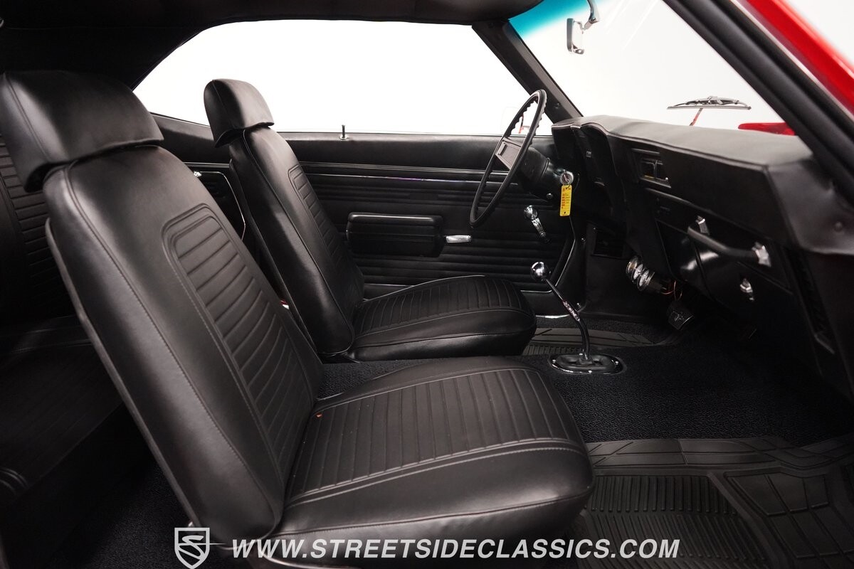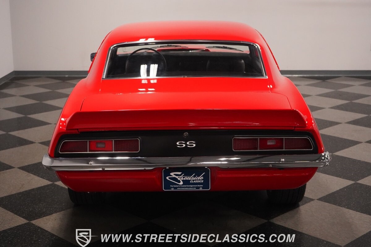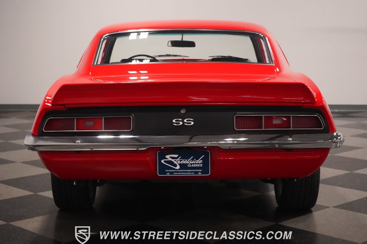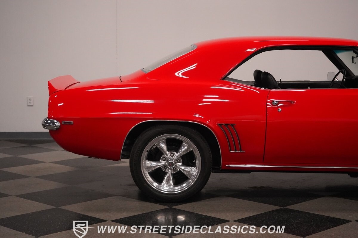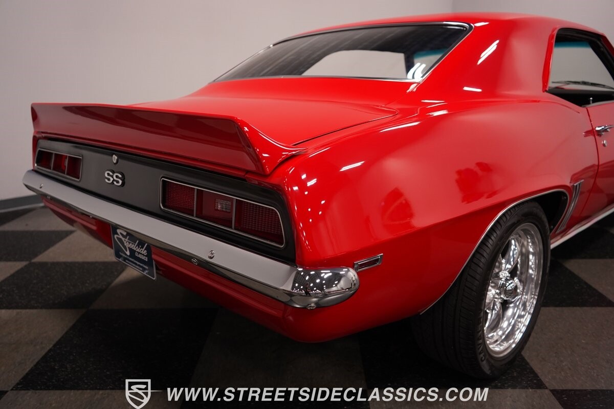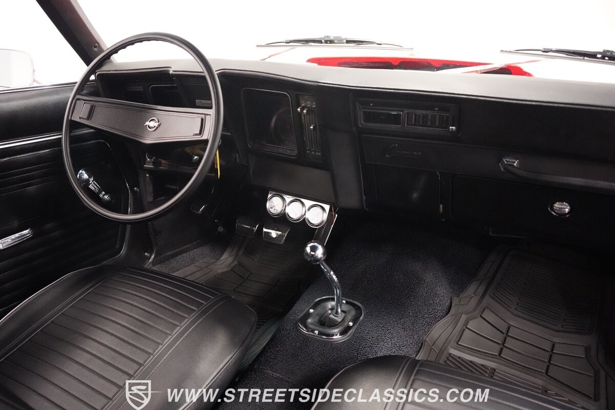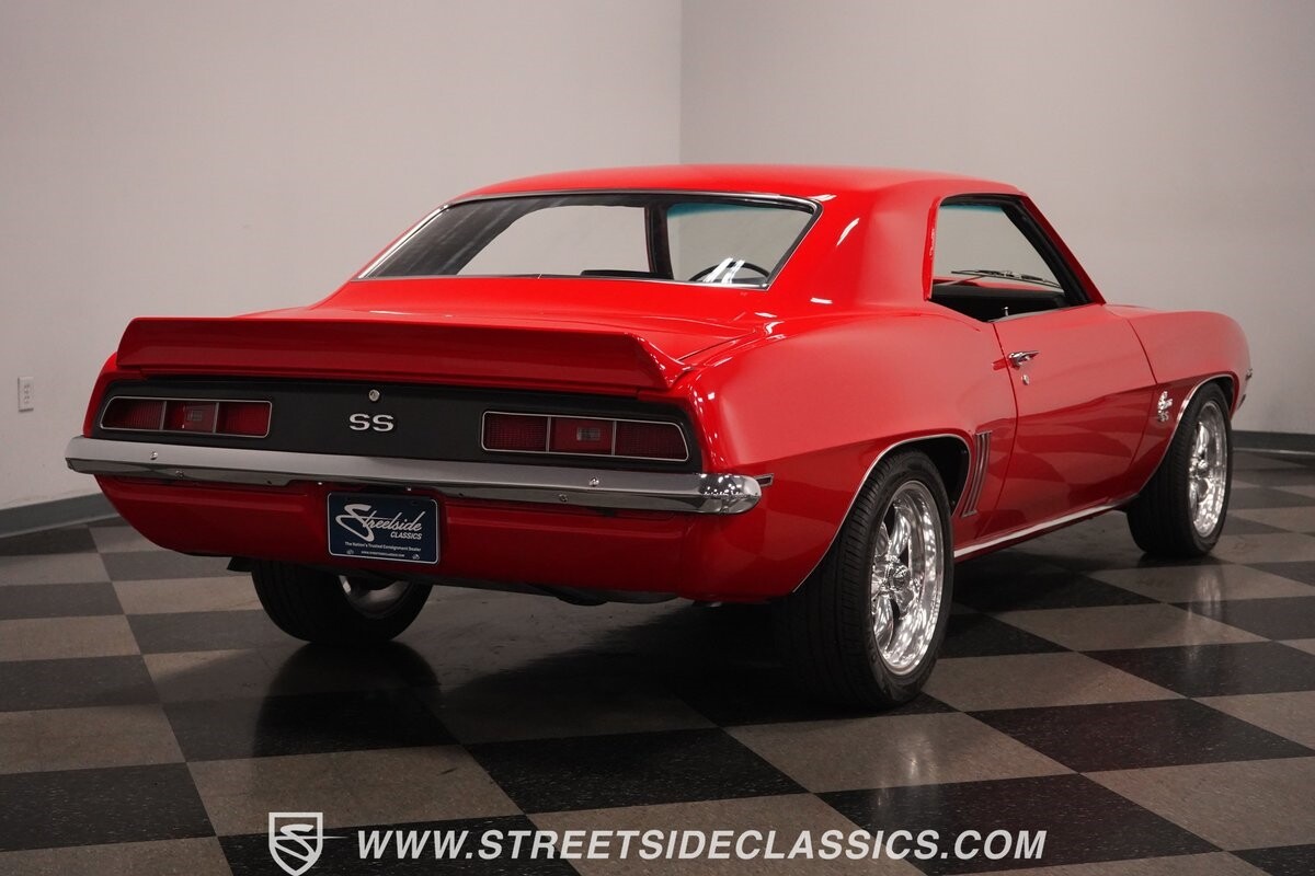 The 1969 Camaro is considered by many to be the best of the breed when it comes to GM's first-generation (1967-1969) F-Body cars, and by looking at this exceptional example, it is clear to see why so many enthusiasts are drawn to it. This stunning 1969 Camaro has had a restoration some years ago and has been beautifully maintained since. Built as a SS396 Tribute car, under the hood lurks a recently rebuilt big block 454 engine, complete with factory Winters aluminum intake manifold topped with a Holly Performance 4-barrel carburetor. Factory-style chrome valve covers and air cleaner on the detailed engine compartment complete the clean, period, all-business look under the hood. An aluminum radiator keeps this big block running cool. Power to the rear wheels is transferred through a Muncie M20 4-speed manual transmission shifted with a Hurst shifter with chrome shift ball. The interior is stock in appearance, with the exception of a set of aftermarket gauges under the dash to monitor the powerful big bock engine. Stopping power is aided by a set of factory front disc brakes.